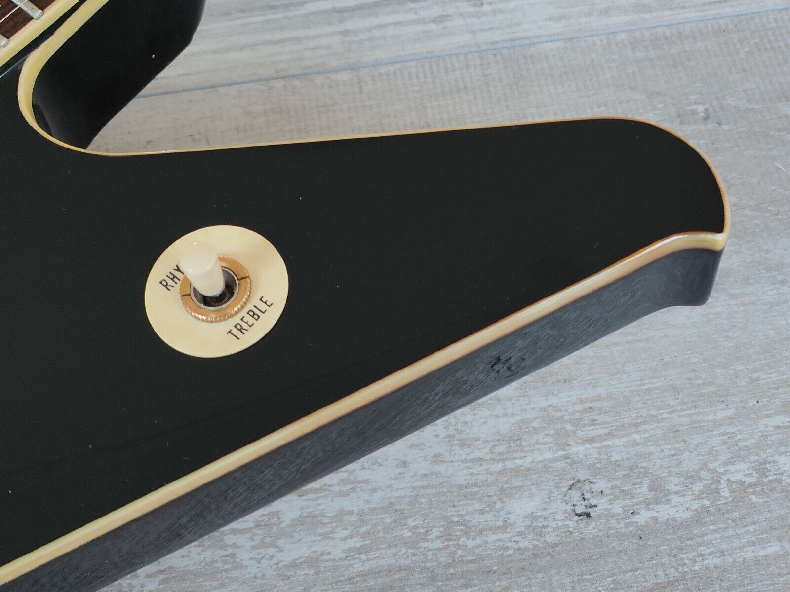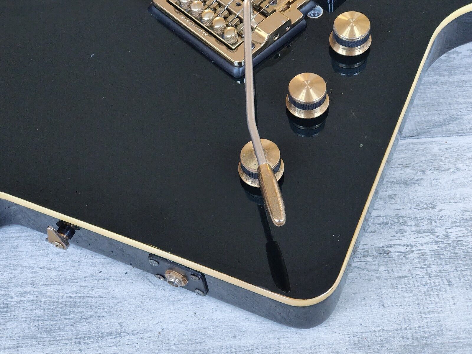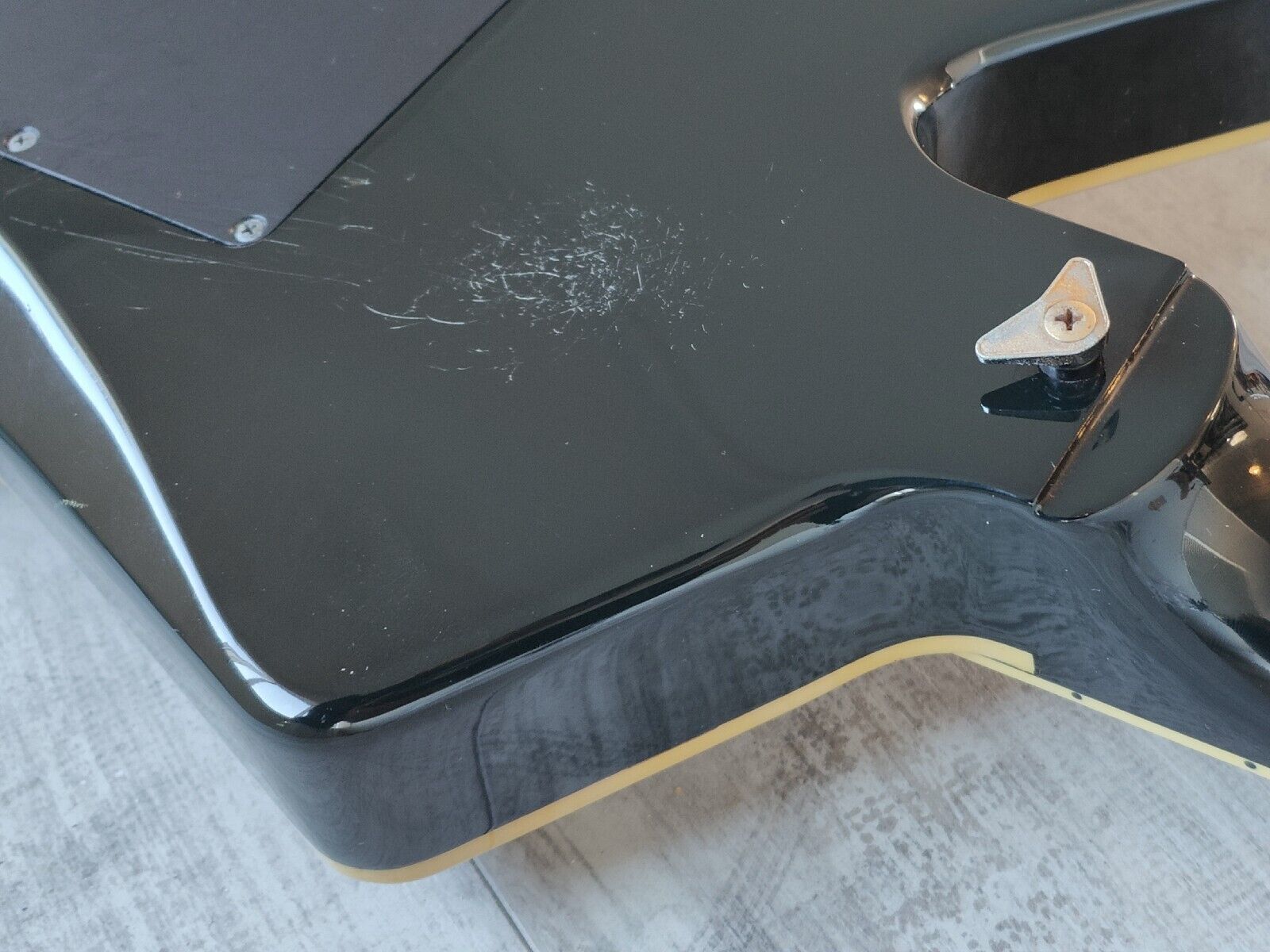 Looks to be original (apart from a new Alpha tone knob and the previously mentioned pickups/Kahler), it's just had a full professional setup and service in-house and plays as good as it looks. The neck is straight and the frets have plenty of life left. Cosmetically it's very clean for it's age with only light wear and tear as pictured.