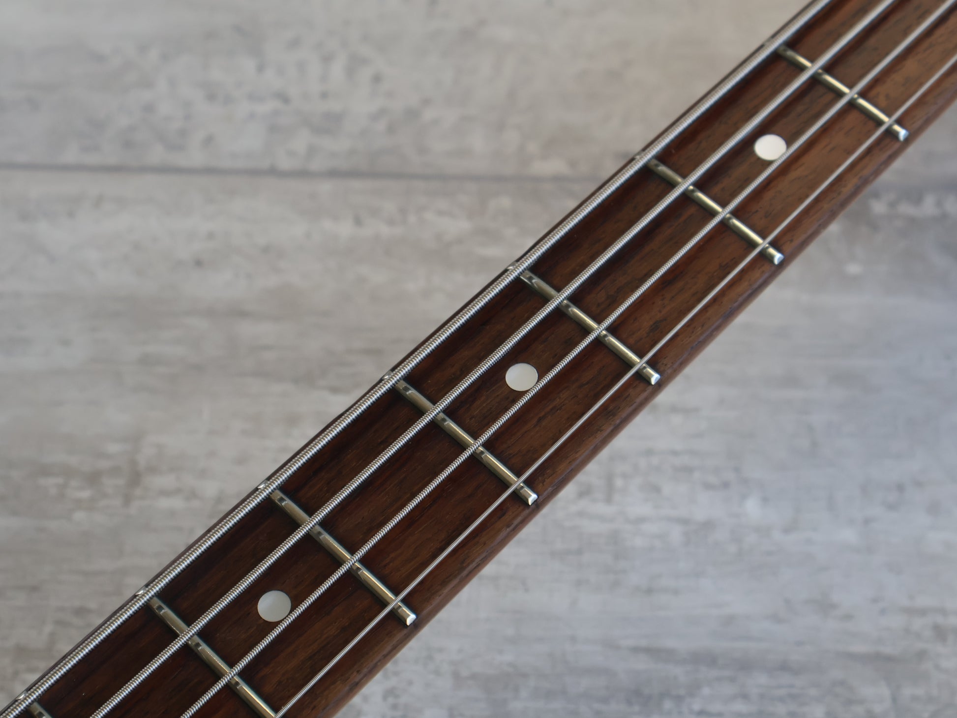 Made in Japan as part of the professional grade "Musician" series of basses, this is a 1983 model that was factory loaded with a Super J6 dual coil humbucker. Neckthrough construction with ash wings sandwiched between two layers of mahogany on a maple and walnut neck, 24-fret rosewood fingerboard and darkened ash headstock, this one weighs 3.9kg's.