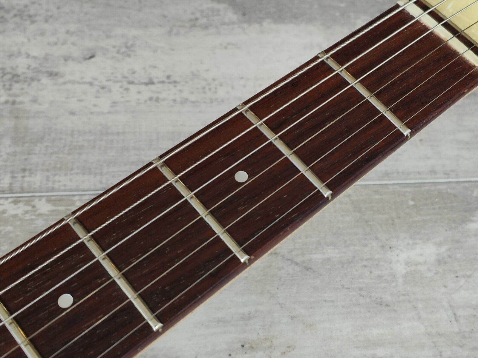 Lightly used condition as pictured, very clean for a 40+ year old guitar with some light cosmetic bumps and scuffs on the body and some basic play wear to the frets, restrung and given a basic professional service prior to listing. Truss works well and the frets were polished, pots were flushed and lubed and the jack was cleaned.