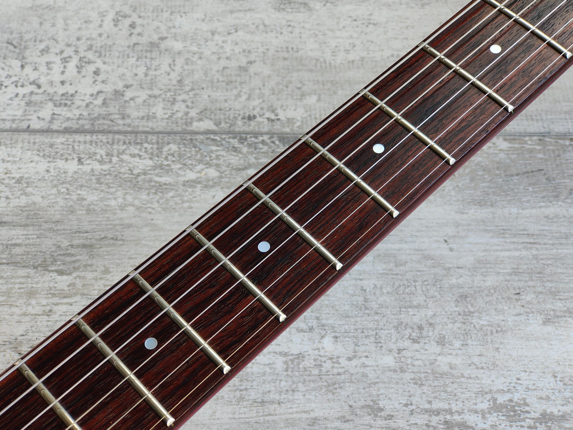 Received a full basic setup and service prior to listing, neck is beautiful and plays super smooth, plenty of life left in the frets. Good overall cosmetic condition on the top with some rash/scrapes on the back as pictured.