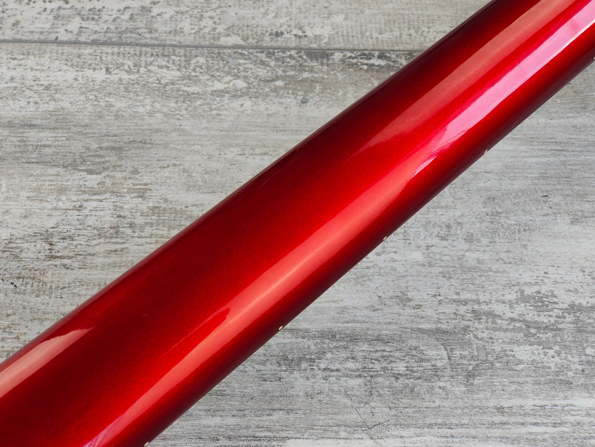 Full Candy Apple aesthetic with a C shape maple neck and a 22 fret rosewood fingerboard (10" radius, 25.5" scale length, medium jumbo frets). Two Dragstar humbuckers with a three way toggle give a real Les Paul sound, master volume and tone controls for simplicity. 6-point Stratocaster tremolo with Fender stamped saddles.
