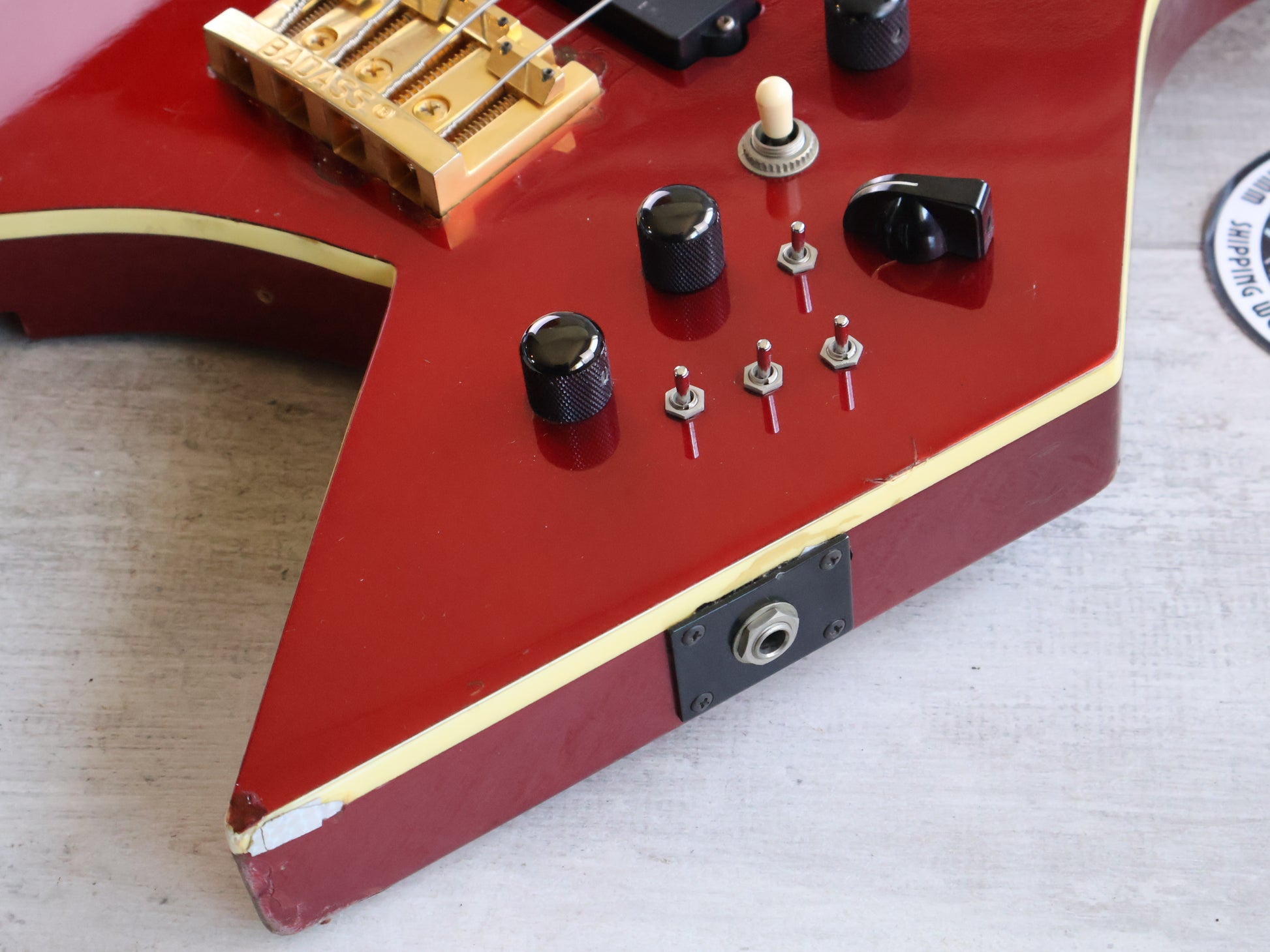 Made in Japan as part of the famed NJ Series in the mid 1980's. Full neckthrough construction with a shiny Candy Apple Red finish, the warlock bass has a solid alder body, maple neck and a 24 fret rosewood fingerboard and weighs 5kg's.
