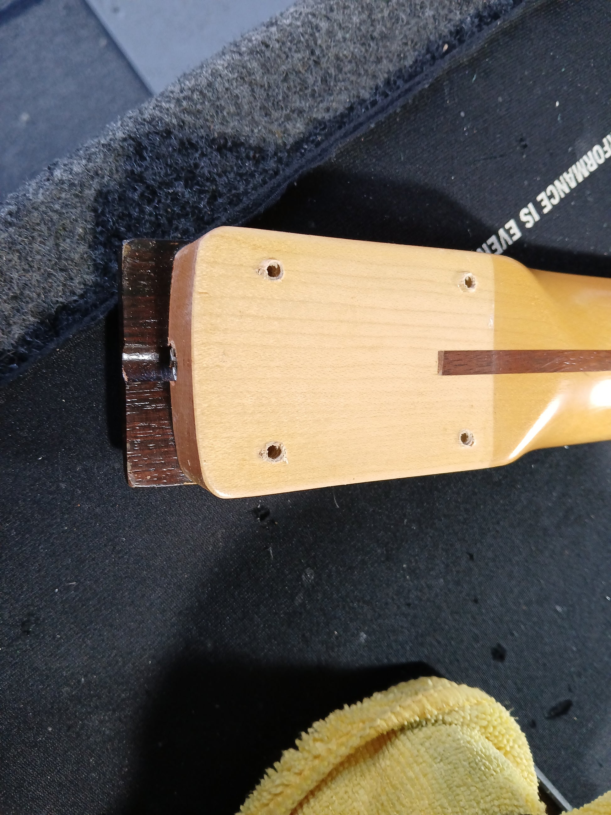 Made in December 1984 (a few months after his Japanese shows), this appears to be an Allan Holdsworth model from Charvel with the Fender Stratocaster style headstock that was only able to be sold within Japan. Not much info available on these, there's a good chance it was a limited run or a custom order for a customer as there's no catalog online that feature a Holdsworth model.