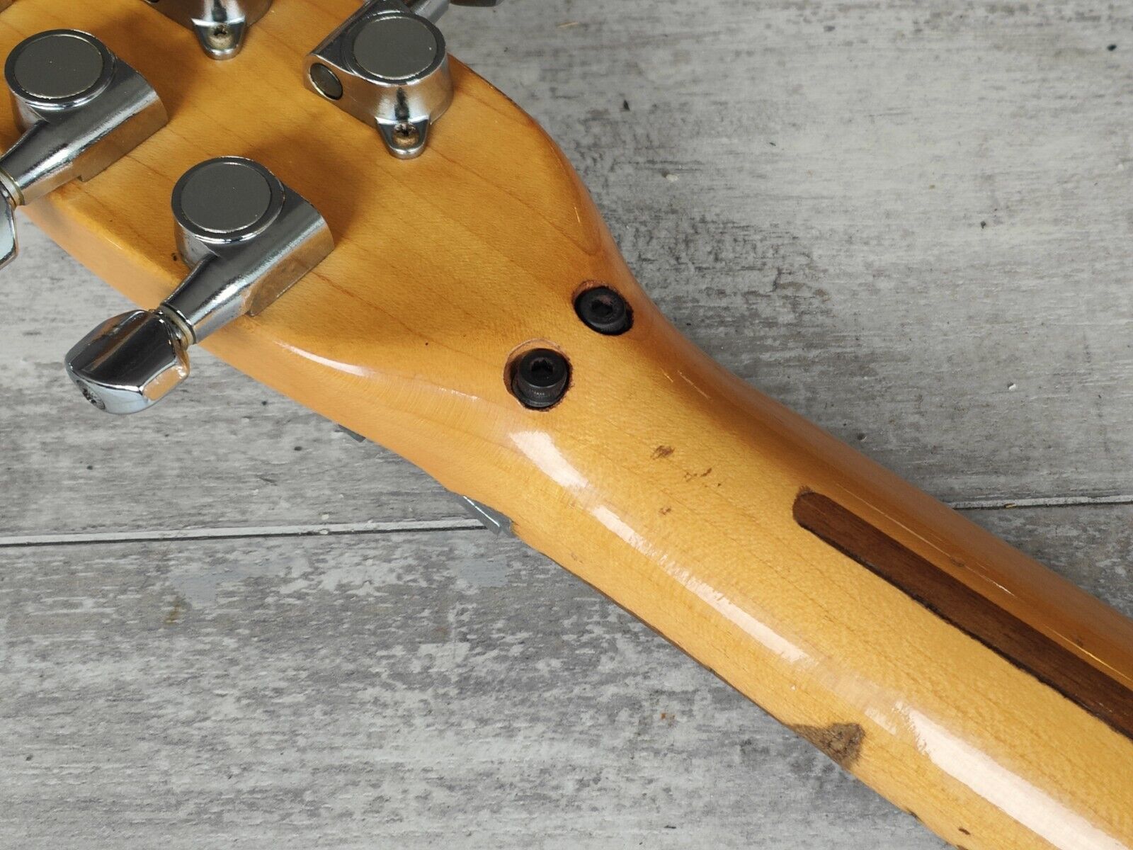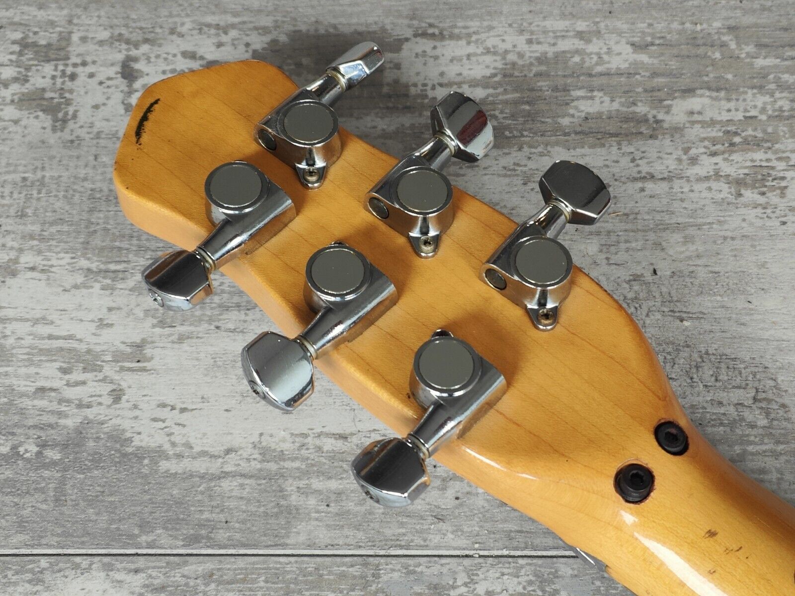 Made in Japan in around 1984 (based on the CTS pot codes and the overall specs/style of the guitar and stamps), this is likely one of ESP's short-run models based on the guitar Akira Takasaki (of LOUNDESS) used throughout the 80's including the bands US dates in 1985. Solid alder body with a maple neck (pronounced V profile, 22 frets), it weighs 3.5kg's. Loaded with a pair of ESP branded humbuckers and a top-mounted locking tremolo system along with the traditional 6IL tuners mounted in a 3x3 layout. Single volume knob with a 3-way pickup selector and a straight-to-output mini toggle that bypasses the volume knob.