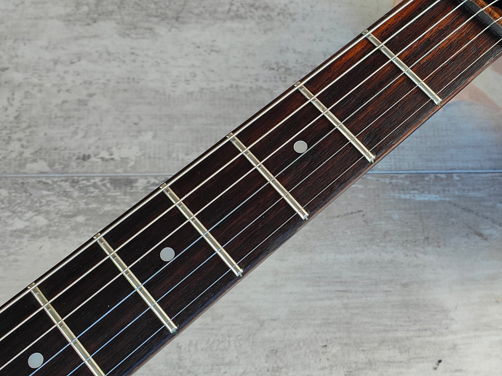 Received a basic restring and service prior to listing, neck is straight and plays super smooth, a decent amount of life left in the frets with some light pitting.