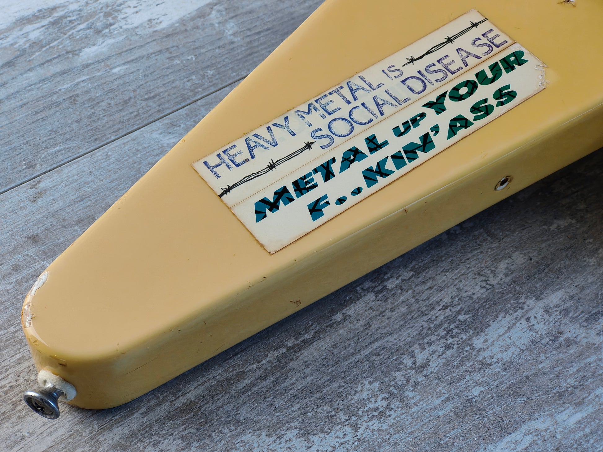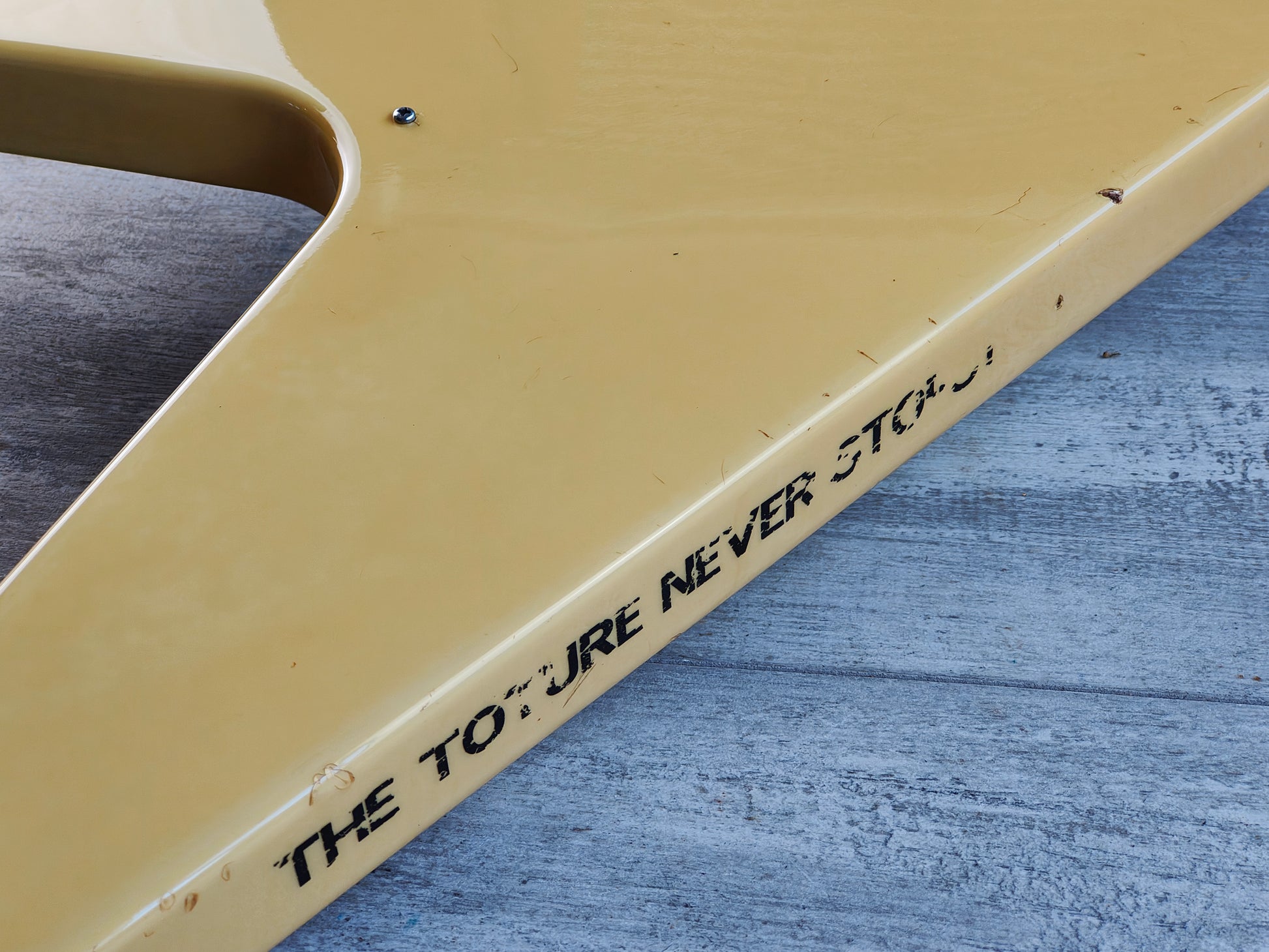 Well loved condition, very understandable for an 80's Flying V. Plenty of cosmetic love as pictured, received a full professional setup and service prior to listing including a fretboard oil, fret polish and fret re-seat, truss adjustment and wiring cleanup. The neck is straight and there's plenty of life in the frets, no breaks or repairs anywhere.