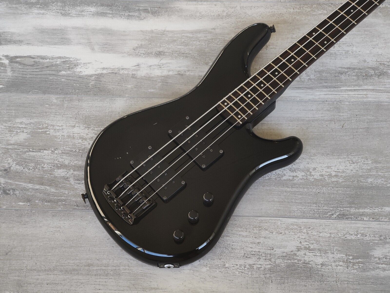 The Roadstar II series of guitars and basses were introduced in 1983 and continued on the path of the original Roadstars with modern takes on classic designs. The RB850 is a small bodied dual-pickup bass with full access to 24 frets on a 34" scale neck. Arched top basswood body with a maple neck and rosewood fingerboard, weighs 3.6kg's. Super J6 humbucking pickups with coil splits for a range of tone options along with a pickup balancer, volume and tone controls.