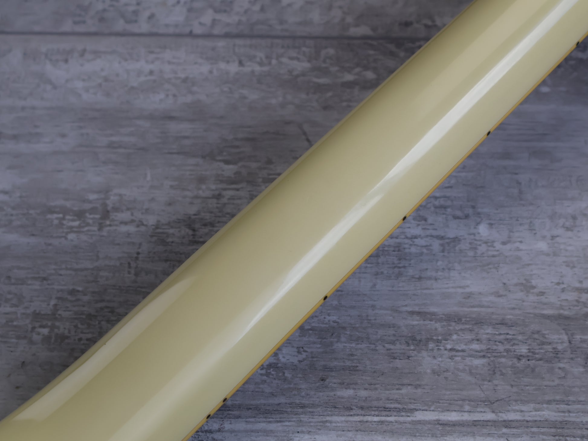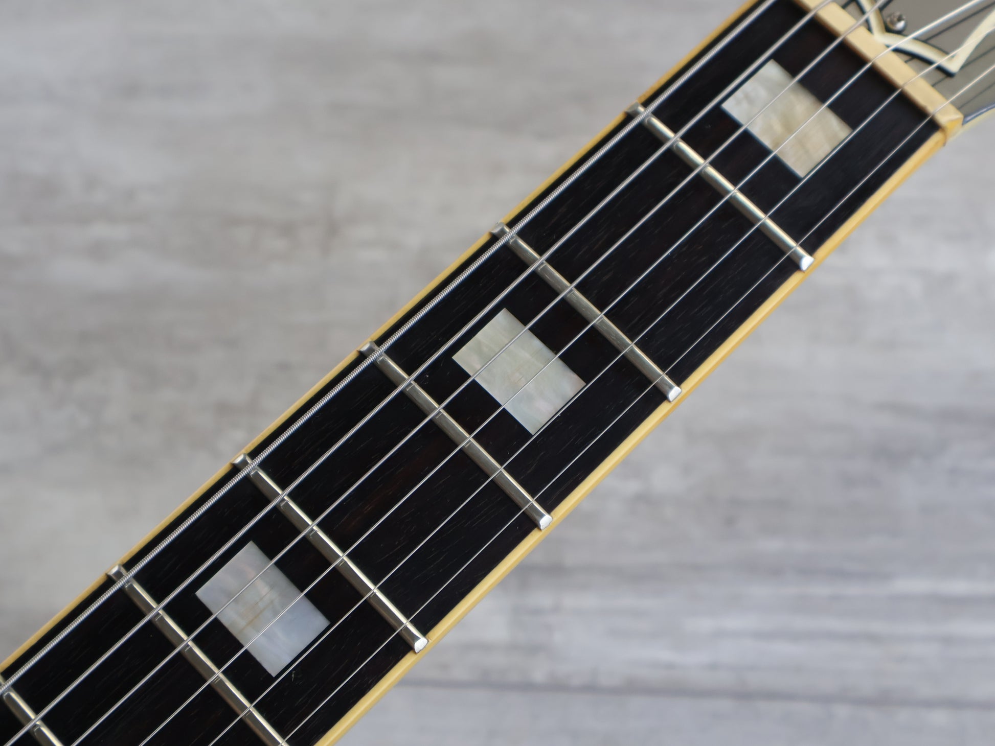 Made in Japan in 1984, the TSG50 was Tokai's reissue of the Norlin era '76 Gibson SG design. The previous owner went to town with some hobby supplies to create their version of "The Fool", but it appears easily removeable if you're so inclined. Faded white finish on a mahogany body with a medium profile mahogany neck and 22 fret rosewood fingerboard (10" radius), it weighs 3kg's. Loaded with the original Tokai PAF '57 humbuckers and Japanese hardware (including a harmonica style bridge), it appears to be close to all original other than the previously mentioned paintwork.