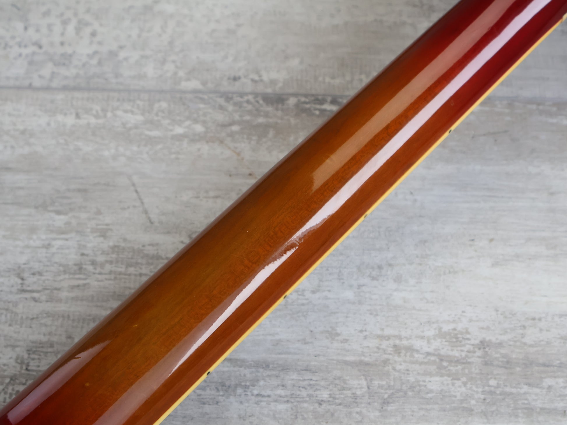 Restrung and given a service prior to listing, the neck is in good condition and the truss works as it should. The frets have some light wear but are shiny and play smoothly as they are.