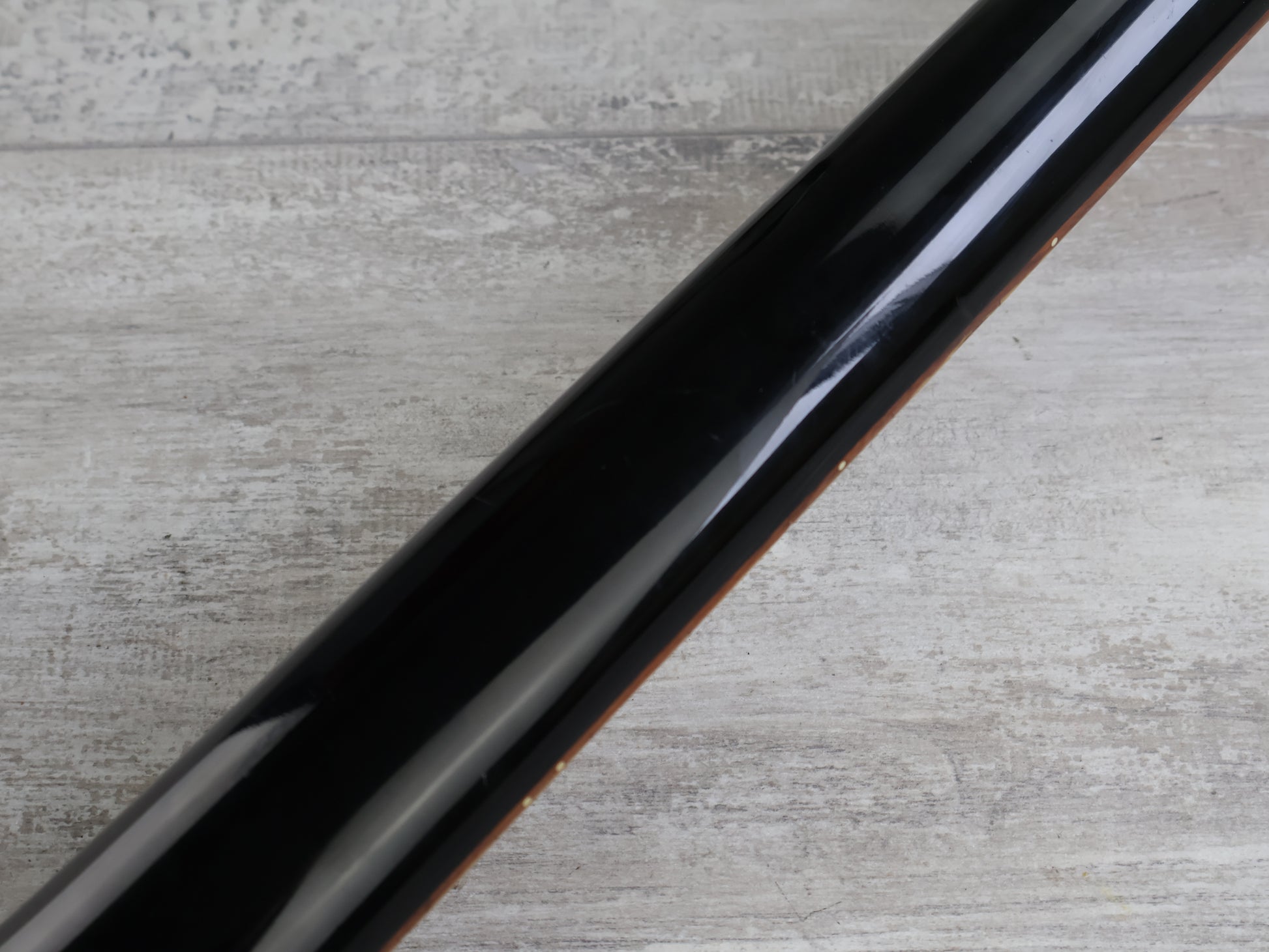 Received a full professional setup and service prior to listing including a truss adjustment, fretboard oil, fret polish and electronics flush. The neck is straight and there's plenty of life left in the frets.