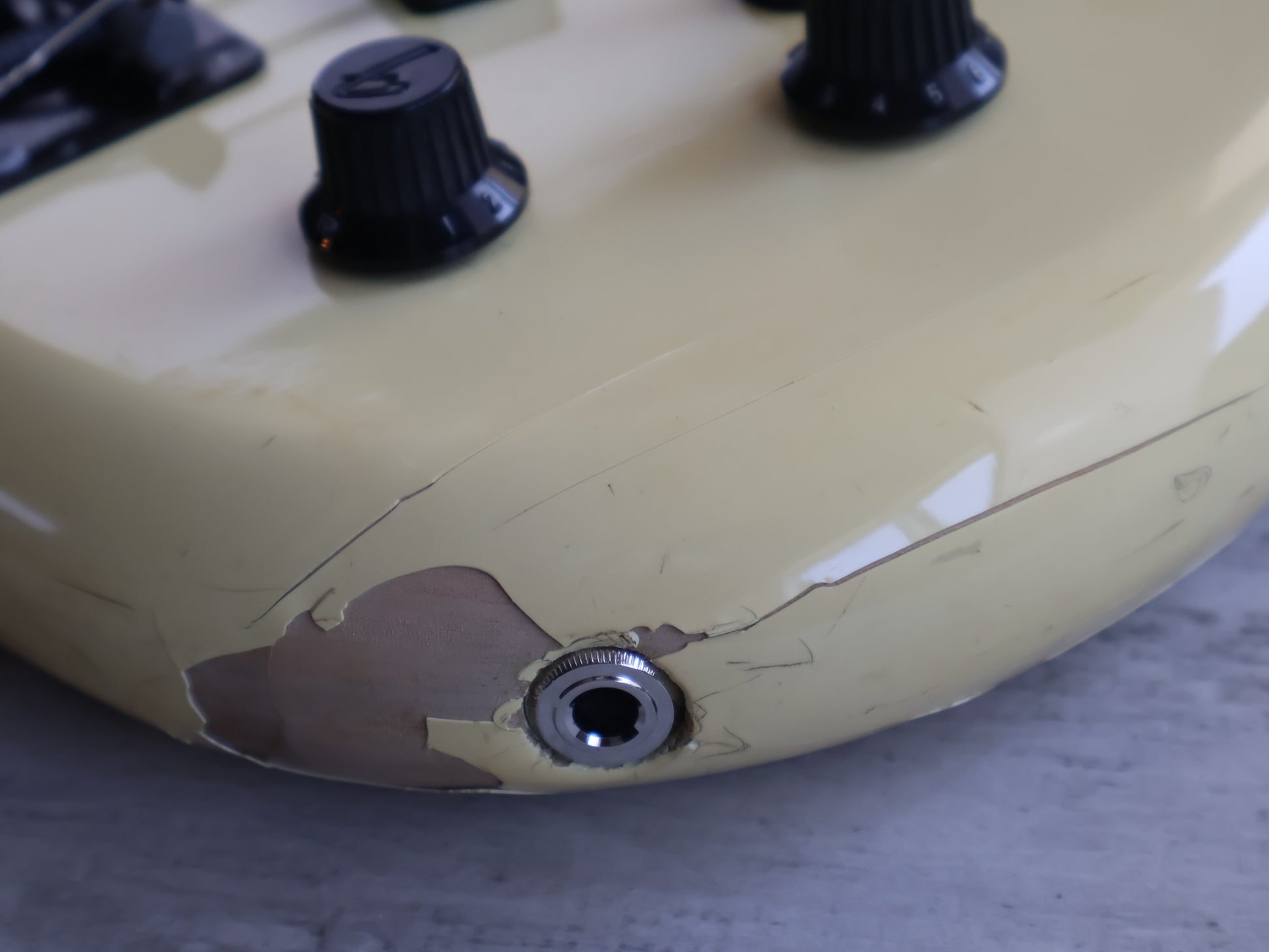 Appears to be all original as pictured, it's in well loved condition for it's age with a few bumps and bruises (one notable ding on the body) but no structural breaks or repairs. The neck is straight and the frets are shiny and smooth with plenty of life left.