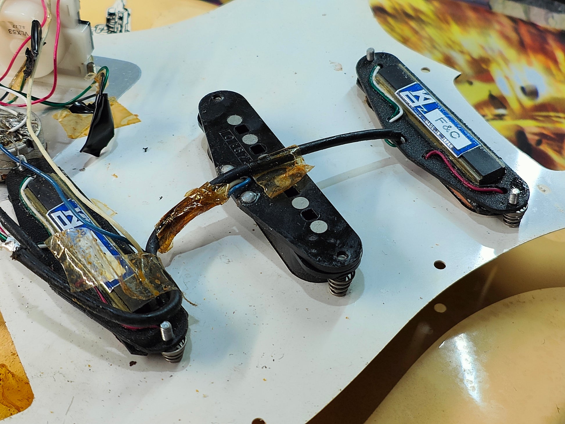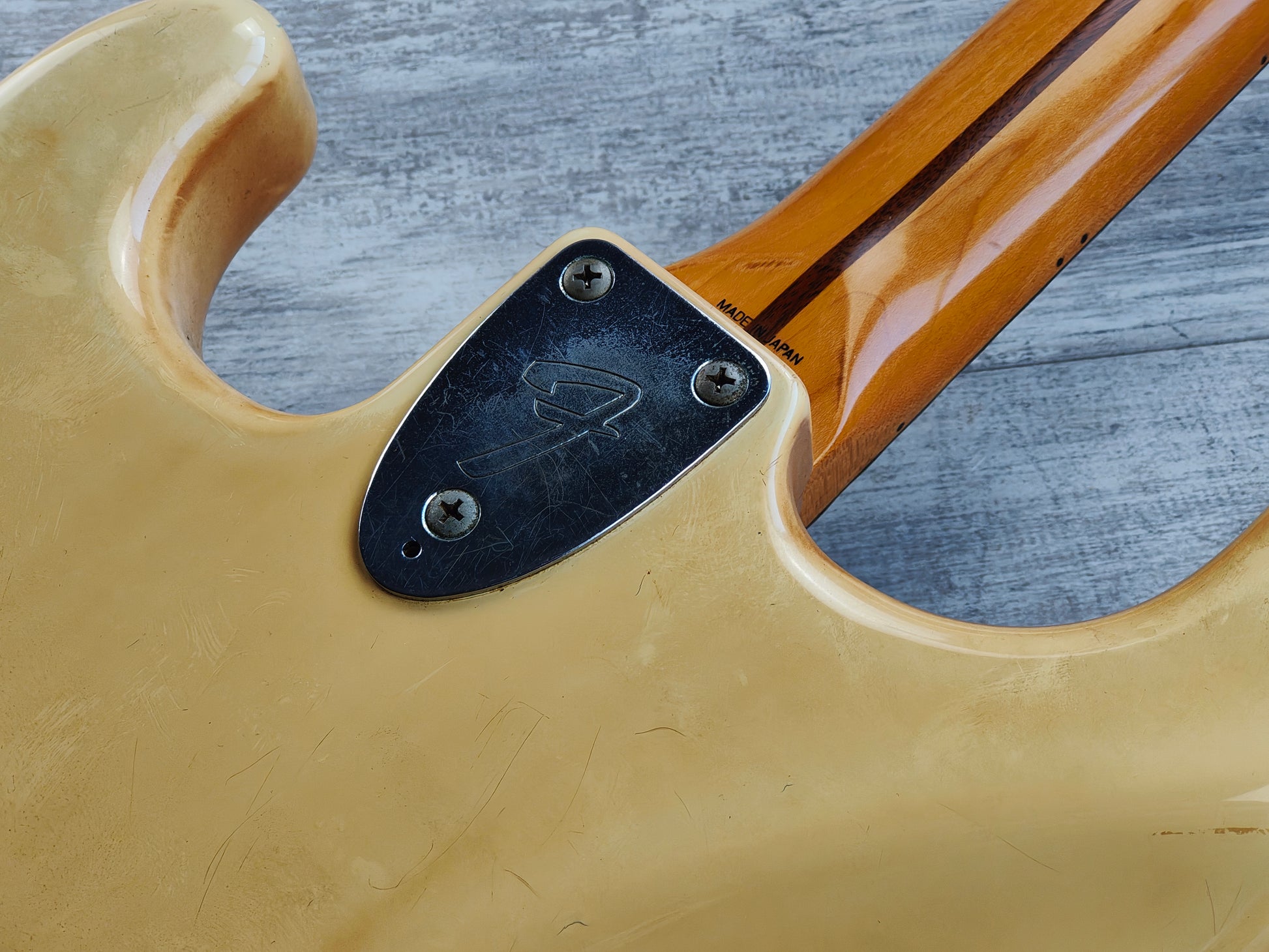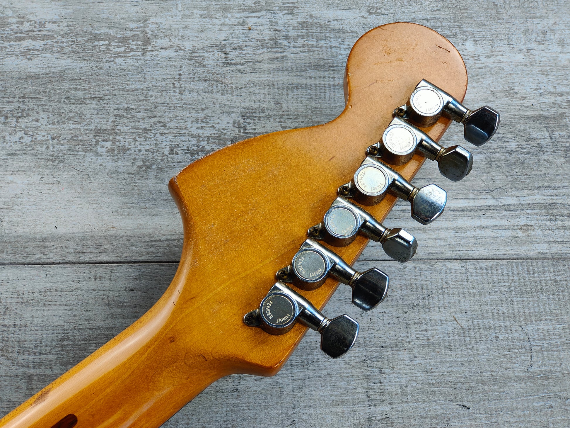 Loaded with the original Fender Japan tuners, along with some aftermarket pickups installed by the previous owner as pictured. It's a well loved and heavily used vintage guitar with sticker tan and fading to the finish but structurally it's solid and it's a great player.