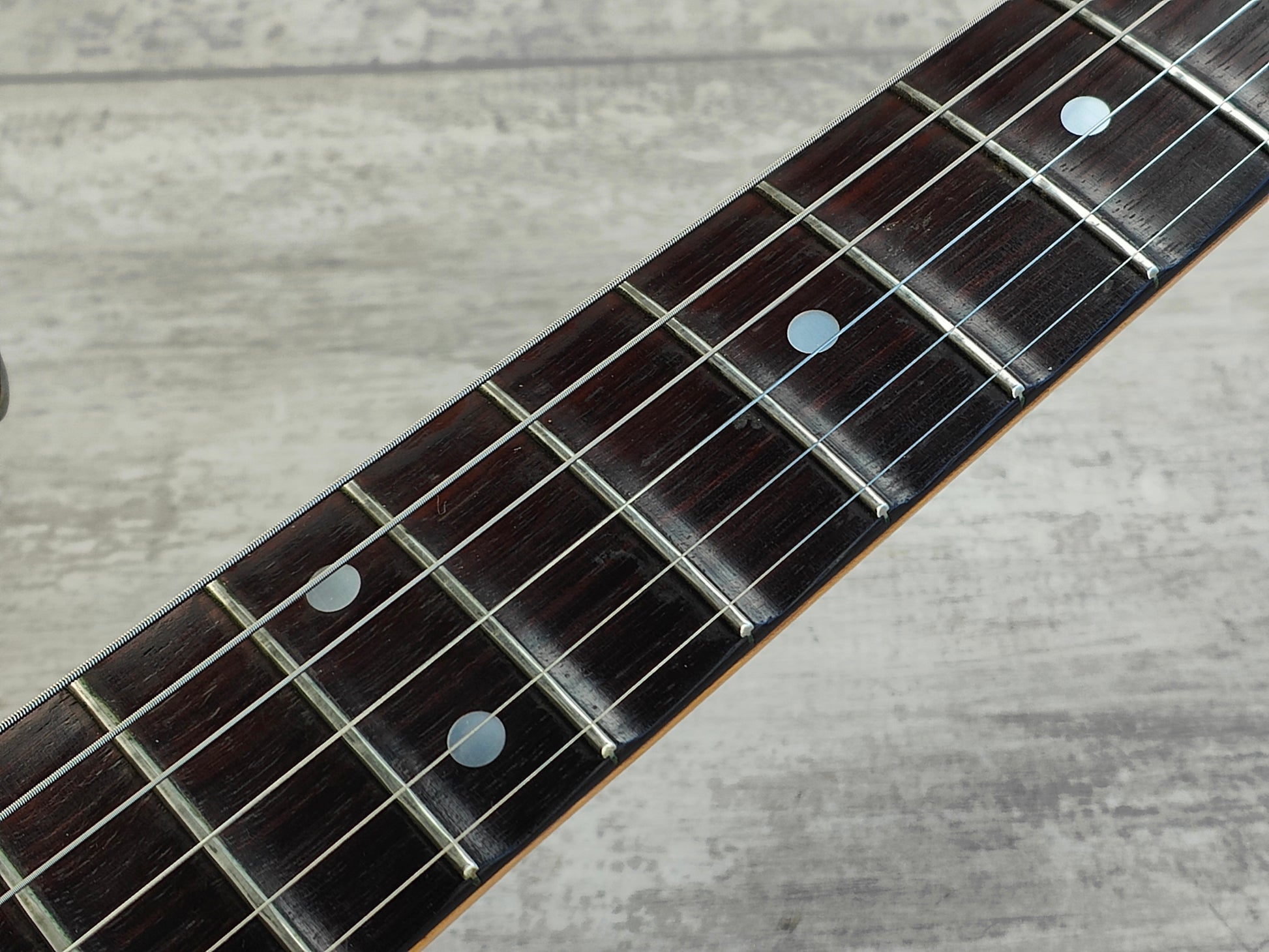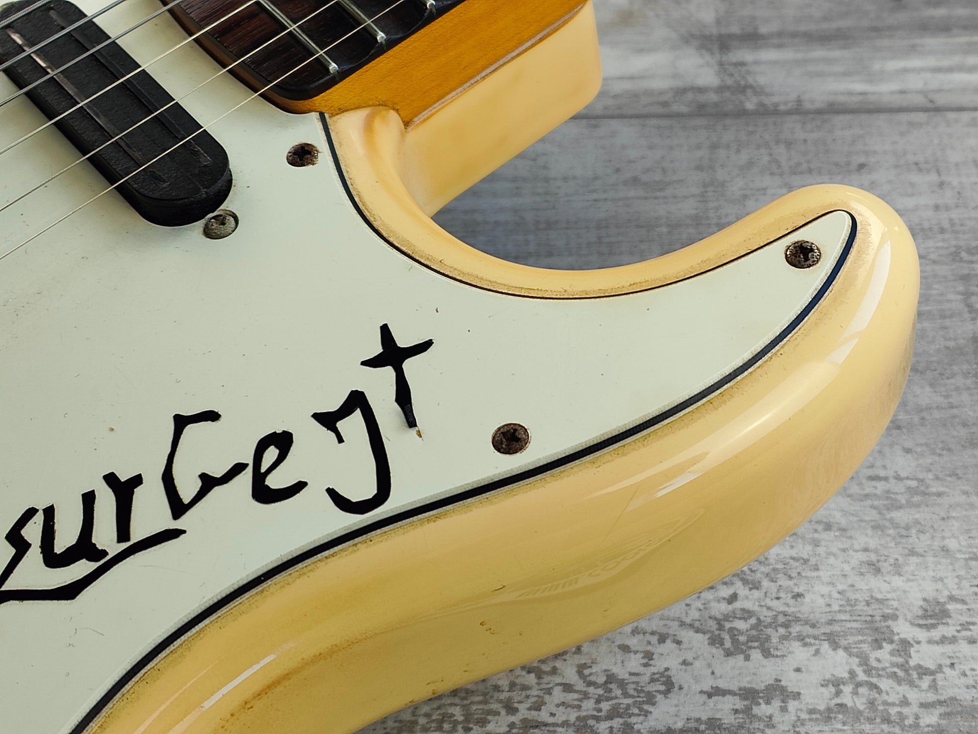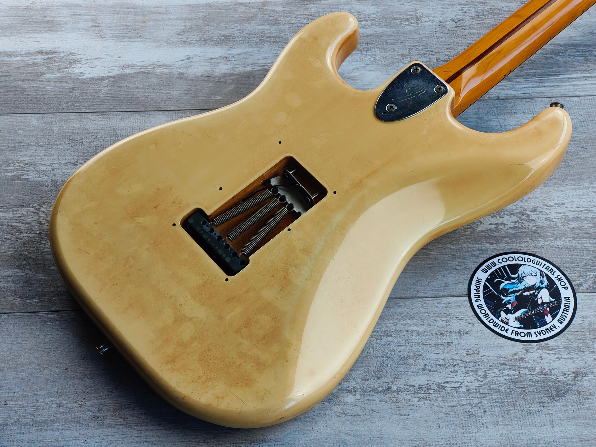 Part of the famous "E Series" of guitars made by the Fujigen factory in the mid 1980's, this is a rare "unofficial" Richie Blackmore model in Olympic White. This one dates to 1985 and is marked in the neck pocket as an "Order Made" model and is built with a basswood body bolted to a maple neck and a factory "Blackmore" style scalloped rosewood fingerboard, weighs 3.8kg's.
