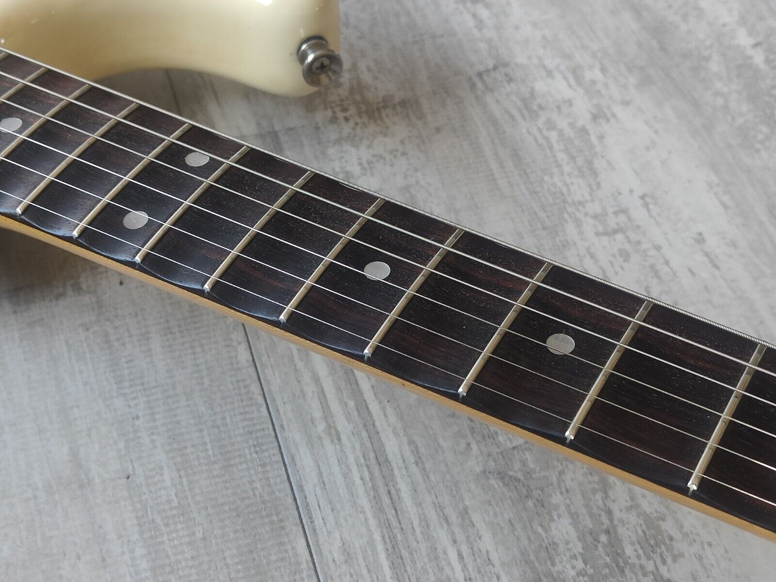 Part of the famous "A Series" of guitars made by the Fujigen factory in the mid 1980's, this is a rare scalloped '72 reissue model in Olympic White. This one dates to 1985 and is built with a basswood body with a maple neck and a factory scalloped rosewood fingerboard. 7.25" radius with a nice slim C profile neck, weighs 3.5kg's.