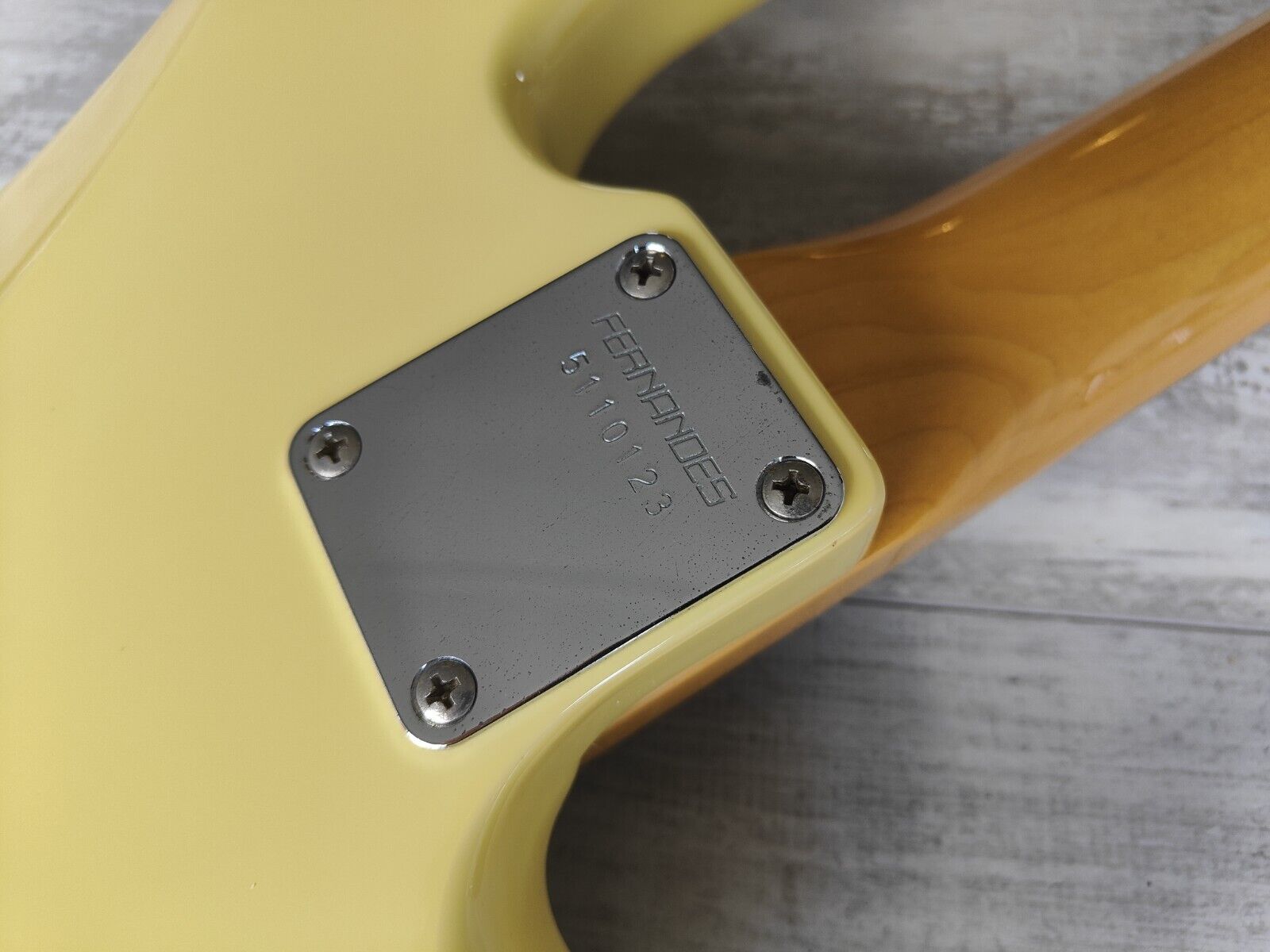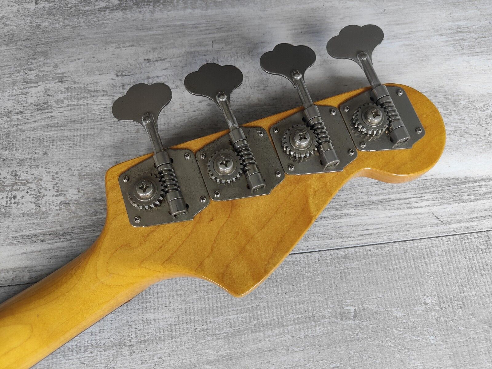 Made by the Matsumoku factory for Fernandes in late 1985, the PB-40L was part of a short run of LH basses built in limited numbers. Vintage white finish on an alder body with a maple neck (7.25" radius, 40mm nut width), it weighs 4.2kg's. Appears all original with four-screw full sized tuners, a Japanese P-bass pickup and volume/tone knobs, the original white finish has faded nicely to a near cream aesthetic.