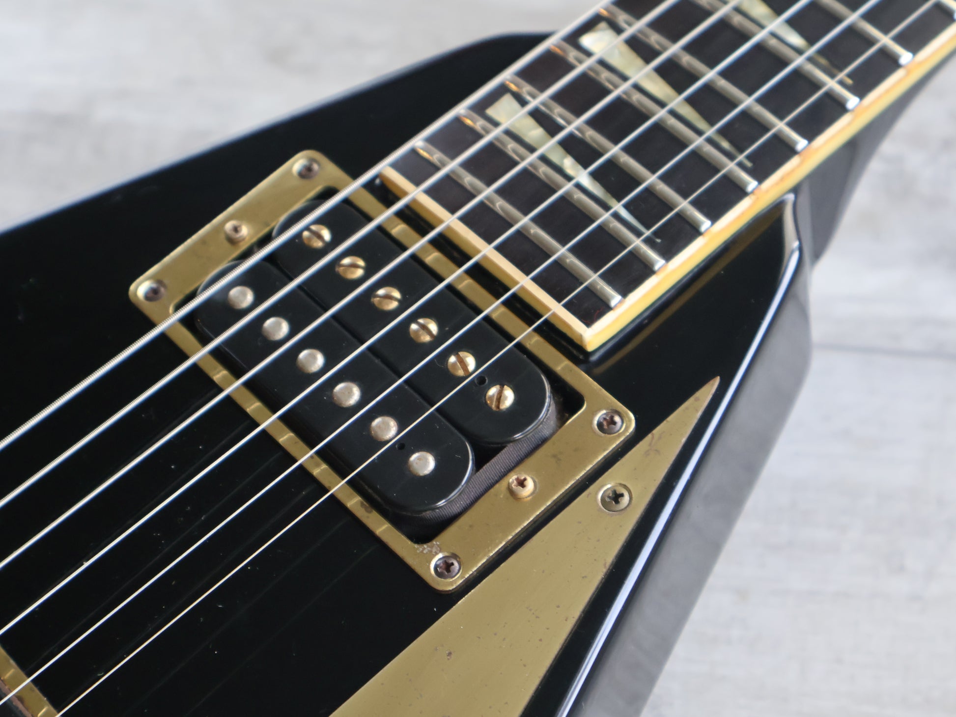 1985 Fernandes Japan FV-115RR Randy Rhoads Flying V (Black/Gold)