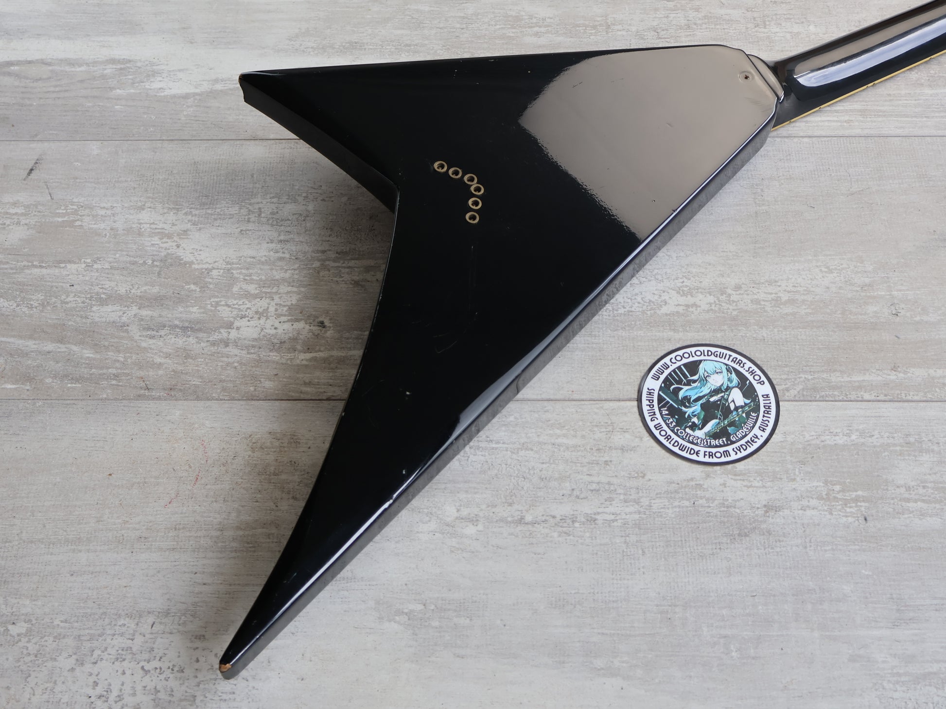 Made in Japan in 1985, the FV-115RR was designed by Fernandes to emulate the exact guitars owned by Randy Rhoads in the early 80's. The Fernandes team apparently visited the USA to take some measurements, allowing them to recreate the exact guitars perfectly. Mahogany body set to a maple neck with a 22 fret rosewood fingerboard (13.75" radius, 648mm scale length), weighs just 2.9kg's.