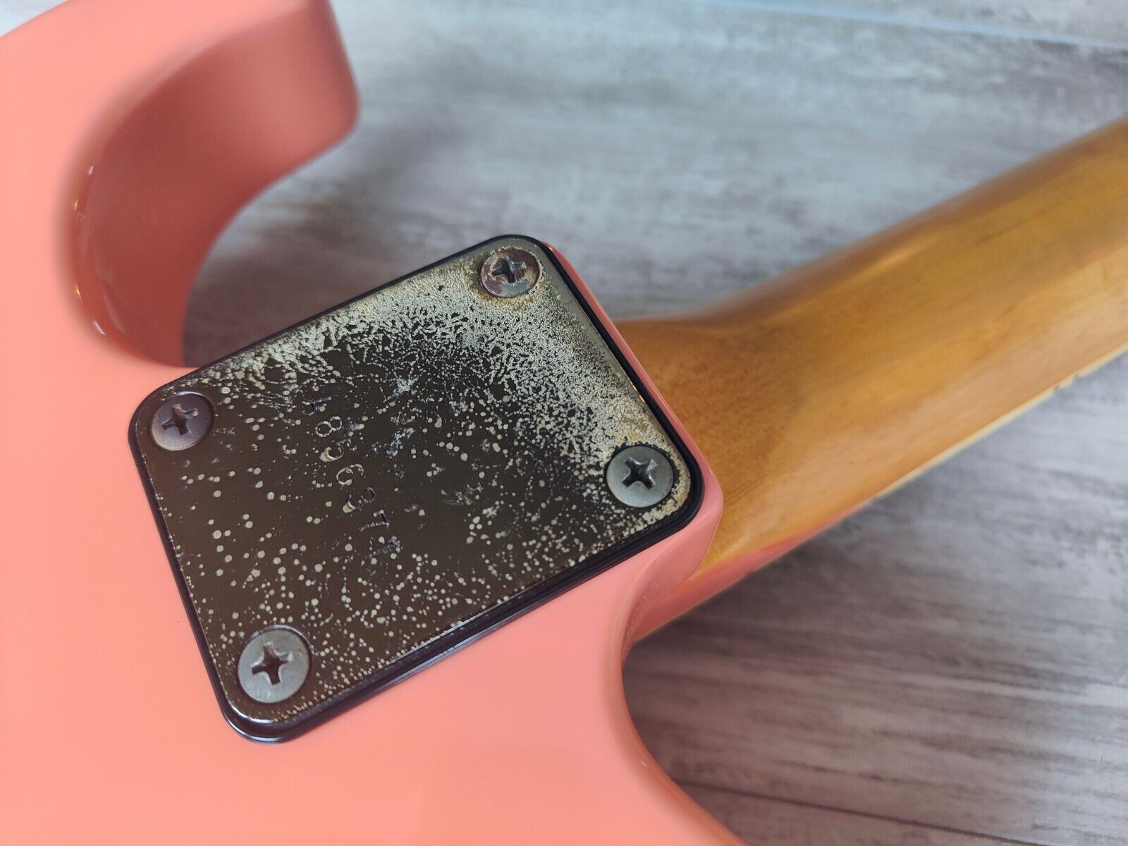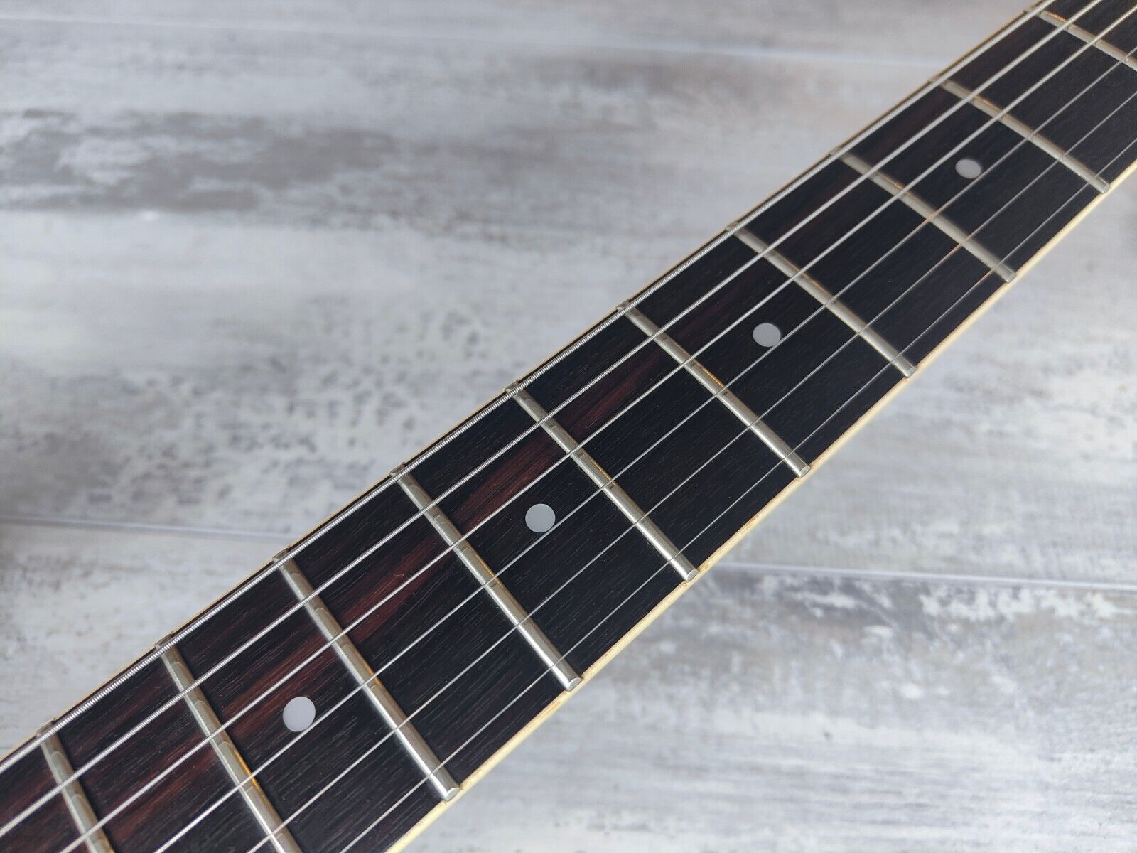 Given a basic setup and service prior to listing, plays and sounds great. Previous owner sanded the neck back to a satin smooth finish so it plays faster than with the glossy paint. Frets have plenty of life and are shiny, truss works well and the neck is straight.