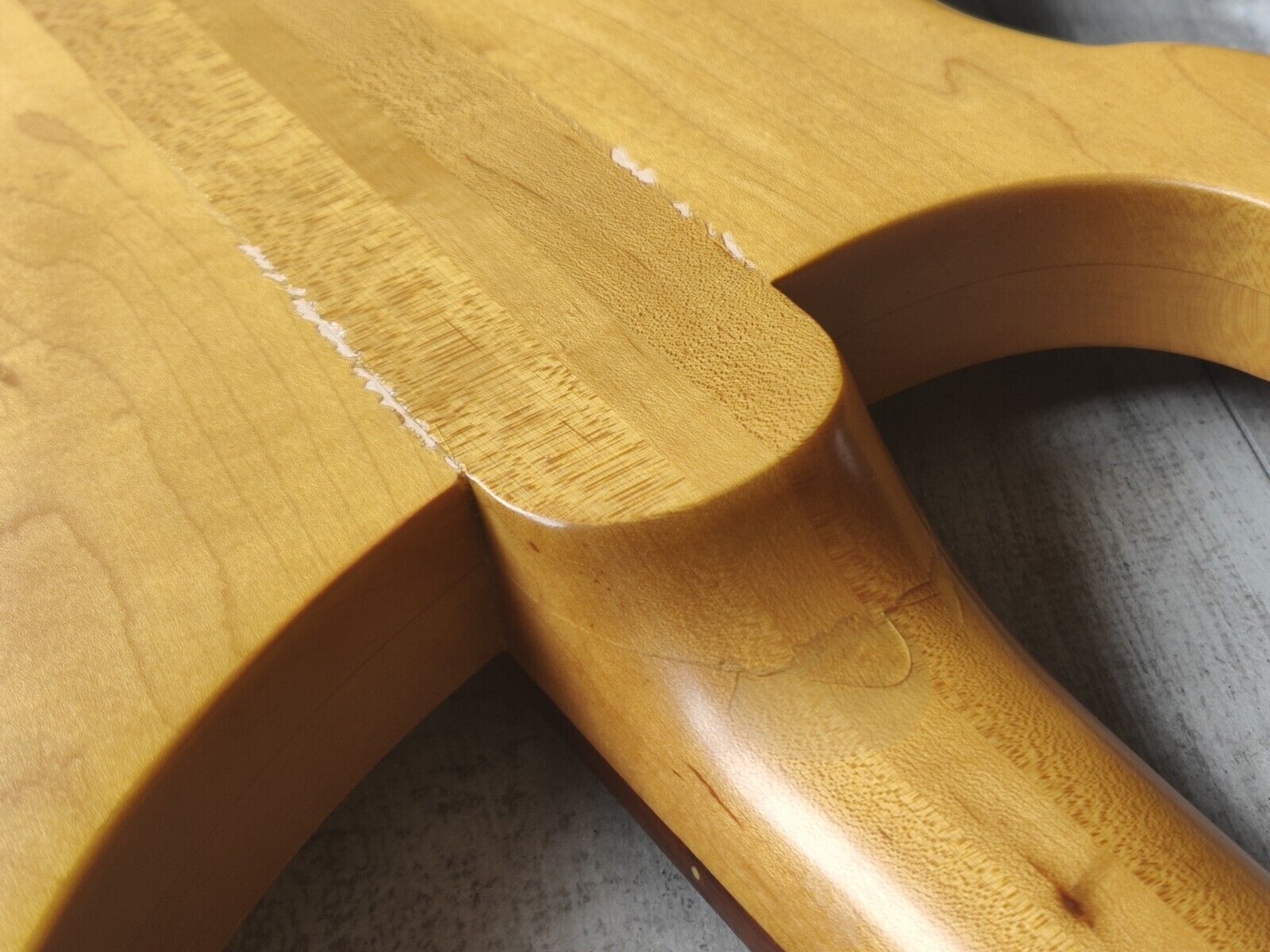 Made by the Fujigen factory in 1985 as part of the Greco "Rock History" series of guitars and basses, the PMB70 features a maple body and maple neck with a rosewood fingerboard and weighs 4.4kg's. Our legal team said we can't say much about this design as it's frowned upon by the estate of a certain Swiss engineer.