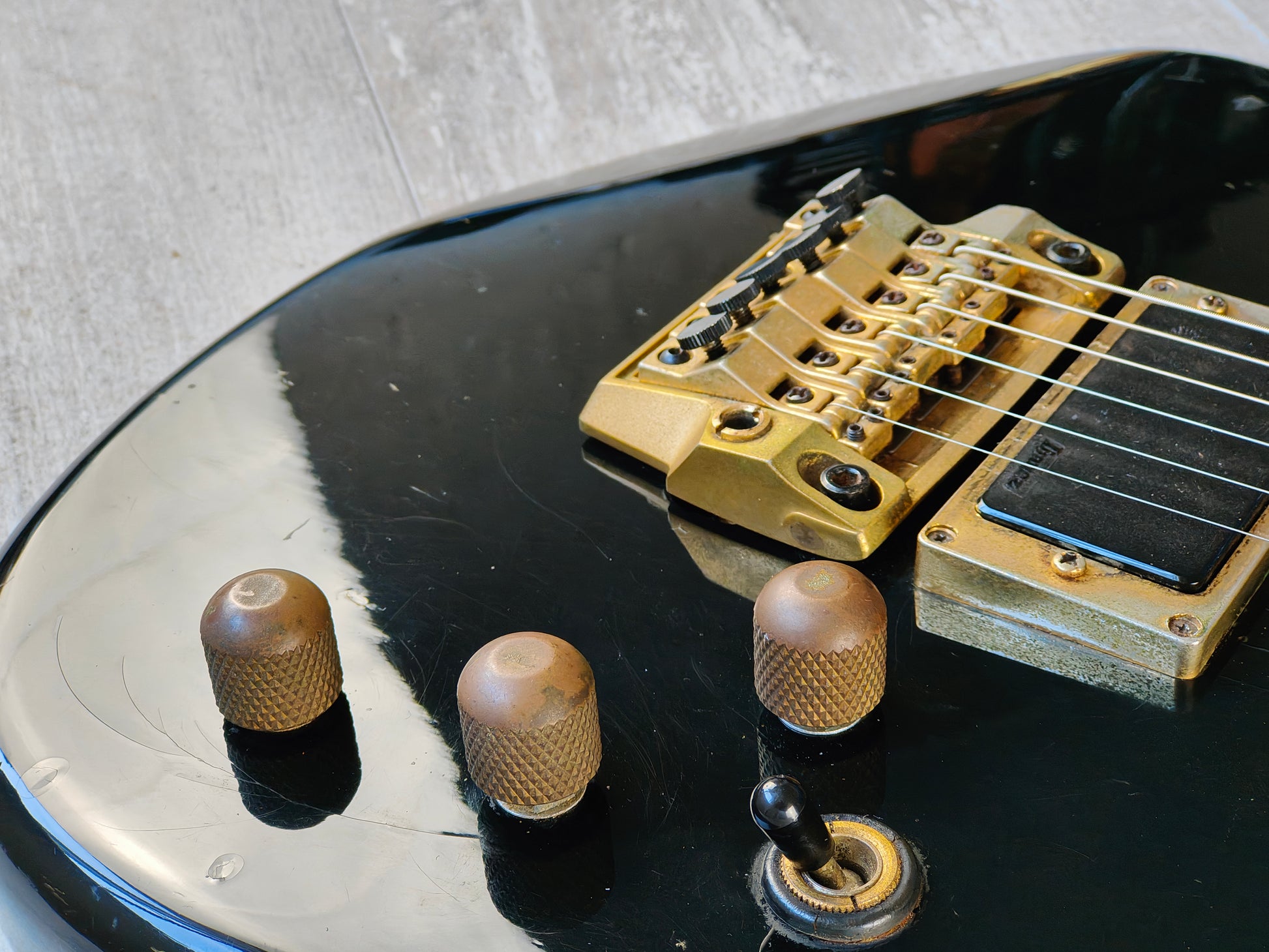 The Ibanez RS520 Roadstar II was made in Japan in 1985 and features an arched basswood body bolted to a maple neck with a 24-fret rosewood fingerboard. Loaded with a pair of Ibanez IBZ humbuckers with Duo Sound coil-split functionality and a Pro Rock'r double locking tremolo bridge with a locking system after the nut, knurled Tek Grip control knobs and Smooth Tuner II tuning machines. Weighs 3.7kg's.