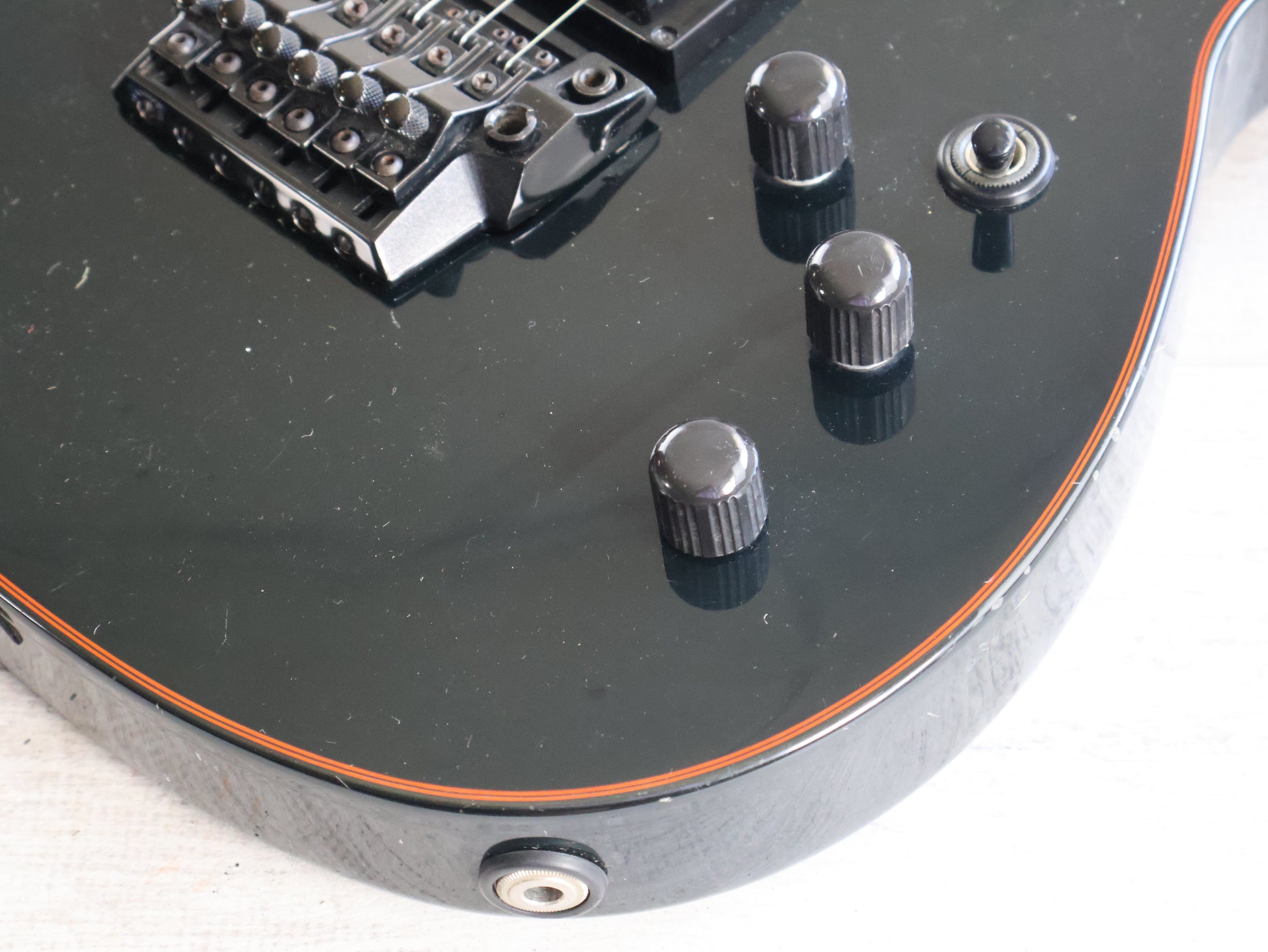 The Ibanez RS530 Roadstar II was made in Japan in 1985 and features a maple top with red pinstripe binding on a basswood body bolted to a maple neck with a 24-fret rosewood fingerboard.