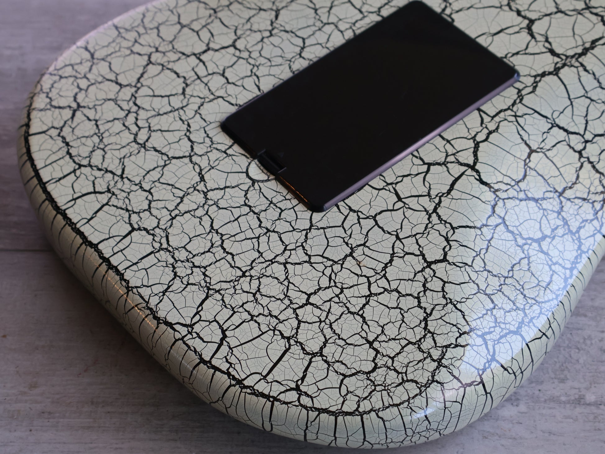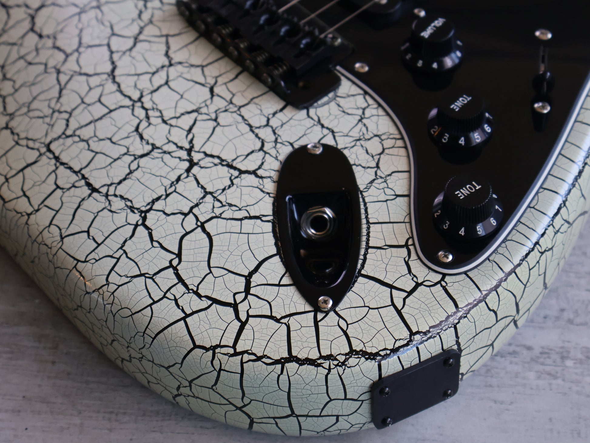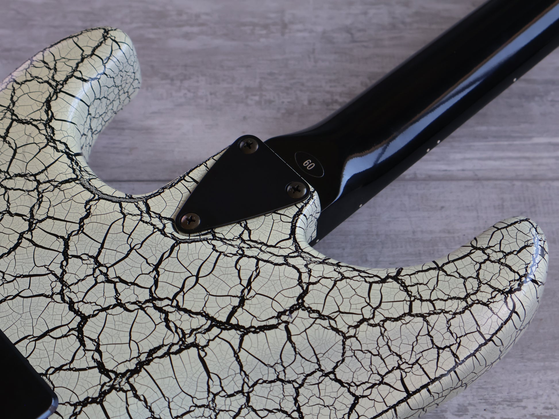 "Crackle" finish on a chambered fiberglass body bolted to a solid fiberglass neck with a rosewood fingerboard (22 frets and a 15.75" radius), it weighs 3.5kg's. These were only made for a year or so before being discontinued so are exceptionally rare!