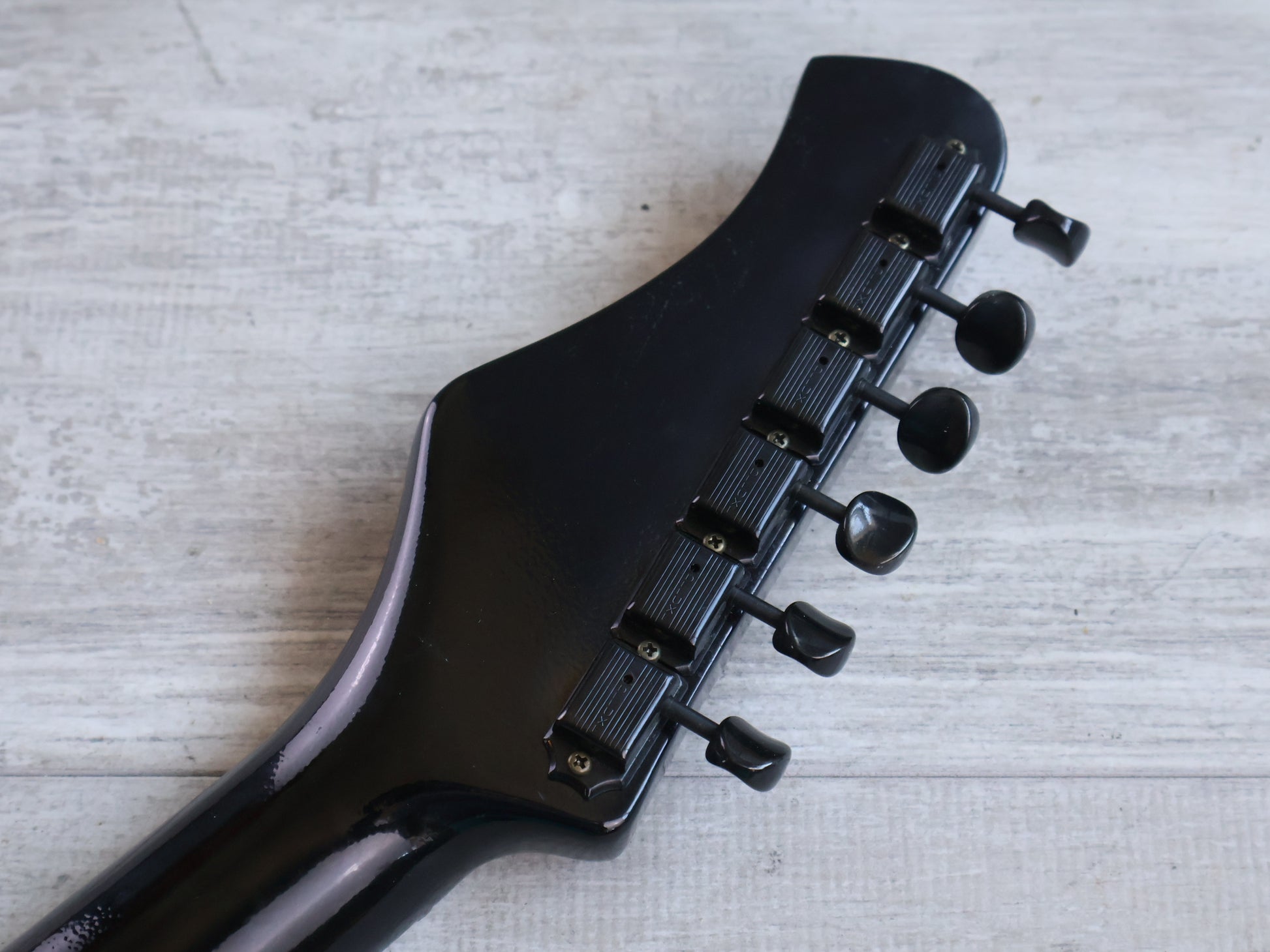Very clean overall vintage condition with basic signs of wear and tear with a few cosmetic dings to be seen, restrung and given a basic service and restring prior to listing. The pickups have been swapped with what look like Schecter single coils and a generic humbucker and this one has a Stratocaster style tremolo system.