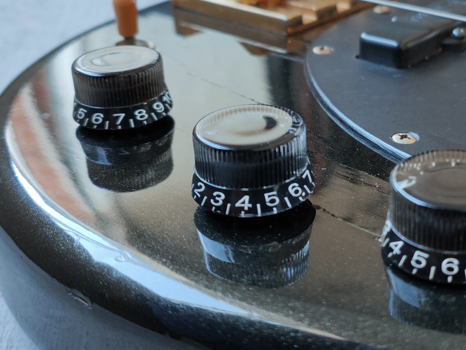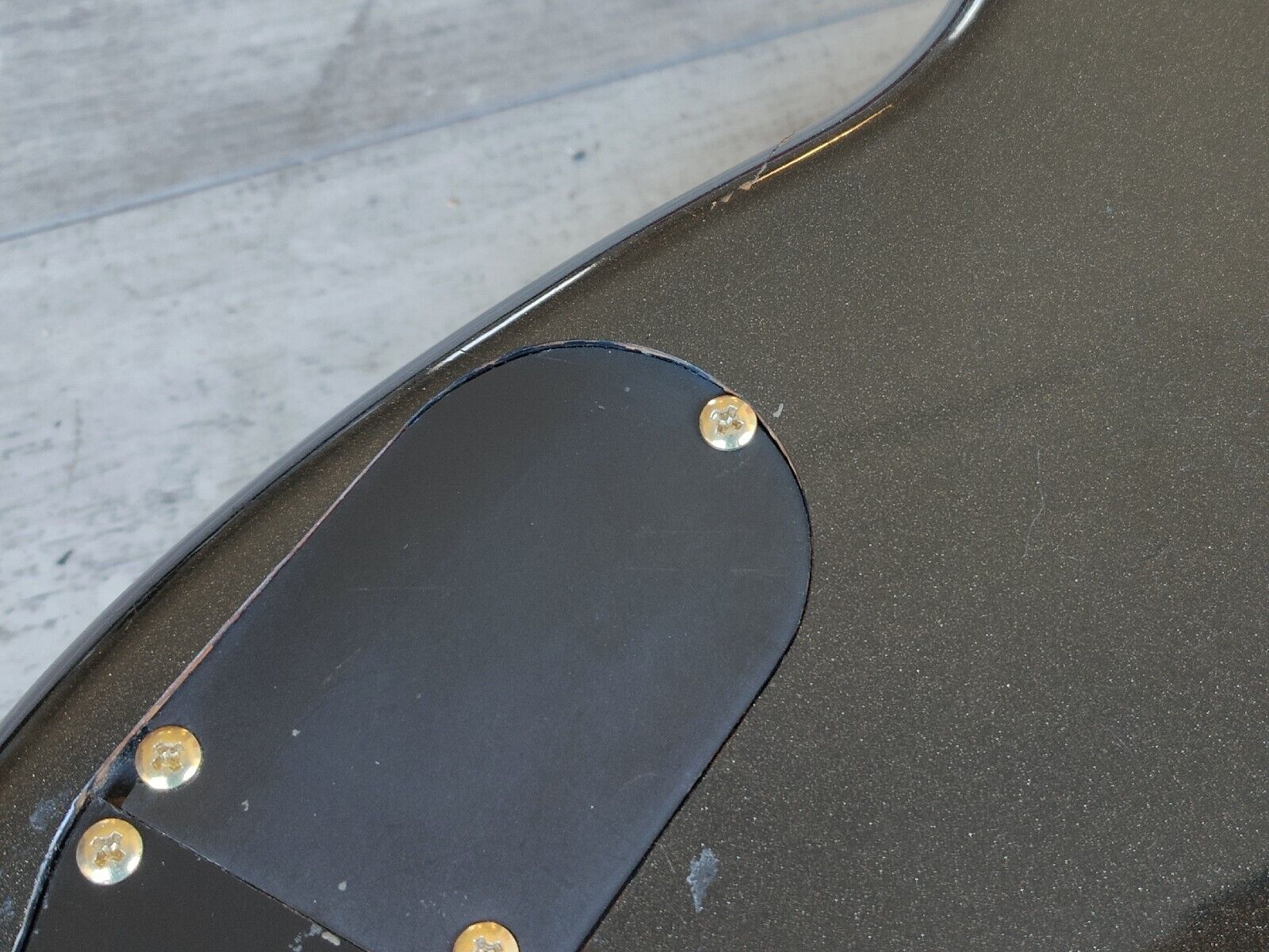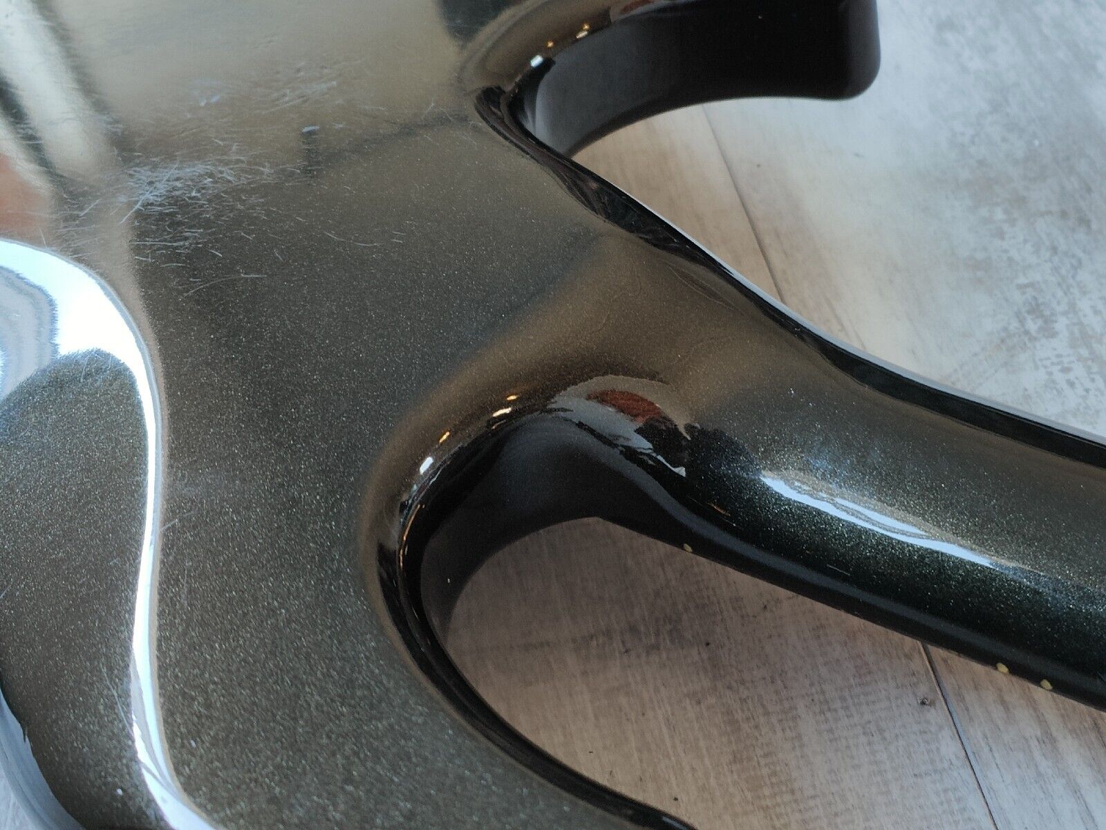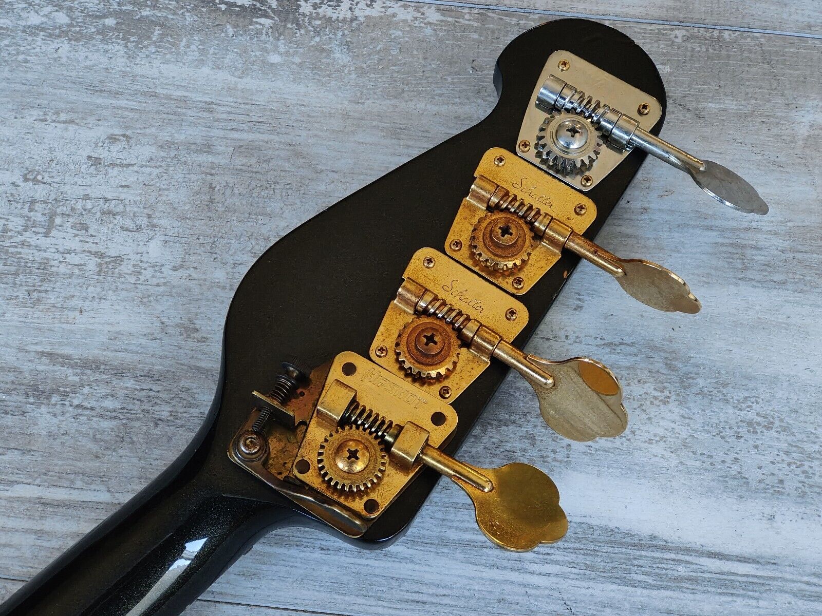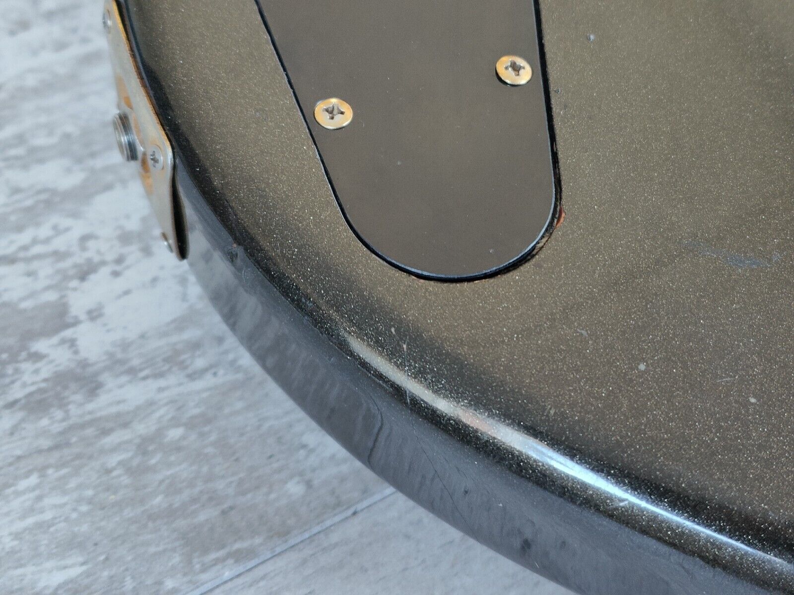 This one received a crack around the control cavity during the shipping process that our in-house tech glued, strapped and clamped to ensure that it's rock solid and now it's purely a cosmetic crack with no structural degradation. The frets are smooth and the neck is straight with an adjustable truss, overall it's in very good cosmetic condition aside from the aforementioned repair. Without the repair and the mods this thing would be almost twice the price as it's an incredible high end vintage Japanese bass!