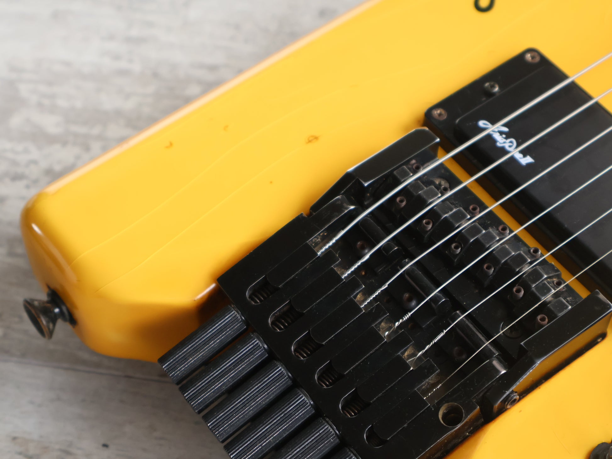 1986 Aria Pro II Japan Interceptor-II Headless Guitar (Yellowed White)