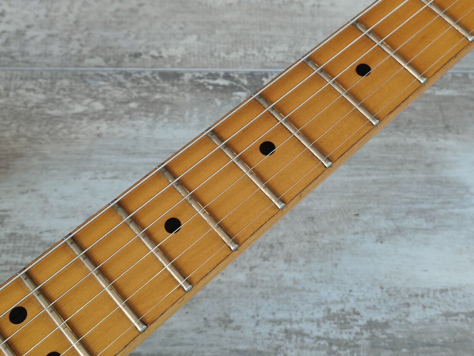Japanese made in 1986, the Model 1 was the simple pleasure from the Jackson/Charvel catalog. Basswood body with a maple neck and 22 fret maple fingerboard (12" - 16" compound radius), it's loaded with a single Jackson J-90C humbucker controlled by a master volume knob and weighs 3.8kg's. Looks to be all original except for the missing truss cover.