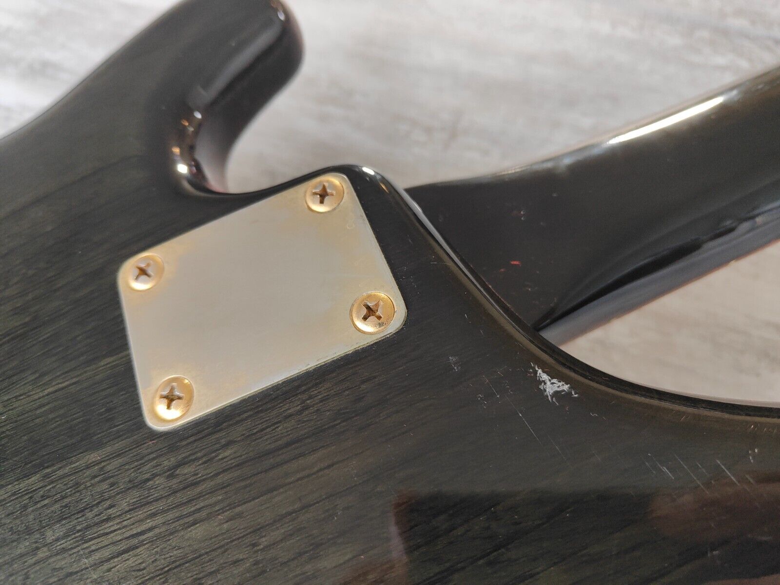 Made in Japan in 1986, the MB-III was part of the Motion B series from Yamaha of short scale basses with compact bodies. Rounded ash body with a maple neck and 24 fret rosewood fingerbard (820mm scale length), weighs 3.7kg's. Loaded with a pair of passive PJ pickups controlled by volume, tone and pickup blend controls.