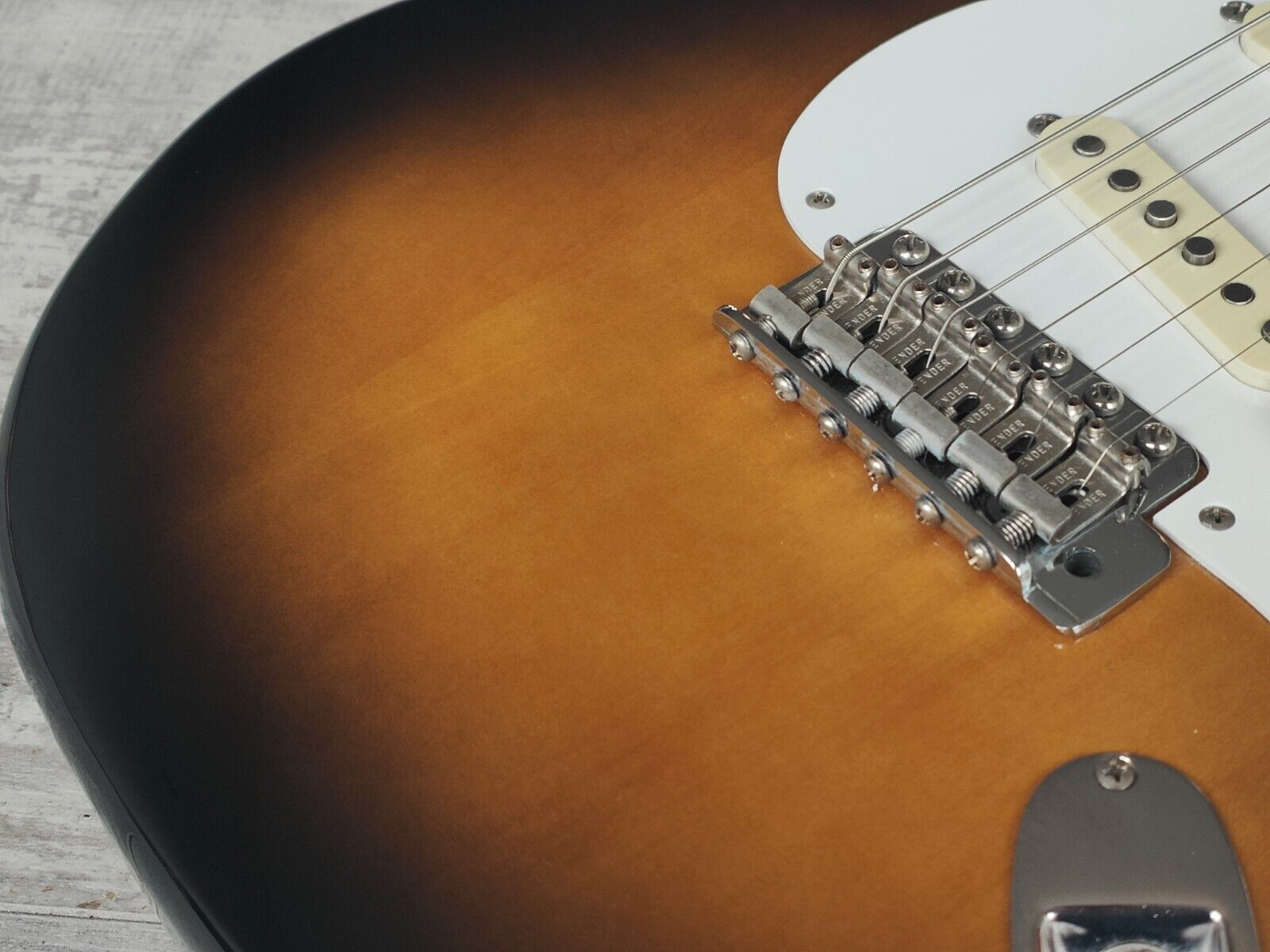 Basswood body with a maple neck shaped with the famous '54 soft V neck profile (7.25" radius, 43mm nut, 648mm scale length), it weighs 3.8kg's. Seems all original with a factory 5-way switch (compared to the 3-way on later ST54 models), Japanese ST-VINTAGE single coils, a die-cast bridge, vintage style tuners and Fender stamped saddles.