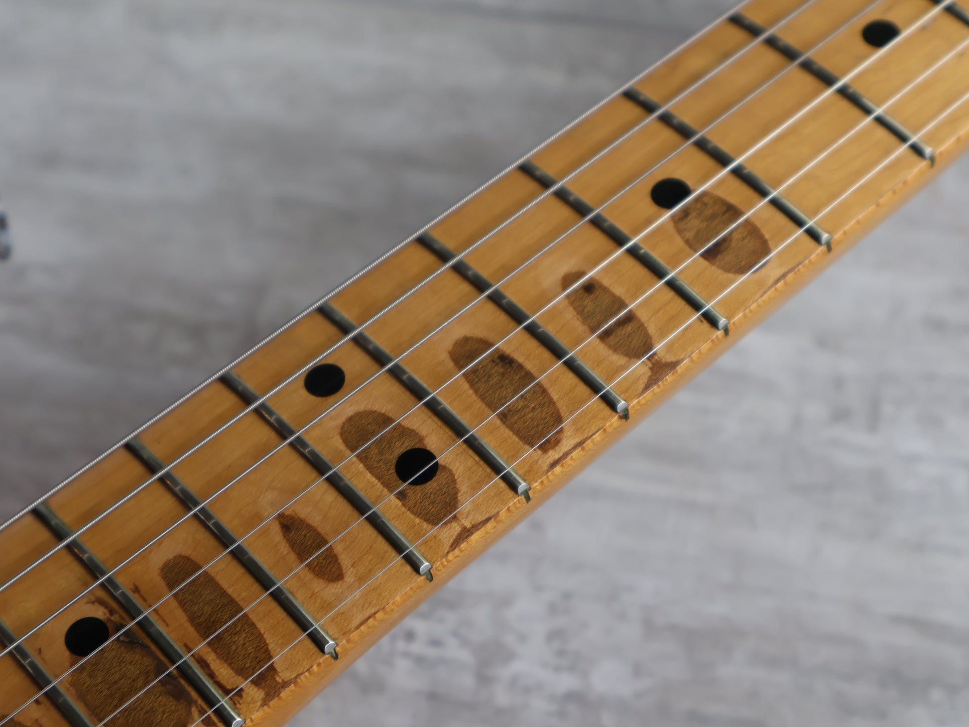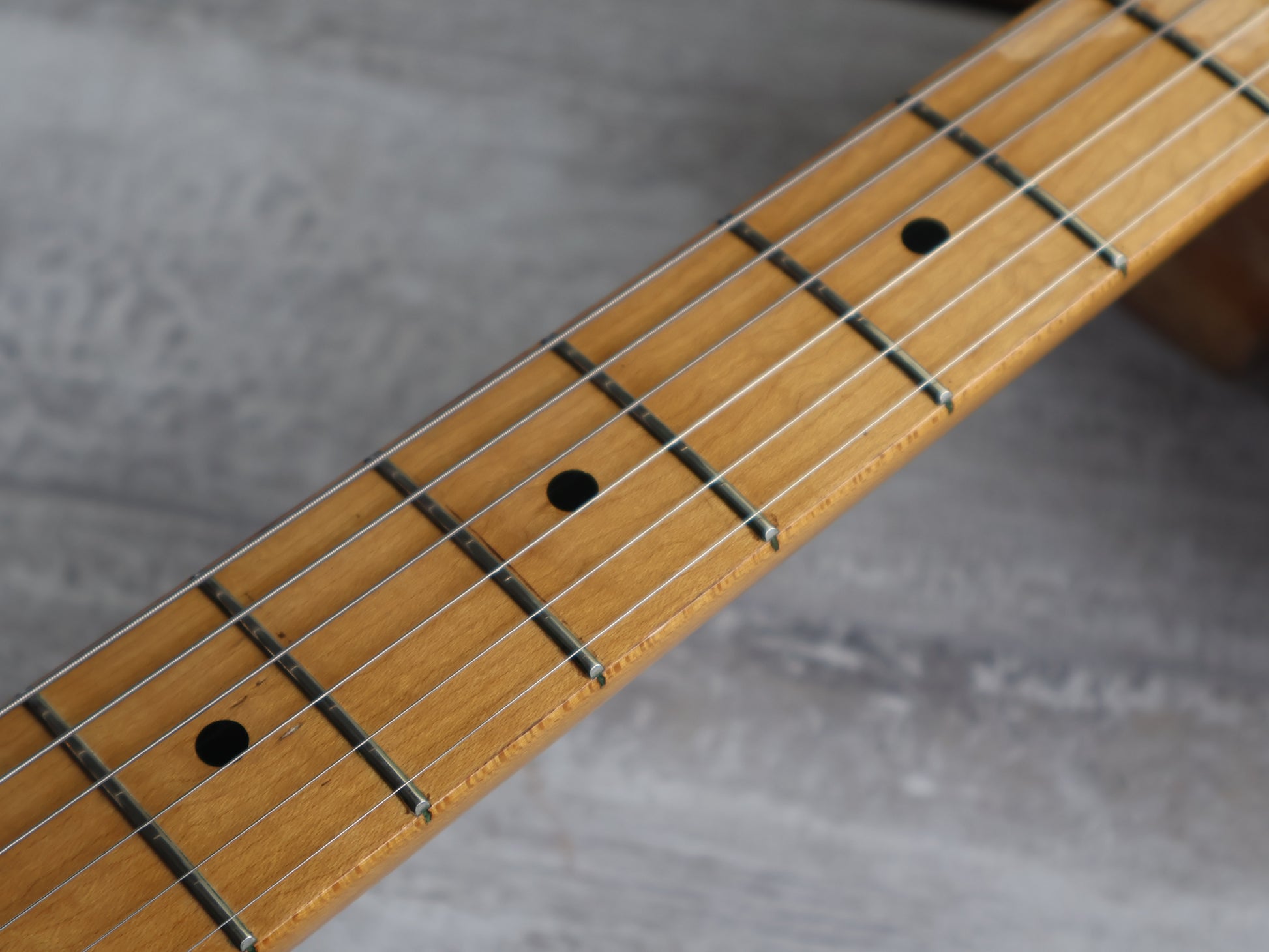 Built with a White Ash body bolted to a maple neck (7.25" radius) and this one weighs 3.5kg's. Seemingly all original as pictured with Fender ST-Current alnico single coils and full-size pots.