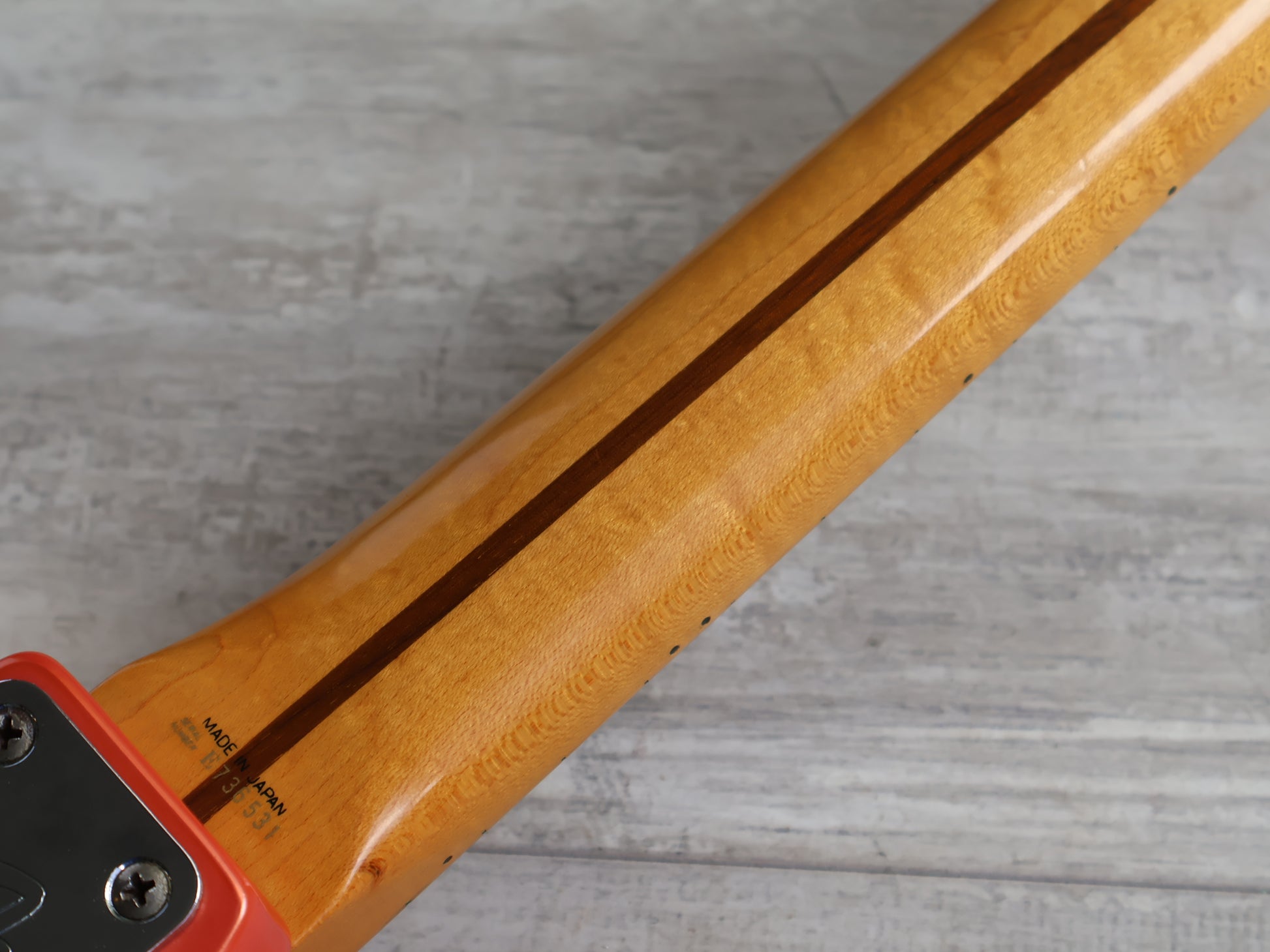 Made by the Fujigen factory in Japan in 1987 as part of the famous " "E Series" run of high quality Japanese guitars, the Fender ST72-125PRD was a limited edition models in the "Collectors Series" catalog. Designed as a '72 Reissue with all CBS style features including a three-bolt neckplate and F stamped Schaller style tuners, it wears a beautiful gold foiled "Pink Paisley" with a nitrocellulose finish.