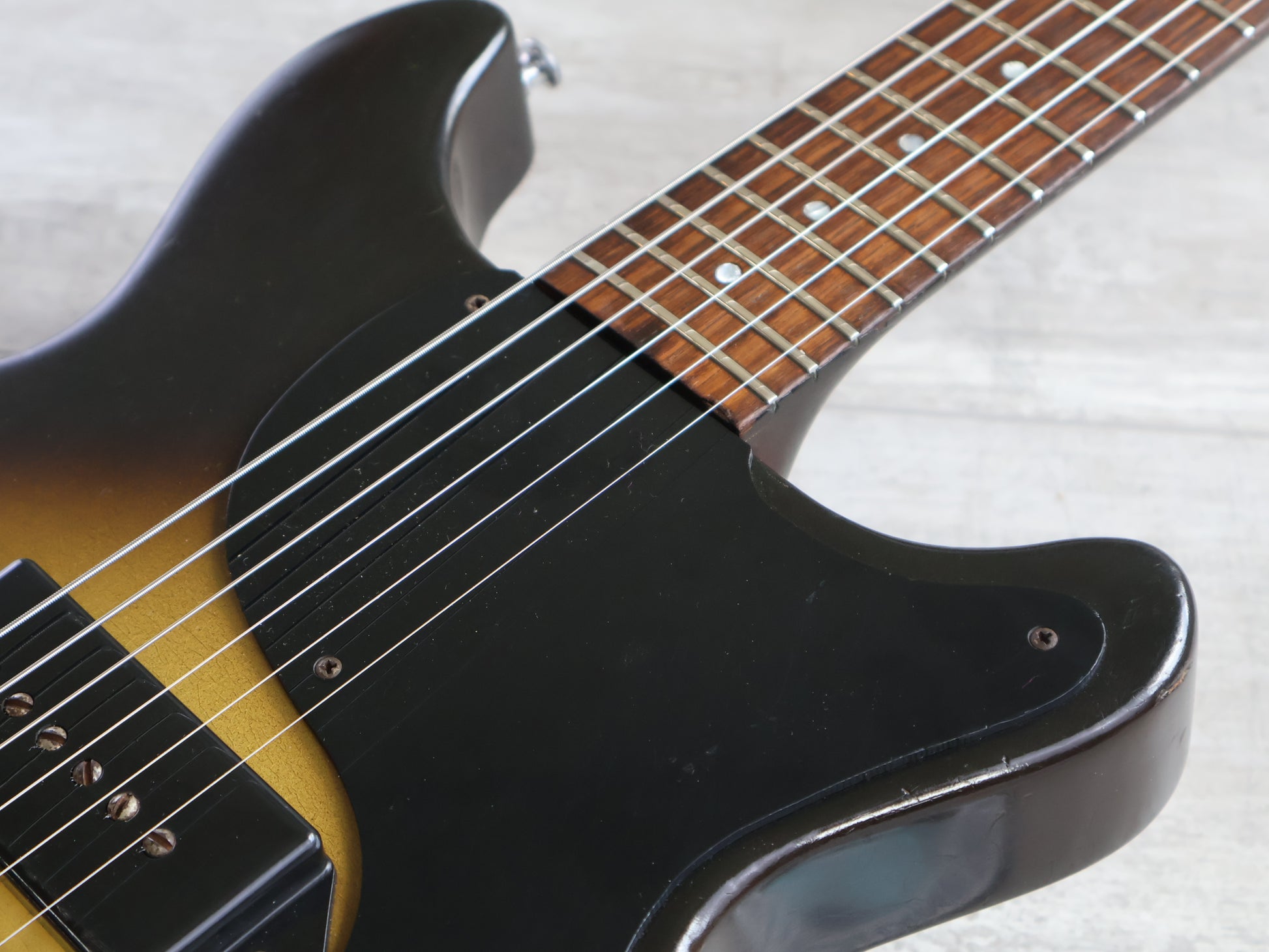 A true players grade example of one of the best players guitars Gibson produced! USA made in 1987, the Gibson LP Junior DC is a simple pleasure. Faded sunburst finish, solid mahogany with a slim mahogany fingerboard, Grover tuners and the original P90 pickup (aftermarket Gotoh bridge), weighs 3.7kg's and includes a brown Gibson hardcase with pink plush lining.