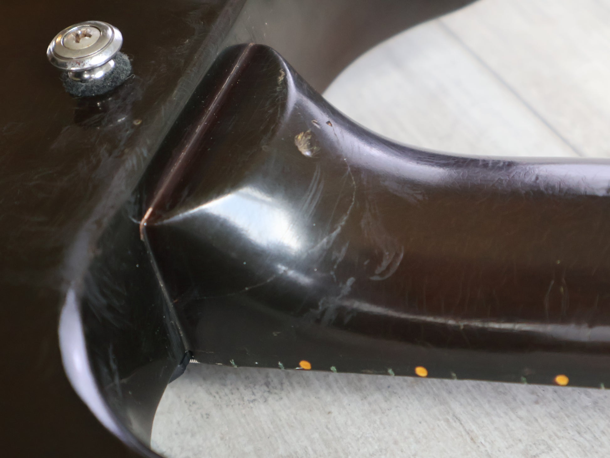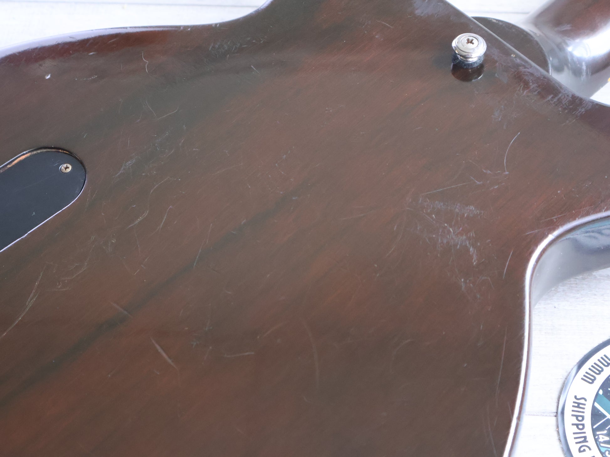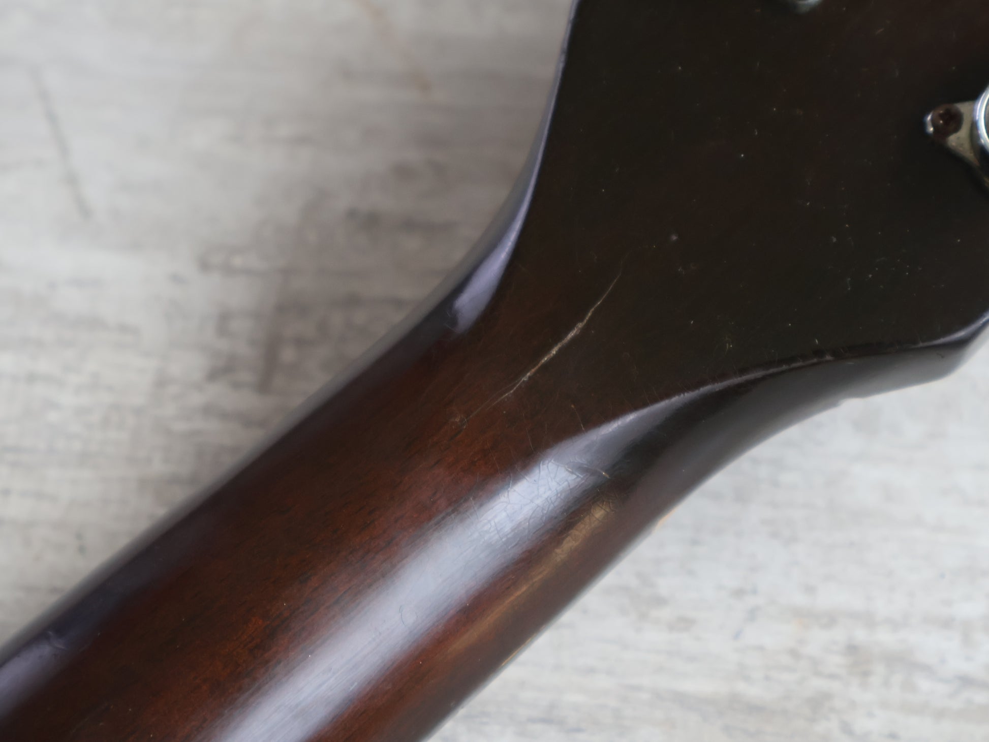 Two small cosmetic cracks in the neck as pictured, both injected with glue and completely solid with no movement or structural issues. The truss works as it should and the frets are shiny with life left. Strung with NYXL 10-52's prior to listing.