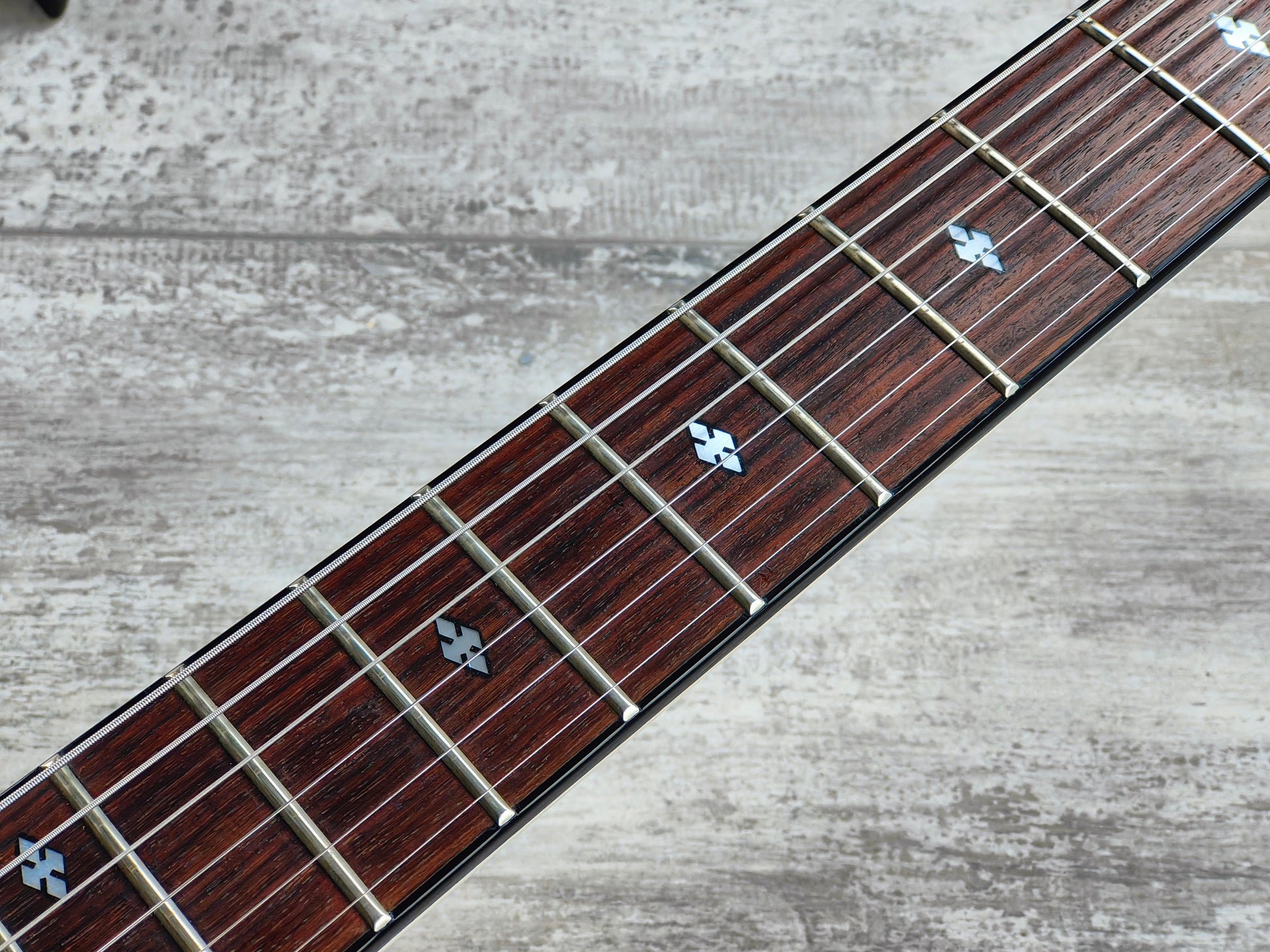 Japanese made in the late 1980's, the SFX guitars were a signature series for Kyoji Yamamoto. The SFX-I was the highest end model in the range, featuring a maple set-neck construction with a mahogany body, bound maple top and rosewood fingerboard (24 frets, 628mm scale length), it weighs 4.4kg's. Rocking Magic II locking tremolo system and a pair of Power Guerrilla rail humbuckers controlled by master volume/tone knobs, a coil split toggle and an active power boost toggle.