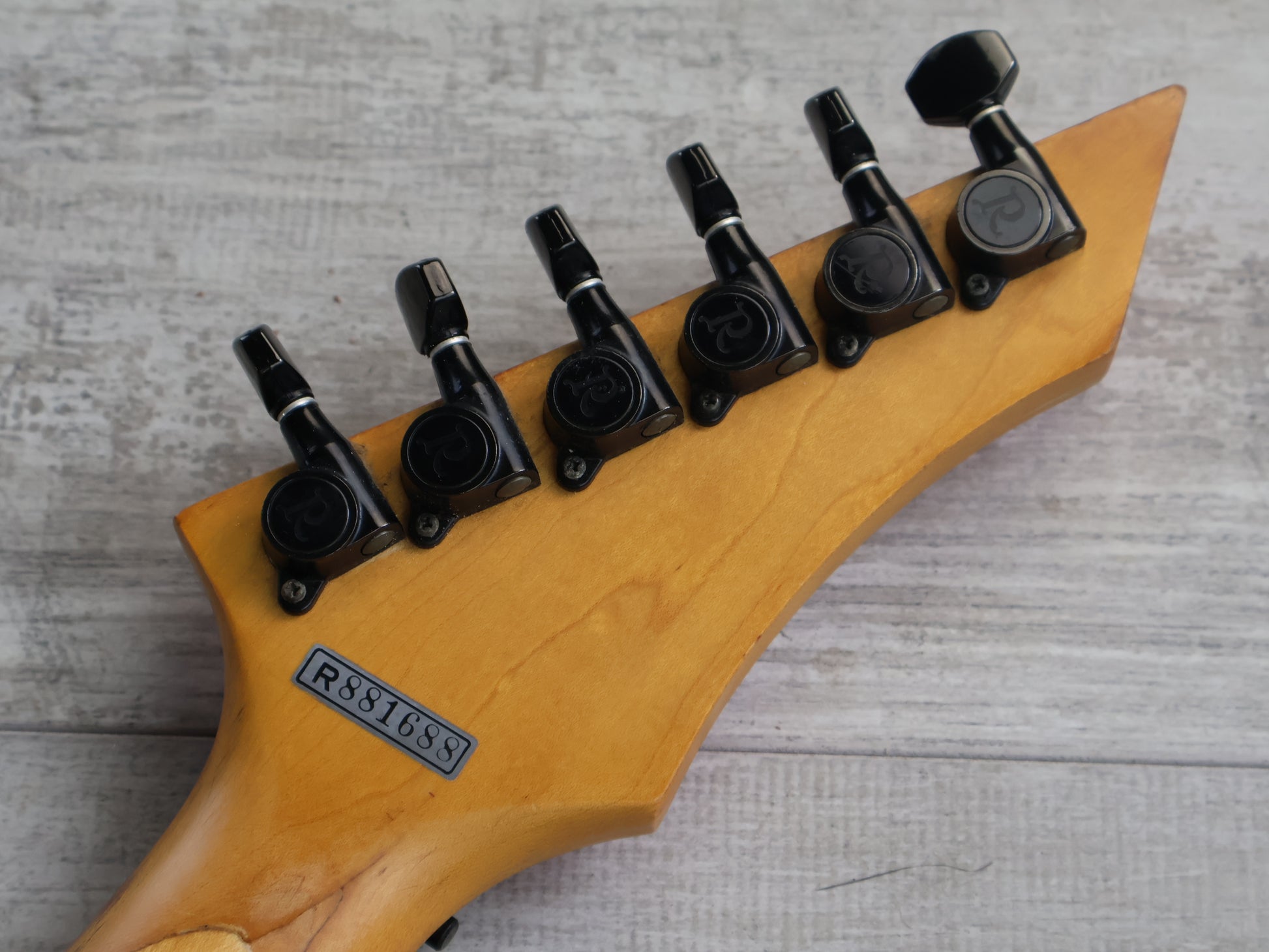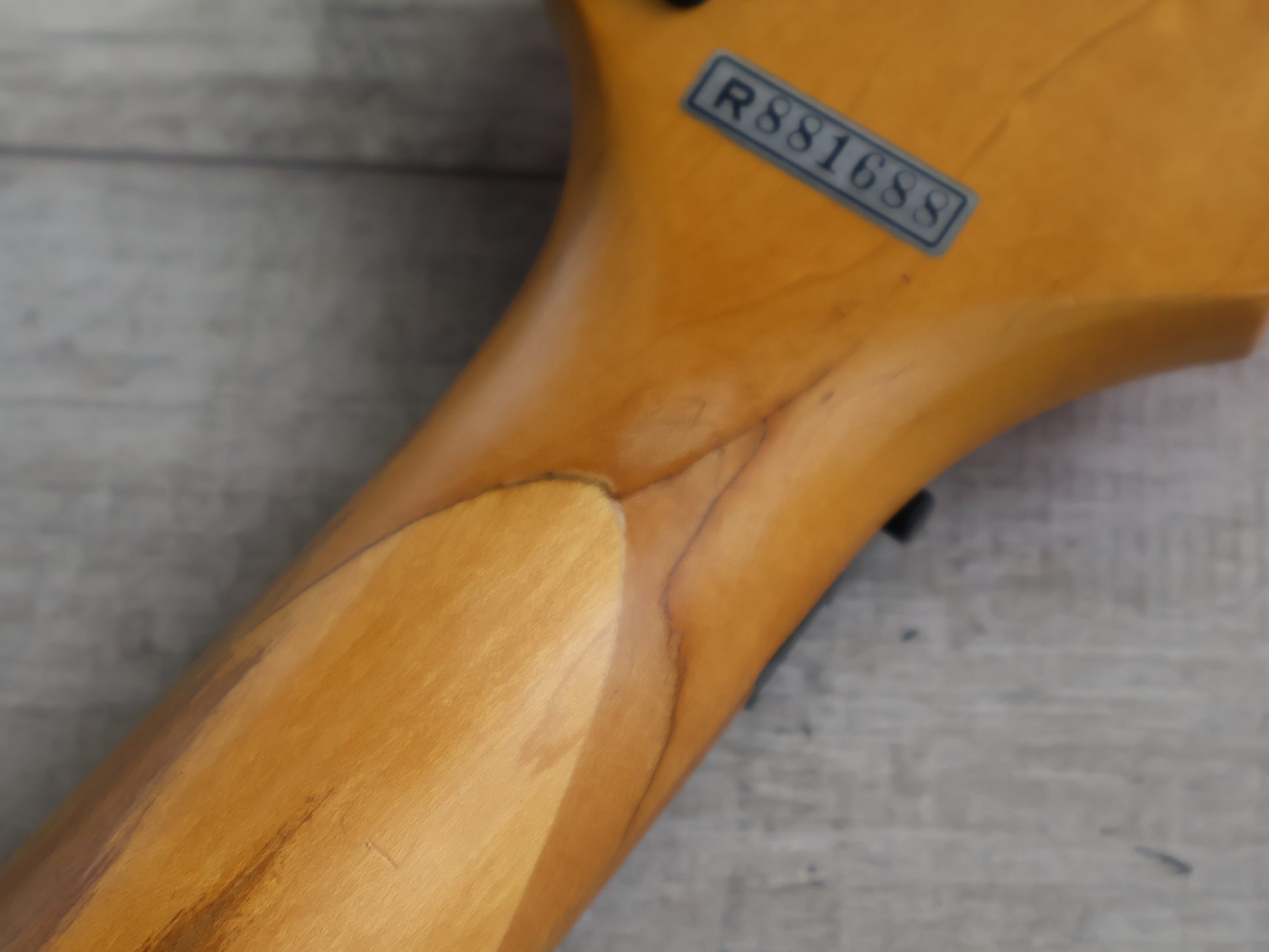 Good condition for it's age with only basic signs of wear from general use. The truss adjusts as it should and the neck is straight, the frets are fairly worn but were polished and play smoothly, received a professional Floyd Rose setup and service prior to listing. There's a partial headstock repair as pictured that is rock solid and smooth to the touch with no ongoing issues.