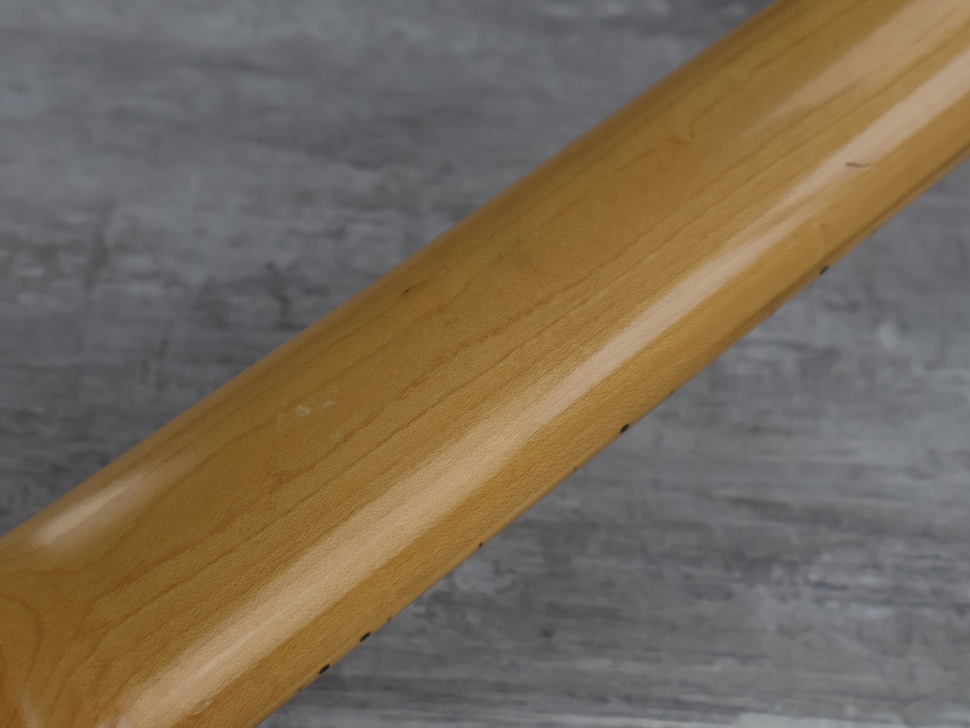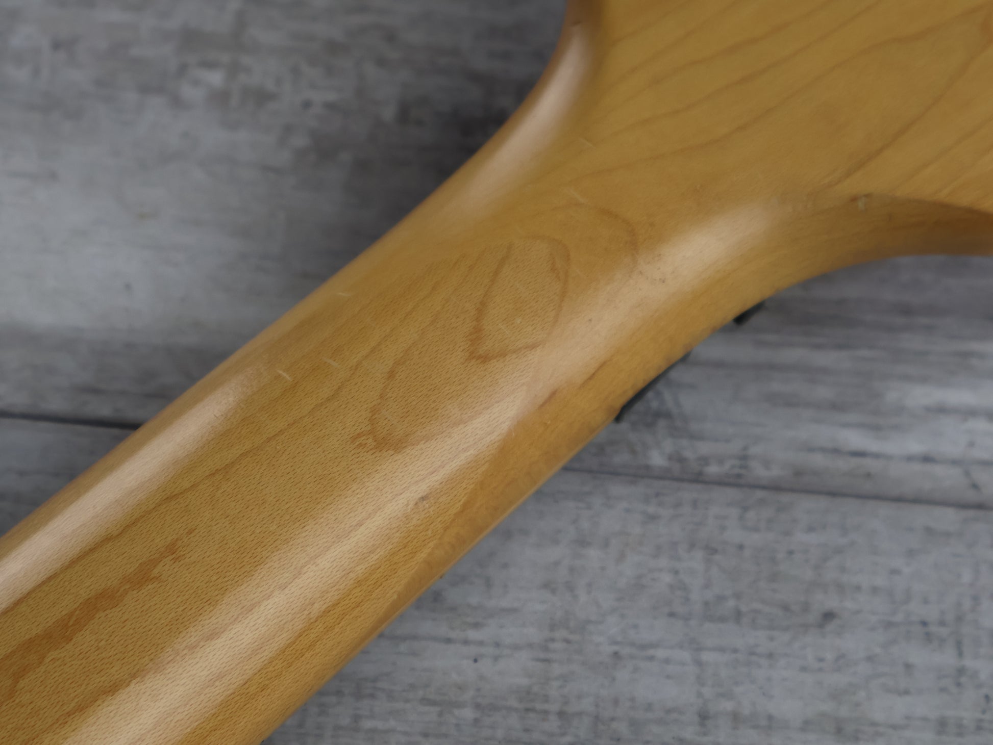 ST style maple body bolted to a maple neck with a 22 fret maple fingerboard (648mm scale length, 43mm nut width), it weighs 3.8kg's. Loaded with the original HS BC Rich pickup combination controlled by a master volume control and three-way mini toggle along with the original BC Rich branded tuners and Floyd Rose tremolo system as pictured.