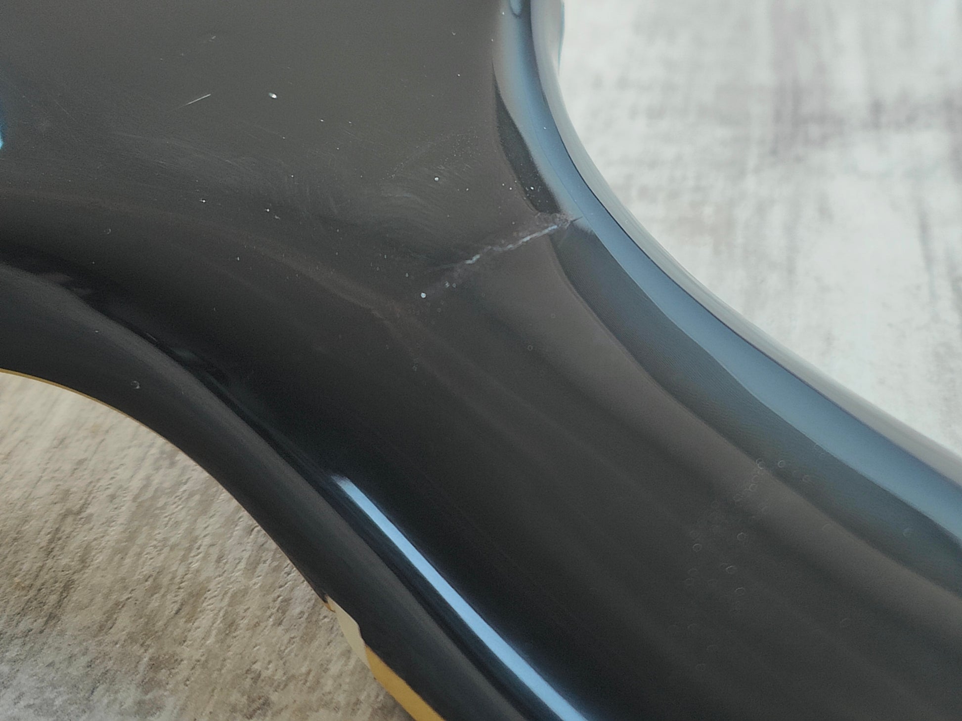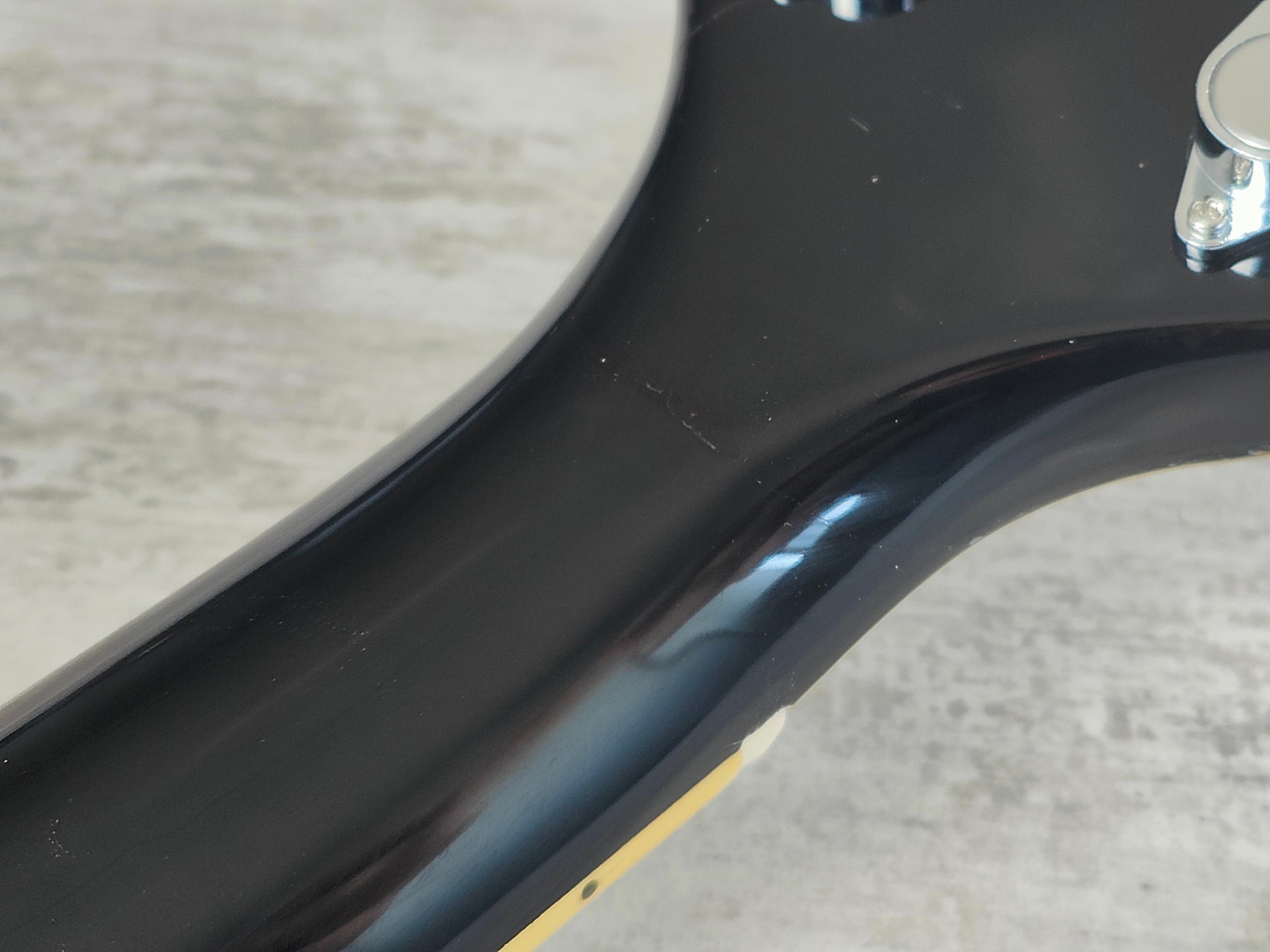 Made in Japan in 1988, the Burny RLC series are some of the most sought after Les Paul Custom models in the world of Japanese guitars. Mahogany construction with a rosewood fingerboard, it weighs a reasonable 4kg's and plays with a nice slim 60's style neck profile (no volute). Looks to have a new bridge, tailpiece, tuners and a new set of chrome humbuckers installed.