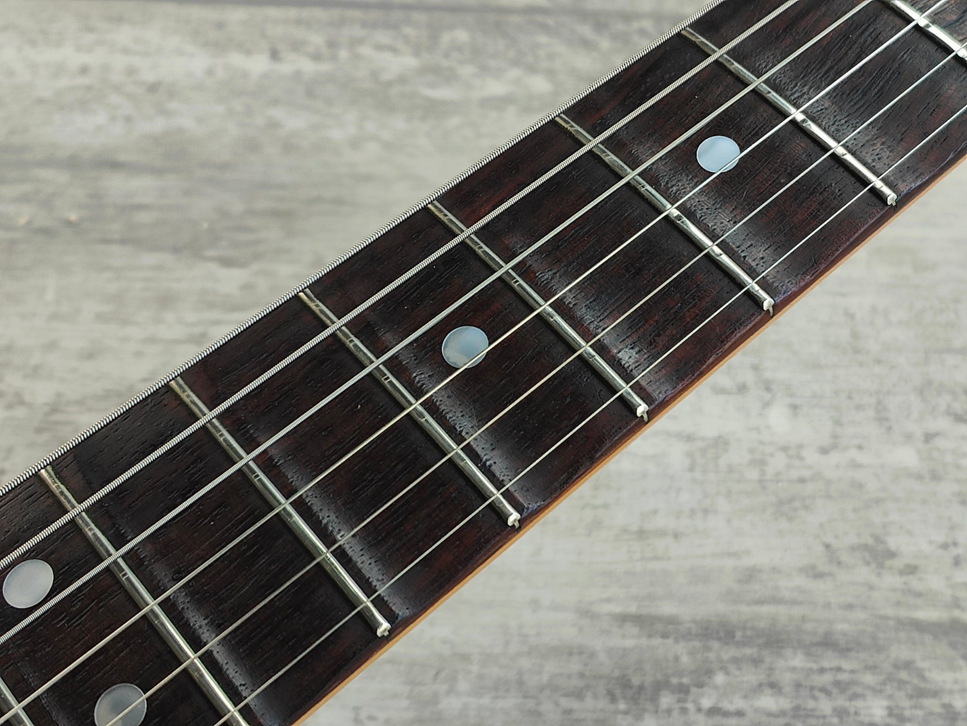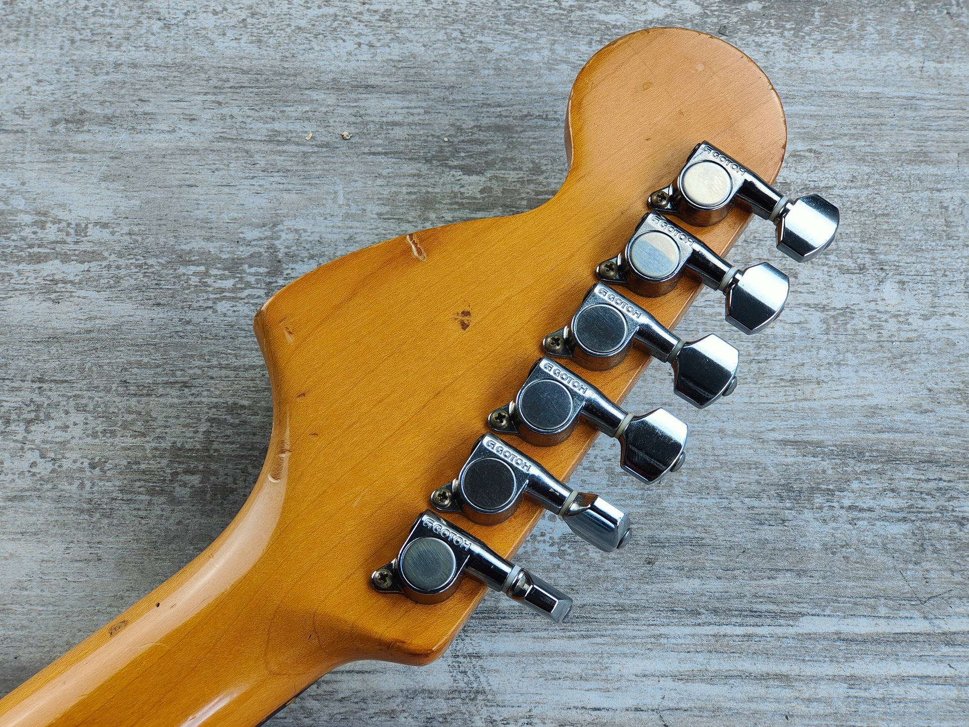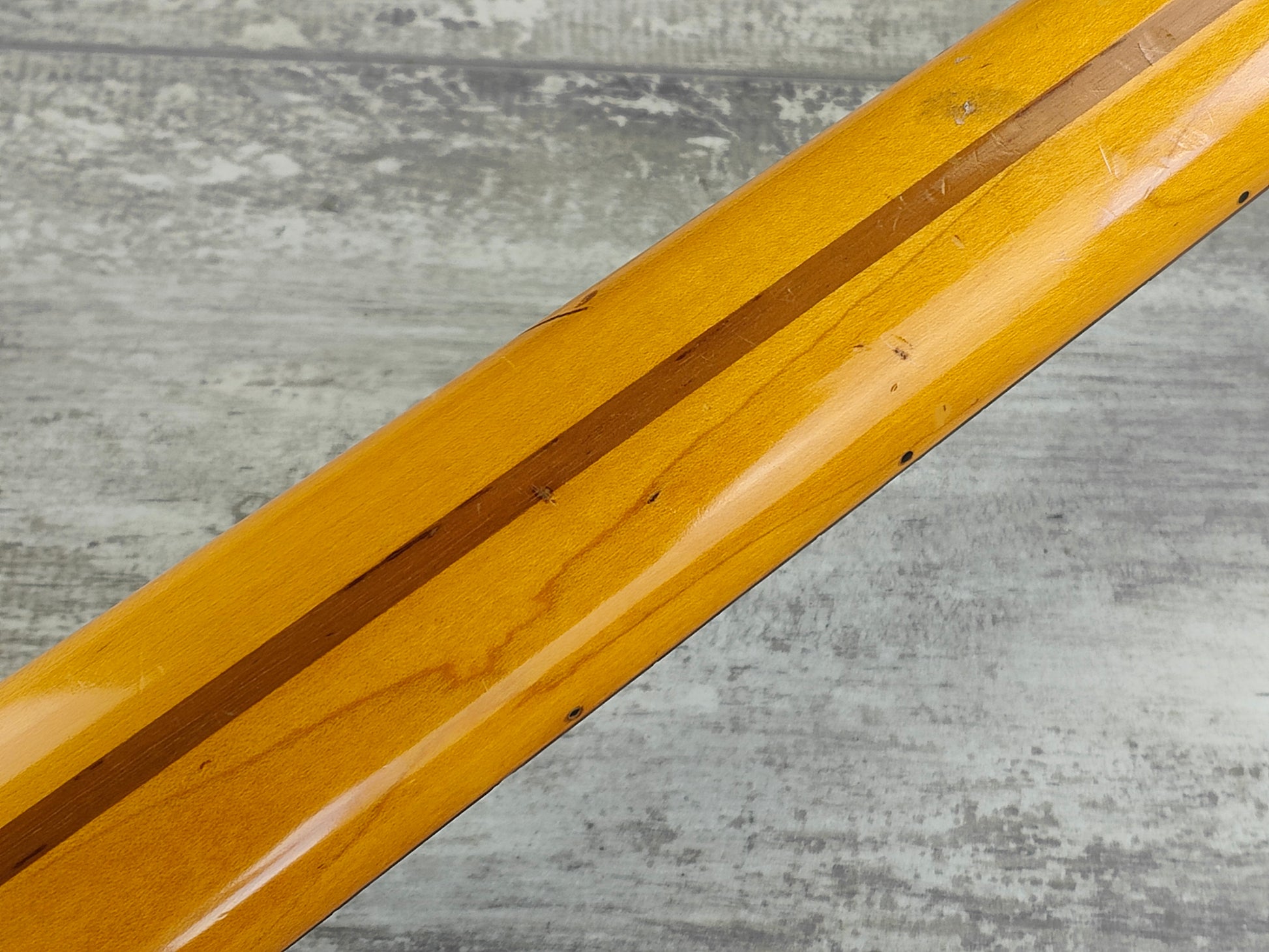 Part of the famous "E Series" of guitars made by the Fujigen factory in the mid to late 1980's, this is a rare "unofficial" Richie Blackmore model in Olympic White. This one dates to 1988 (based on the pot codes) and is built with a basswood body bolted to a maple neck and a factory "Blackmore" style scalloped rosewood fingerboard. 7.25" radius with a nice slim C profile neck, weighs 3.7kg's.