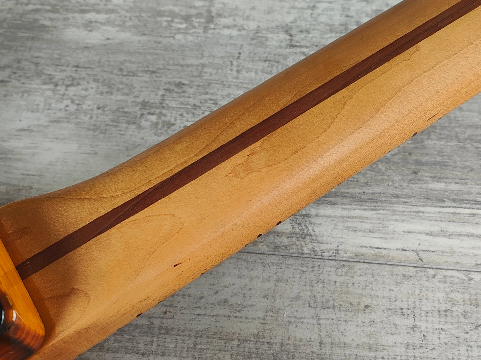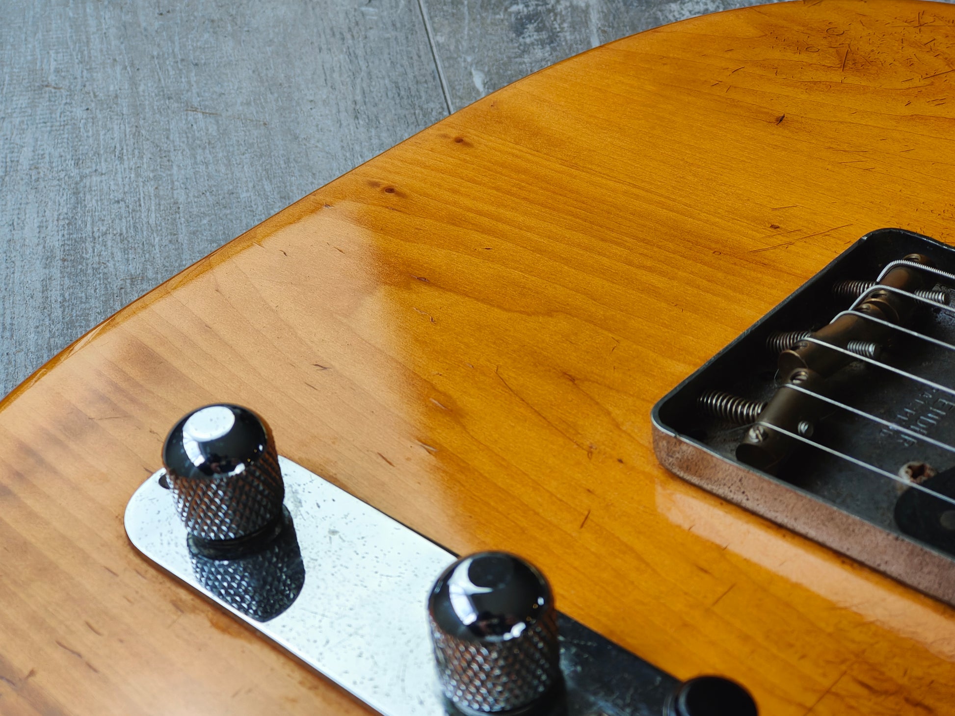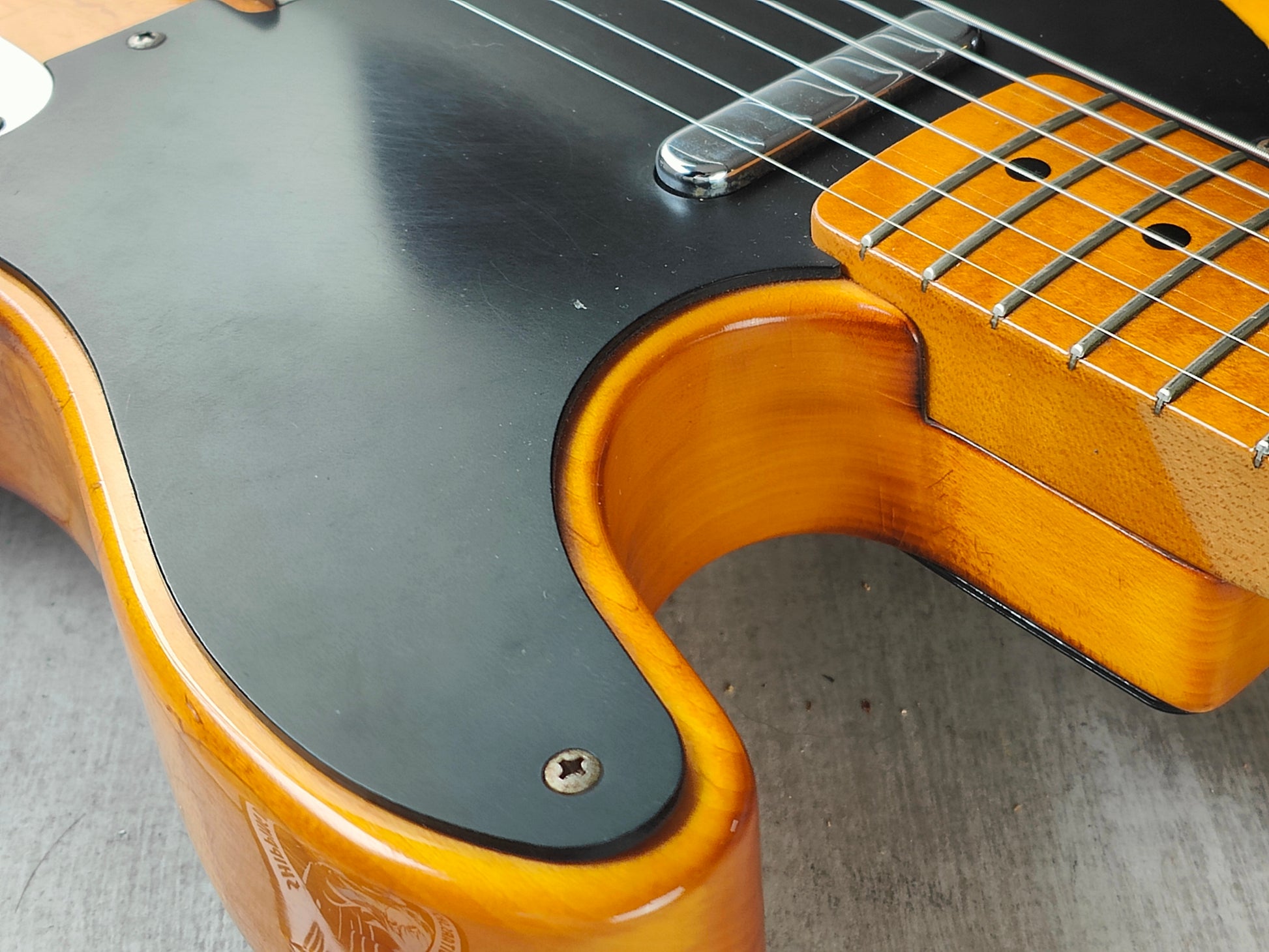 Made by the Fujigen factory in 1988, this Fender TL52-65 was a special model in the Fender Japan catalog that features their short-lived "Charcoal Burst" finish. With a lightly charcoaled American Basswood body bolted to a maple neck with a slim U profile (7.25" radius, 42mm nut width), it weighs 3.3kg's. This one has some aftermarket CTS pots and a USA bridge pickup along with the original Fender Japan neck pickup, brass saddles and Gotoh made "Vintage Style" machine heads.