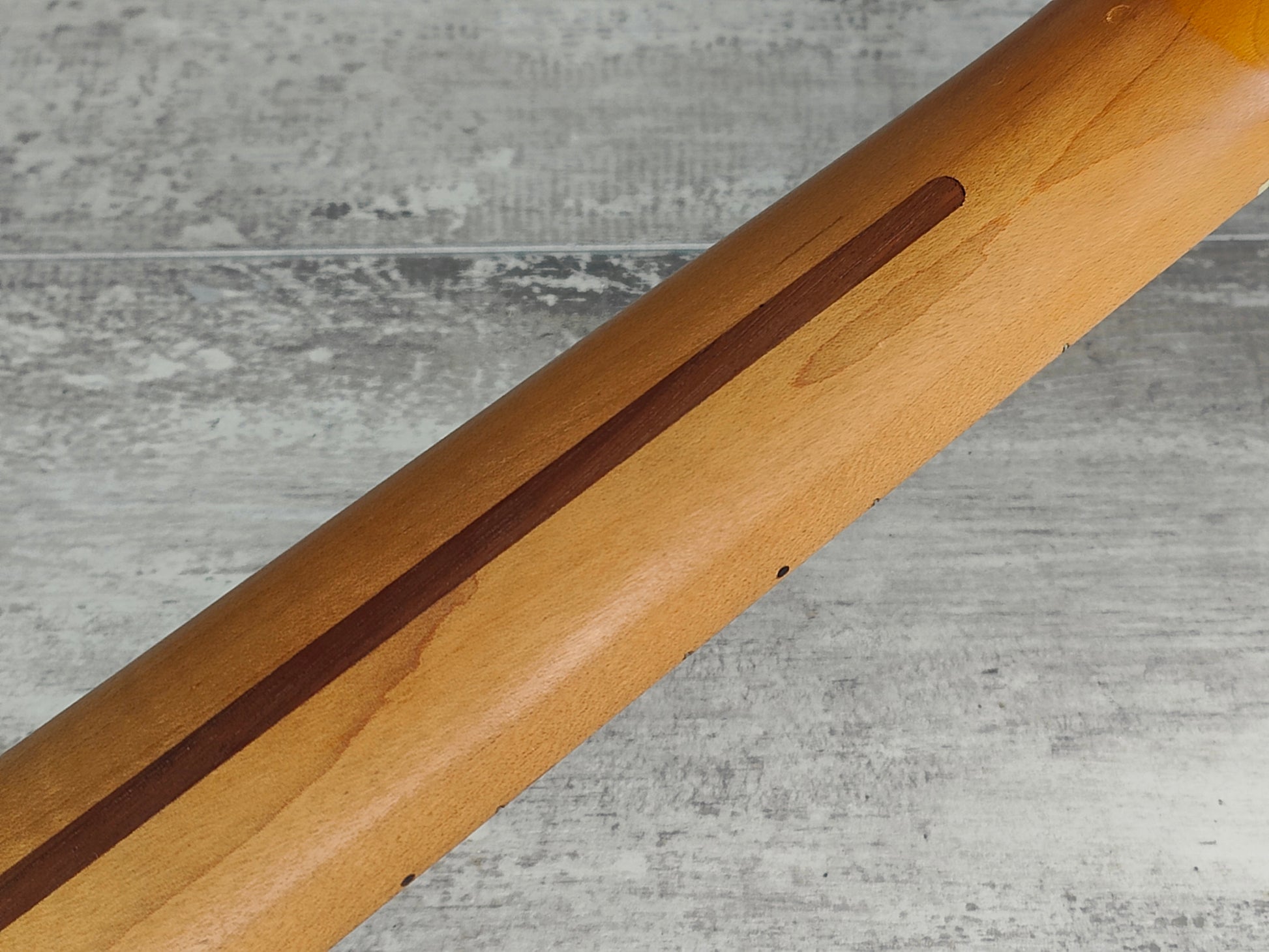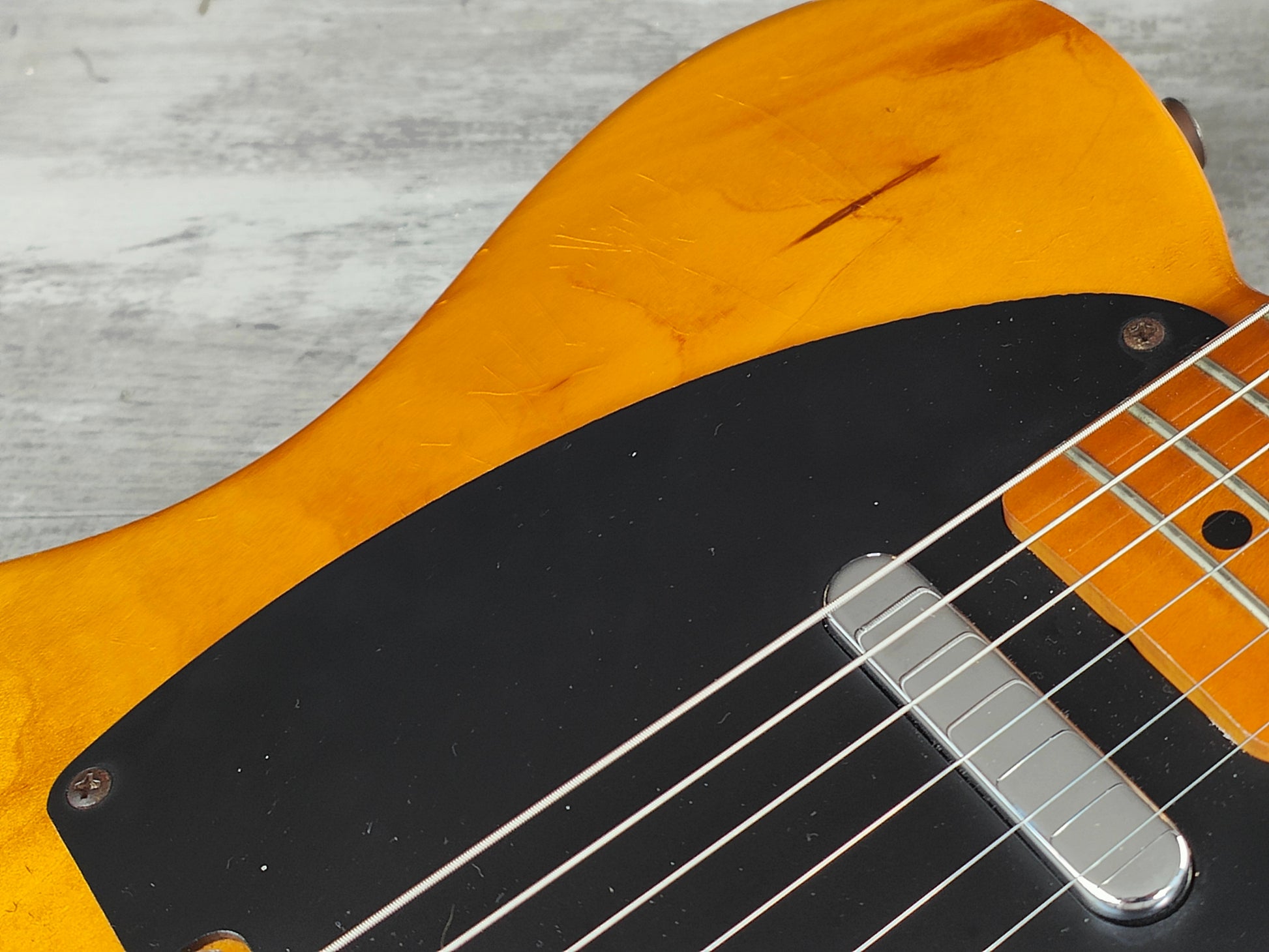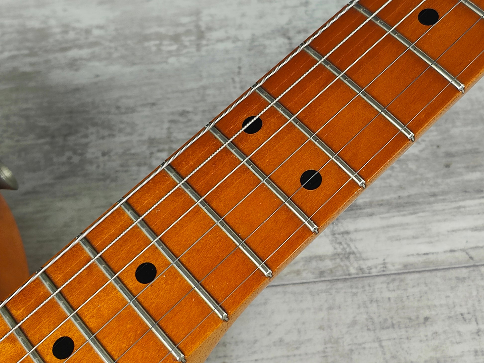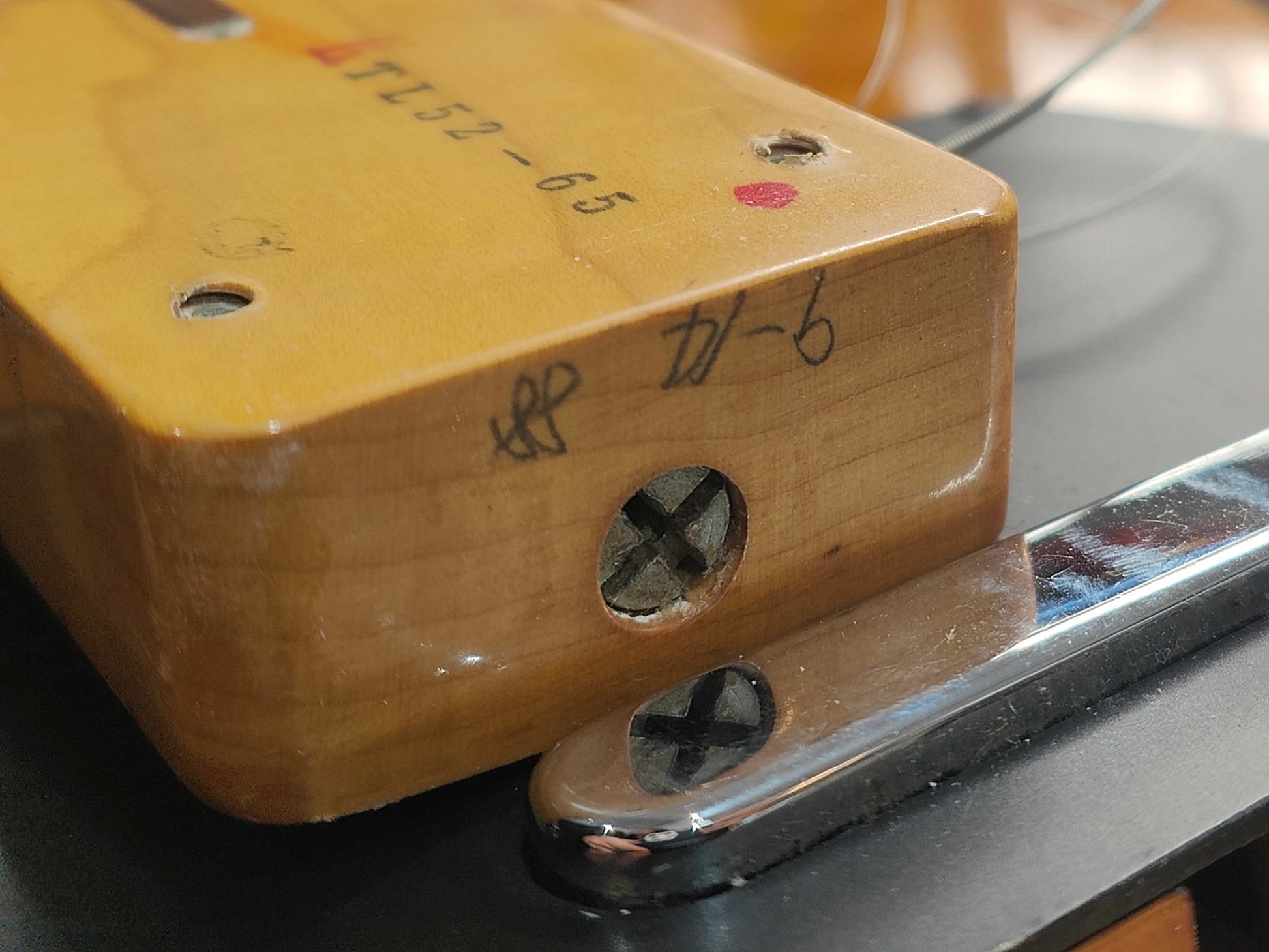 Made by the Fujigen factory in 1988, this Fender TL52-65 was a special model in the Fender Japan catalog that features their short-lived "Charcoal Burst" finish. With a lightly charcoaled American Basswood body bolted to a maple neck with a slim U profile (7.25" radius, 42mm nut width), it weighs 3.3kg's. This one has some aftermarket CTS pots and a USA bridge pickup along with the original Fender Japan neck pickup, brass saddles and Gotoh made "Vintage Style" machine heads.