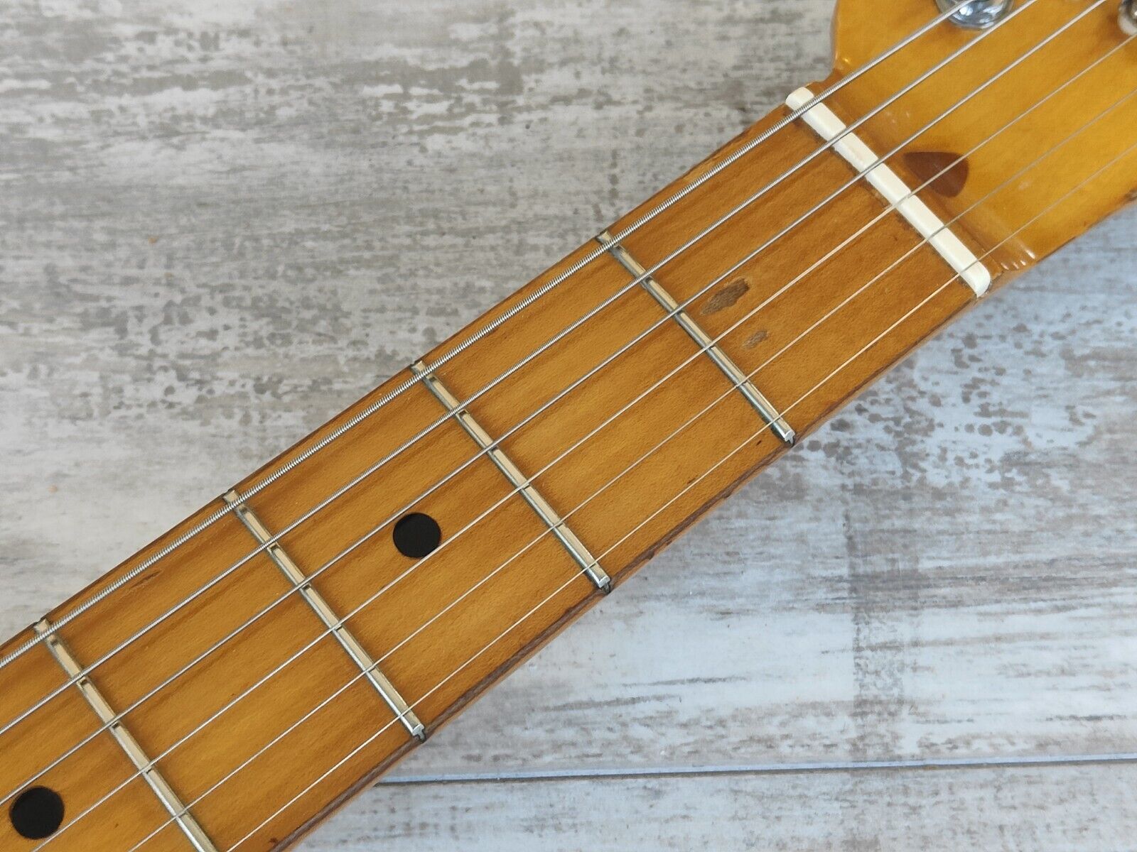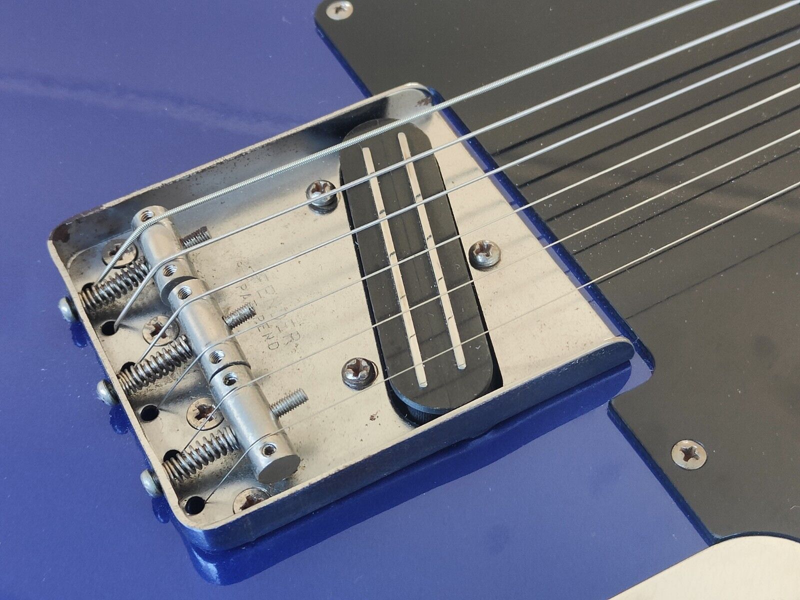 Made in Japan in 1988 (with a highly desirable E serial), this was originally designed by Fender to replicate Keith Richards famous Sonny telecaster. This one came to us with a very poor finish, so we had it grain-filled and re-sprayed in a beautiful Royal Blue. White ash body with a U profile maple neck with vintage gauge frets, 7.25" radius, weighs 3.8kg's. This one has been modified a fair bit including an upgraded Fender ashtray bridge and a pair of tele-sized rail mini humbuckers that sound super hot (although the body is still routed for a neck humbucker if you wanted to go back to the stock configuration). It's also got a brand new bone nut installed and a new output jack/socket, still has the original Fender Japan stamped tuners.