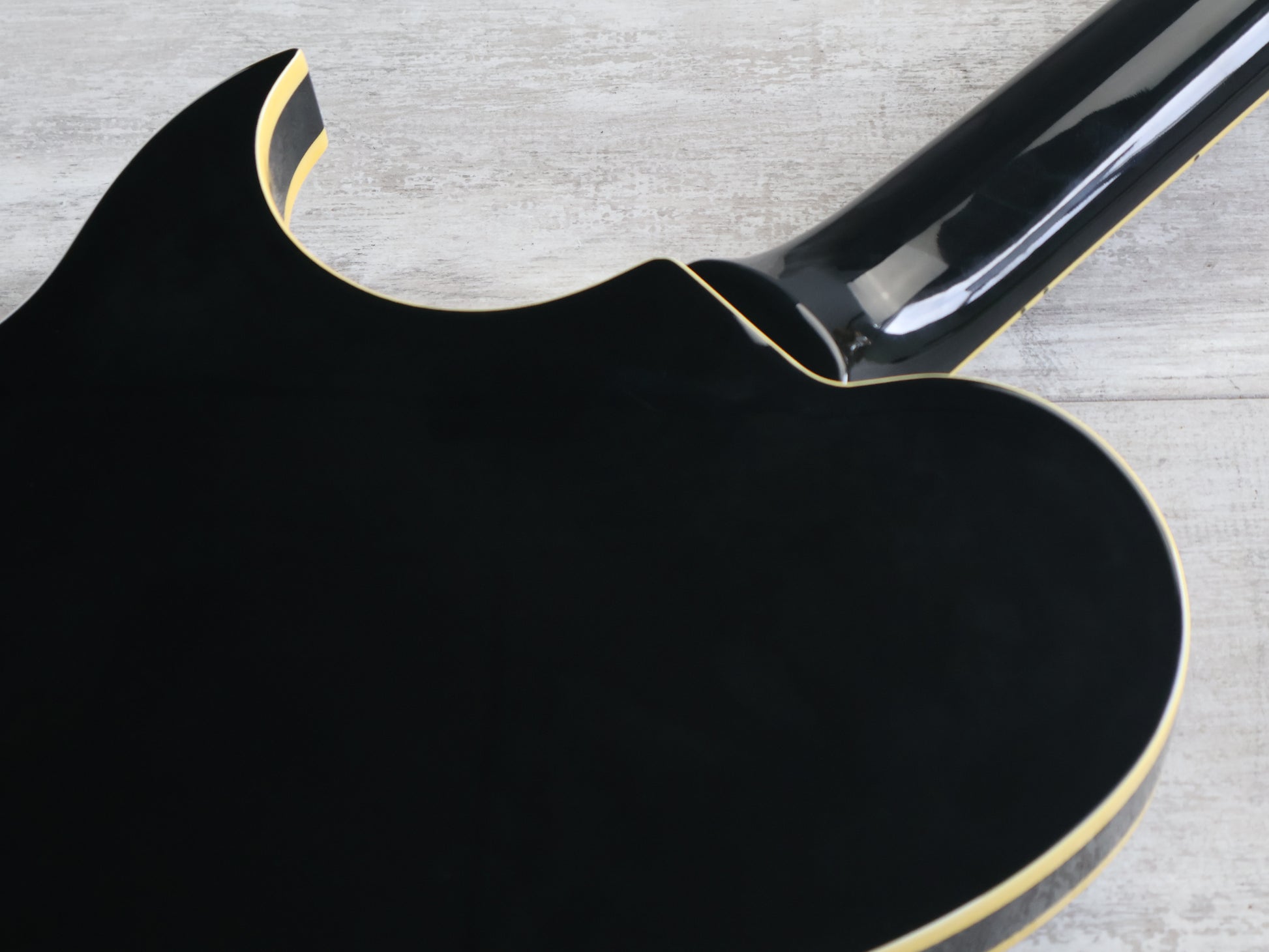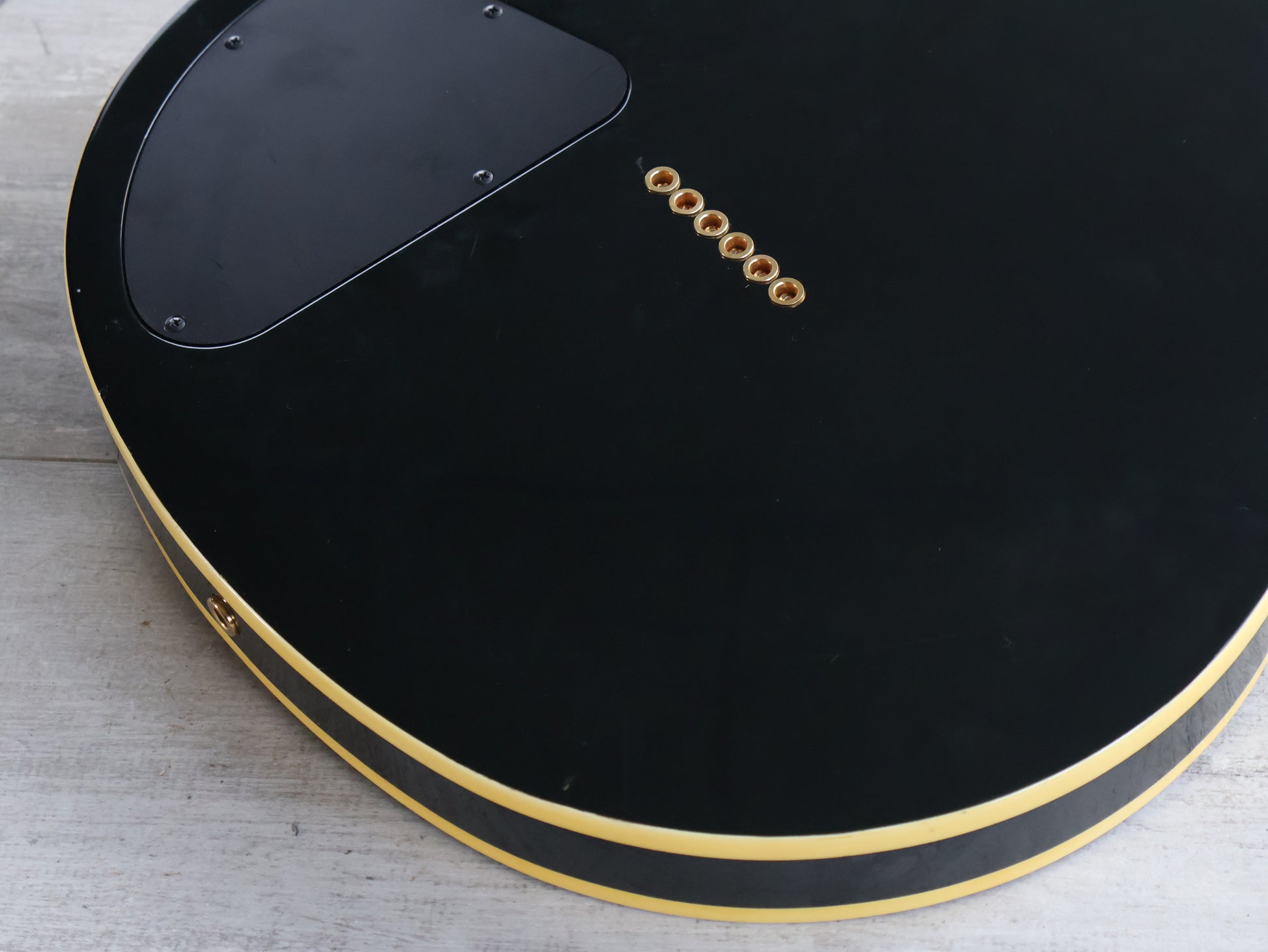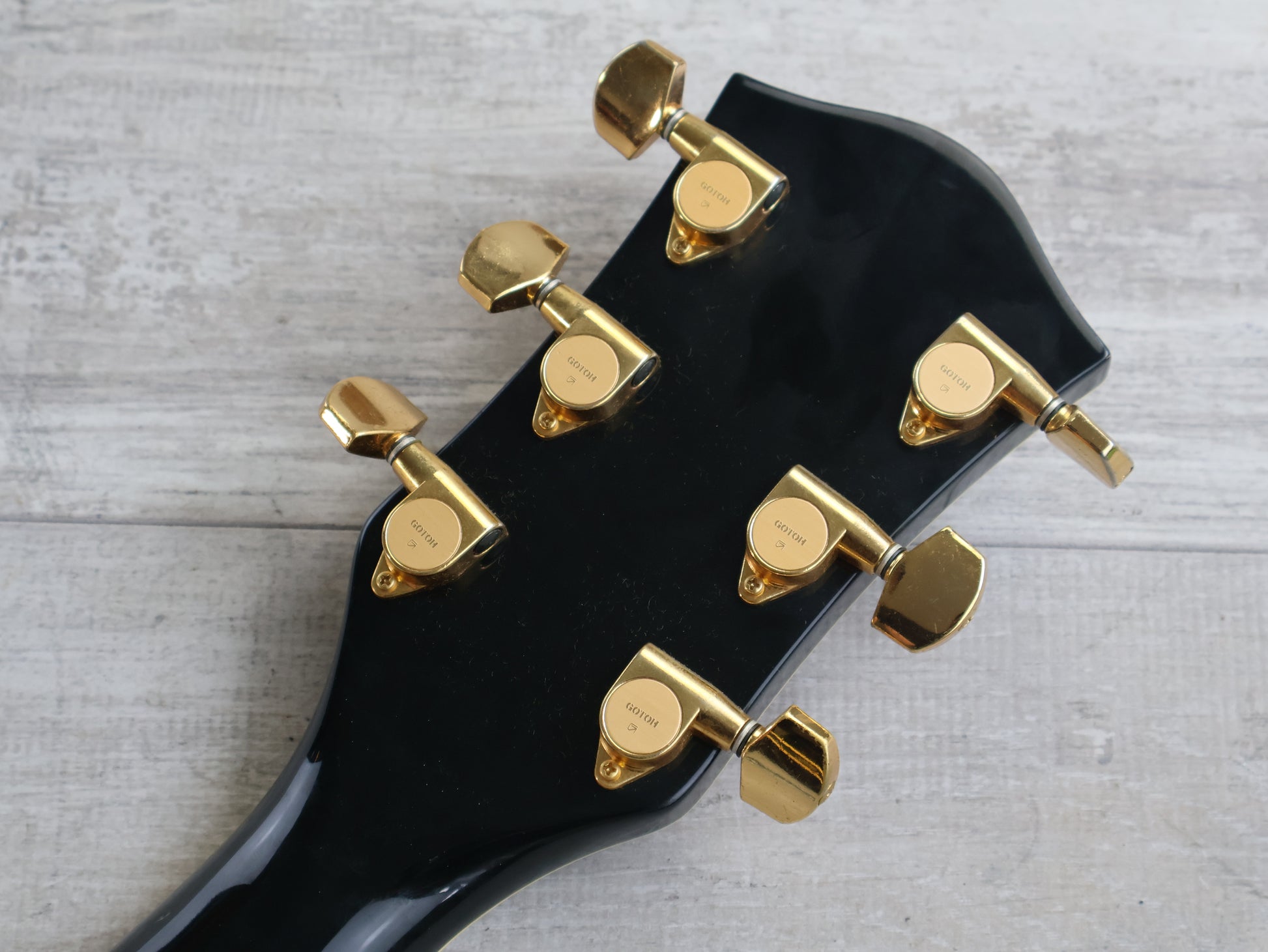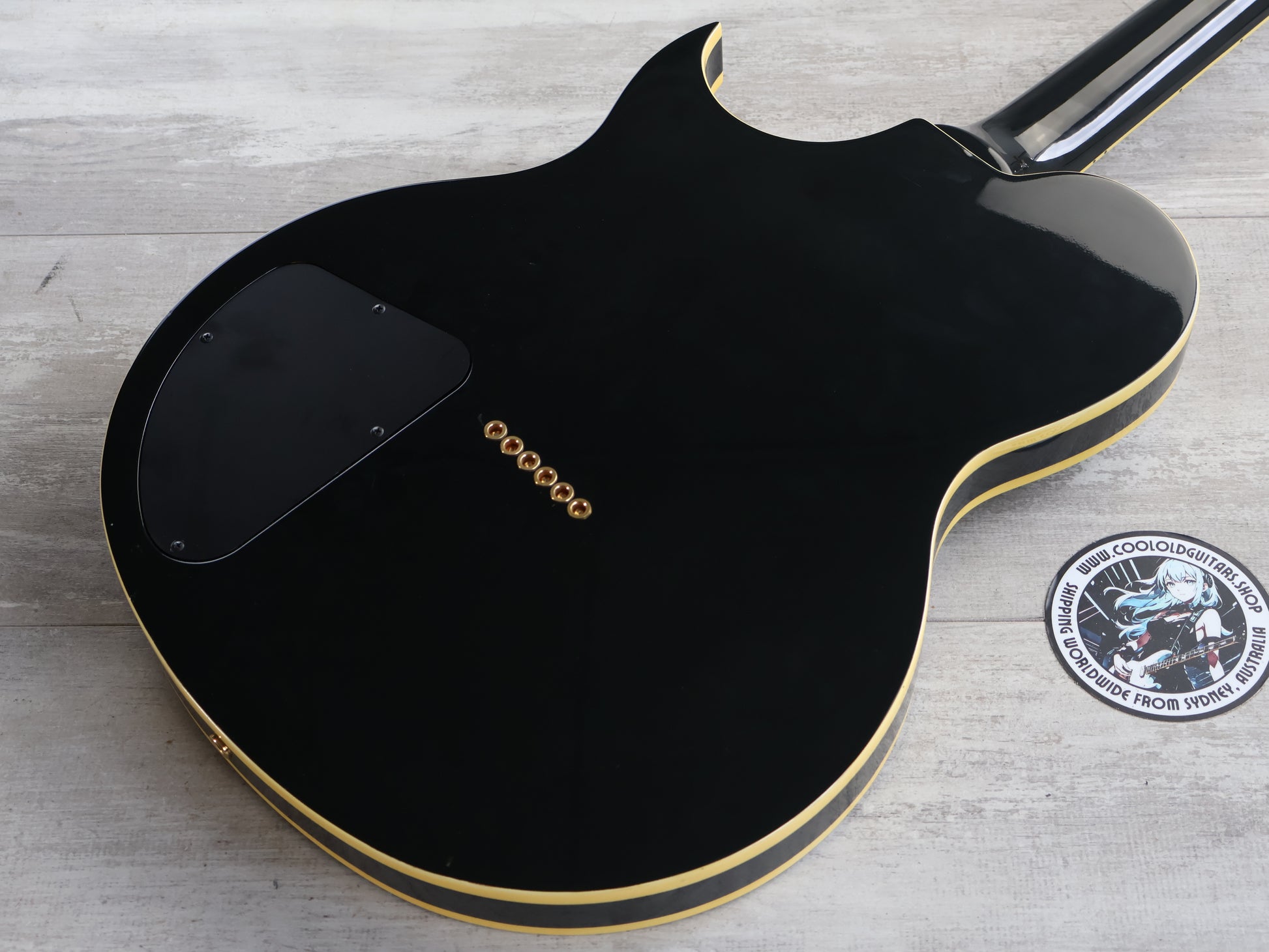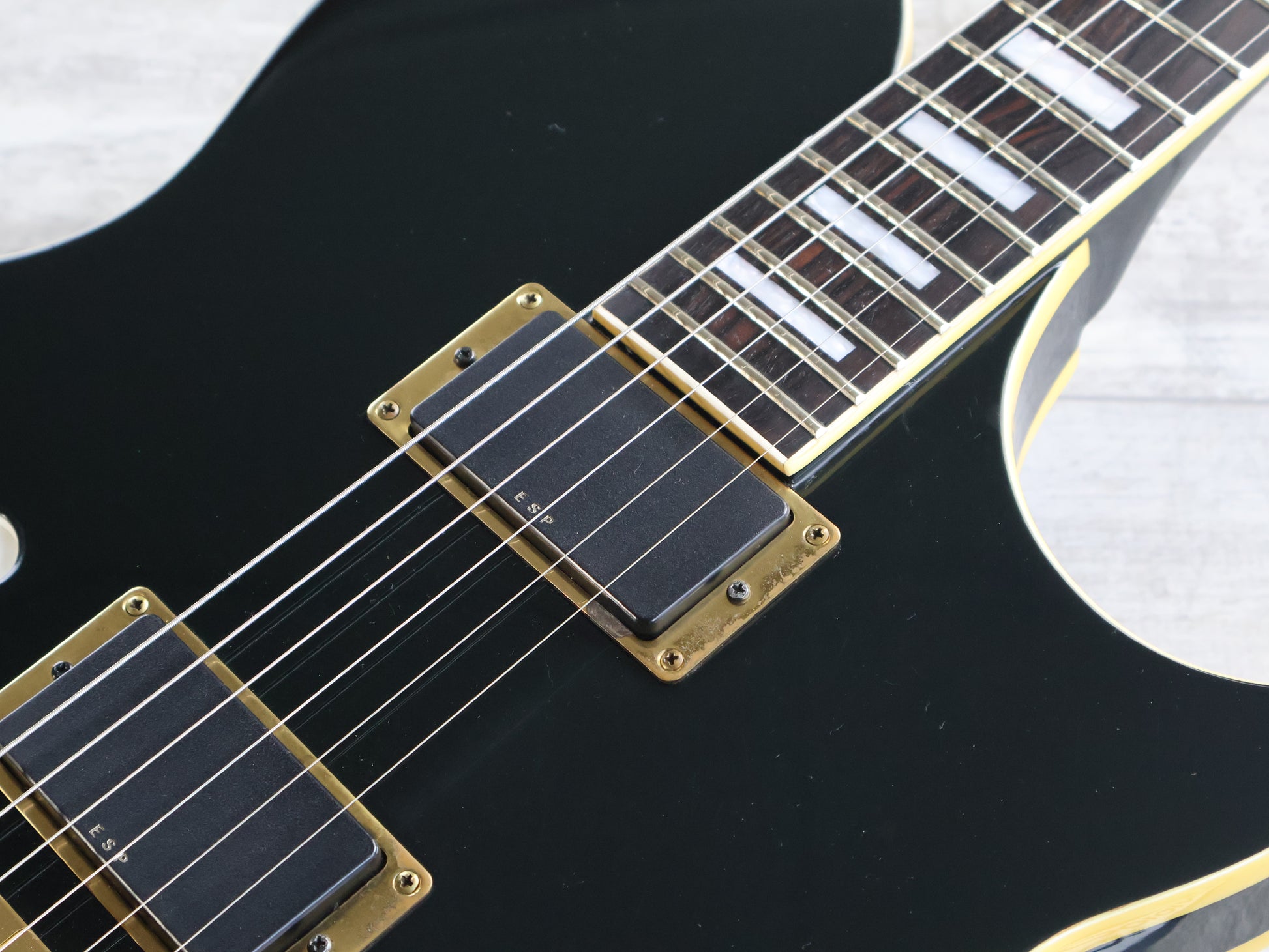 Made in Japan in 1988, this stunning guitar is one of the artist models of BOØWY guitarist Tomoyasu Hotei (one of the most notable Japanese guitarists of all time). Chambered alder body (with covered F holes), maple neck and an ebony fingerboard, it weighs 4.2kg's. 22 frets with a 628mm scale length, string-through bridge and some aftermarket passive ESP branded humbuckers mean it's built for modern sounds.