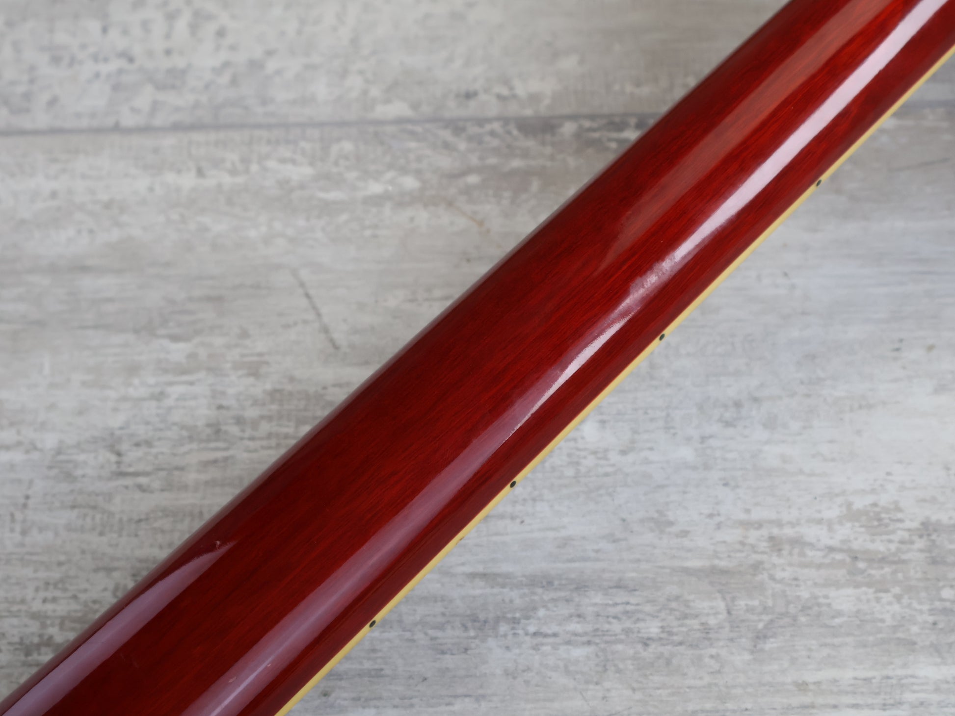 The neck is straight and the truss adjusts as it should, the action is smooth and low across the fretboard. The frets have plenty of life left and overall it plays great as it sits.