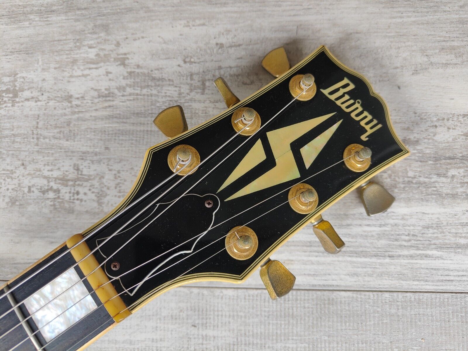 Made in Japan in 1989, the Burny RLC series are some of the most sought after Les Paul Custom models in the world of Japanese guitars. Mahogany construction with a rosewood fingerboard, it weighs a hefty 4.5kg's and plays with a nice slim 60's style neck profile (no volute). Looks to be all original including the factory humbuckers and full sized pots, only missing the original gold pickup covers.