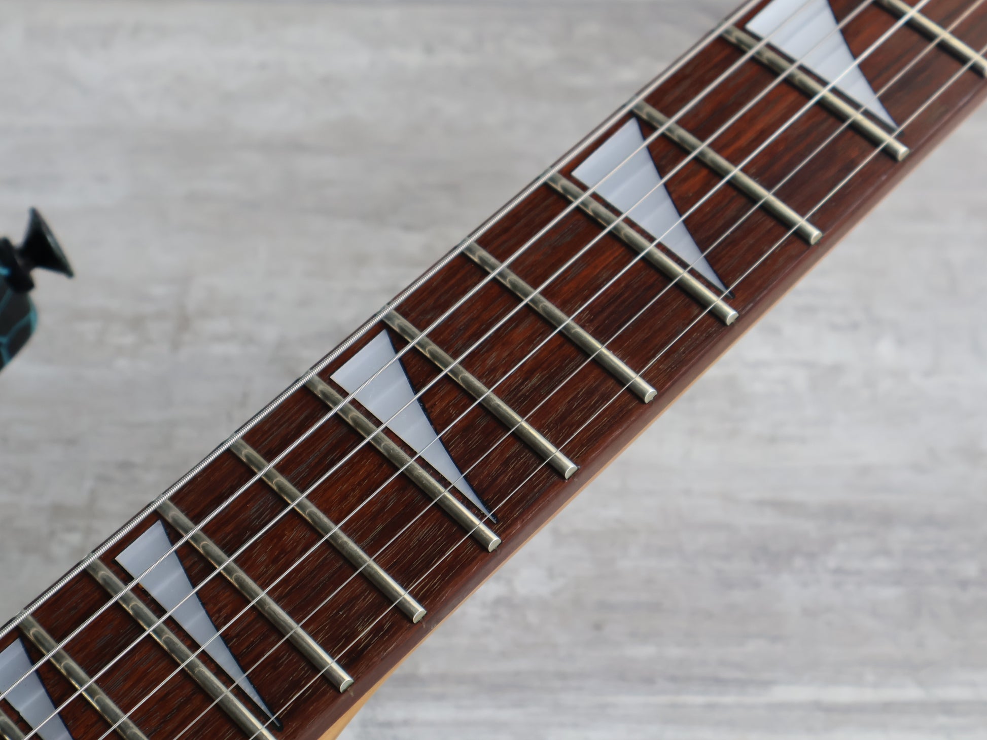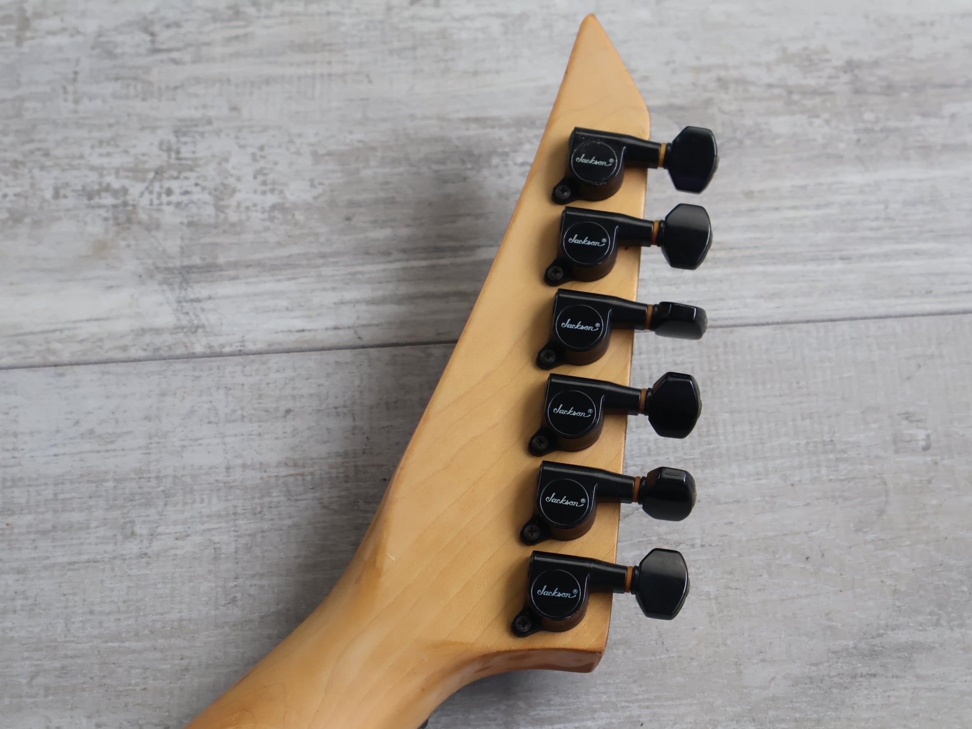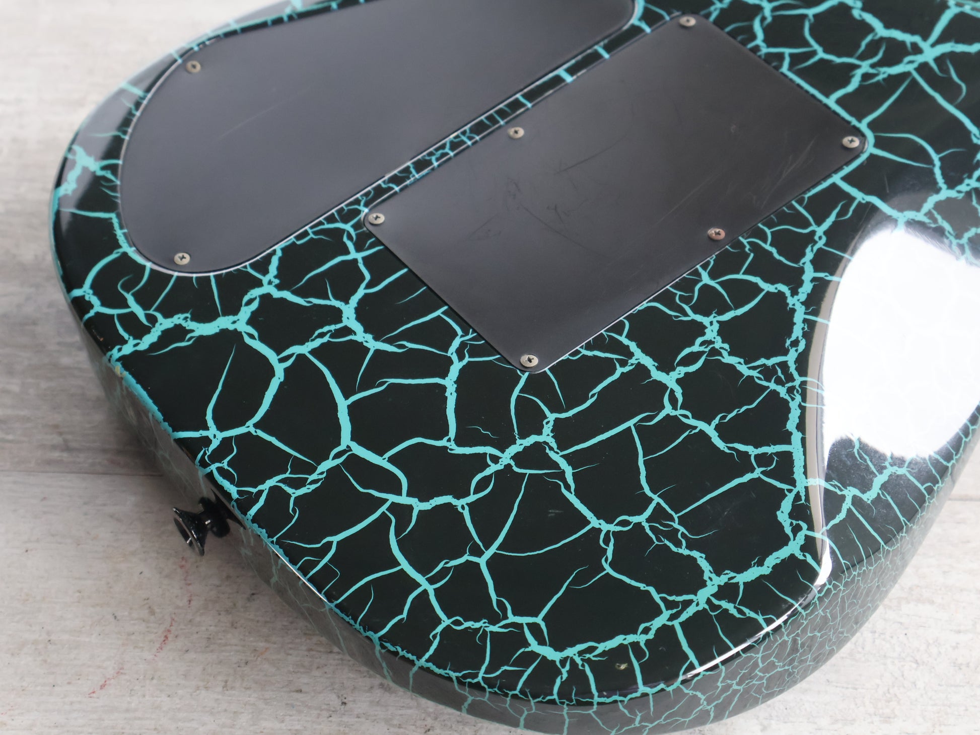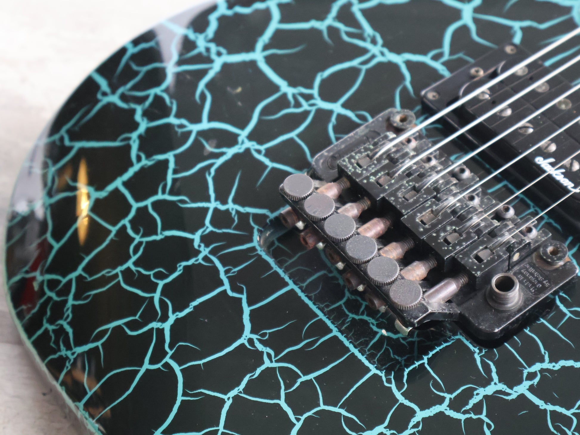 Made in Japan in 1989, the DK-090 features a poplar body with a slim profile rock maple neck, rosewood fingerboard (648mm scale length, 22 frets) and weighs 3.3kg's. Wearing a Japanese exclusive "Blue Crackle" finish, it's loaded with the original Jackson HSS pickups and a Charvel branded licensed Floyd Rose locking tremolo system.
