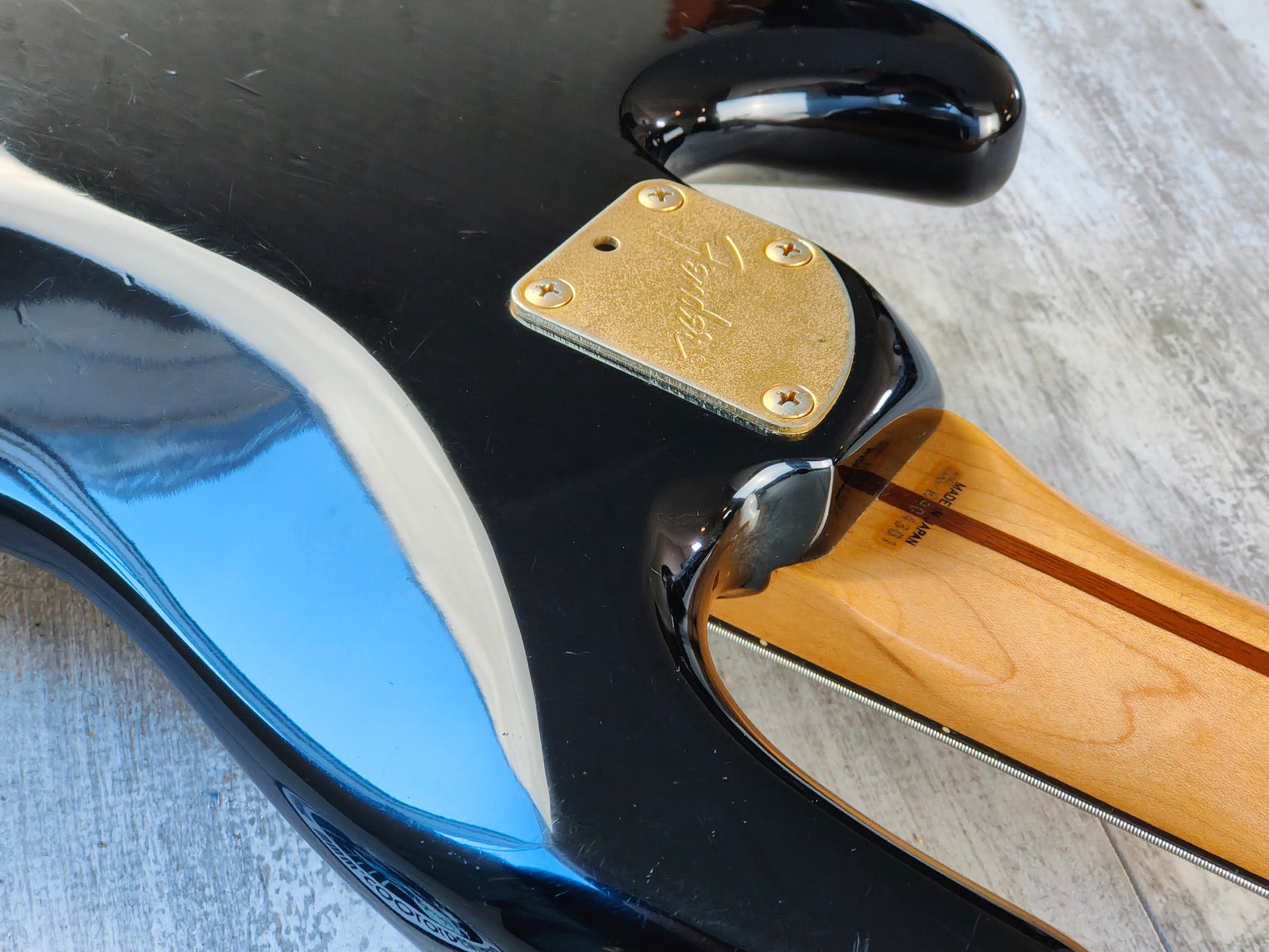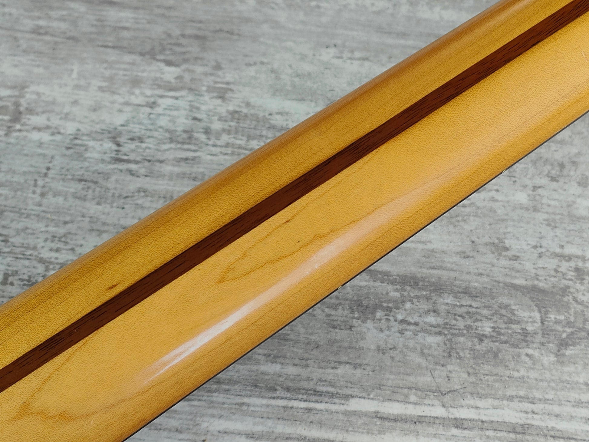 Made in Japan by the Fujigen factory in 1989, the PJM65 is part of the "Contemporary Series" of modern instruments to suit the needs of 80's musicians. Indonesian Camp body with a maple neck and 22 fret rosewood fingerboard (32" scale length), weighs 3.1kg's. Loaded with Fender Japan PJ pickups (a Dragster and a Hotrod) with a master volume knob, pickup balance selector knob and active treble/bass knobs.