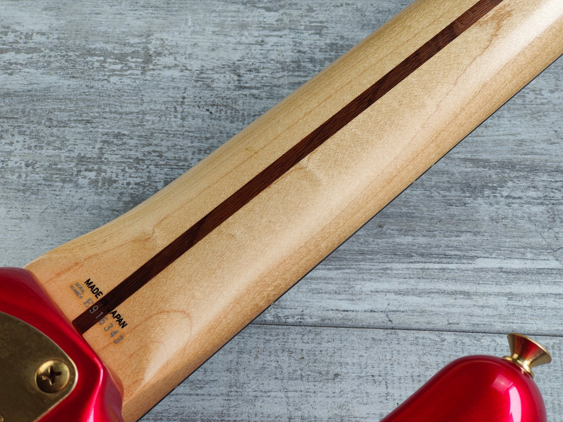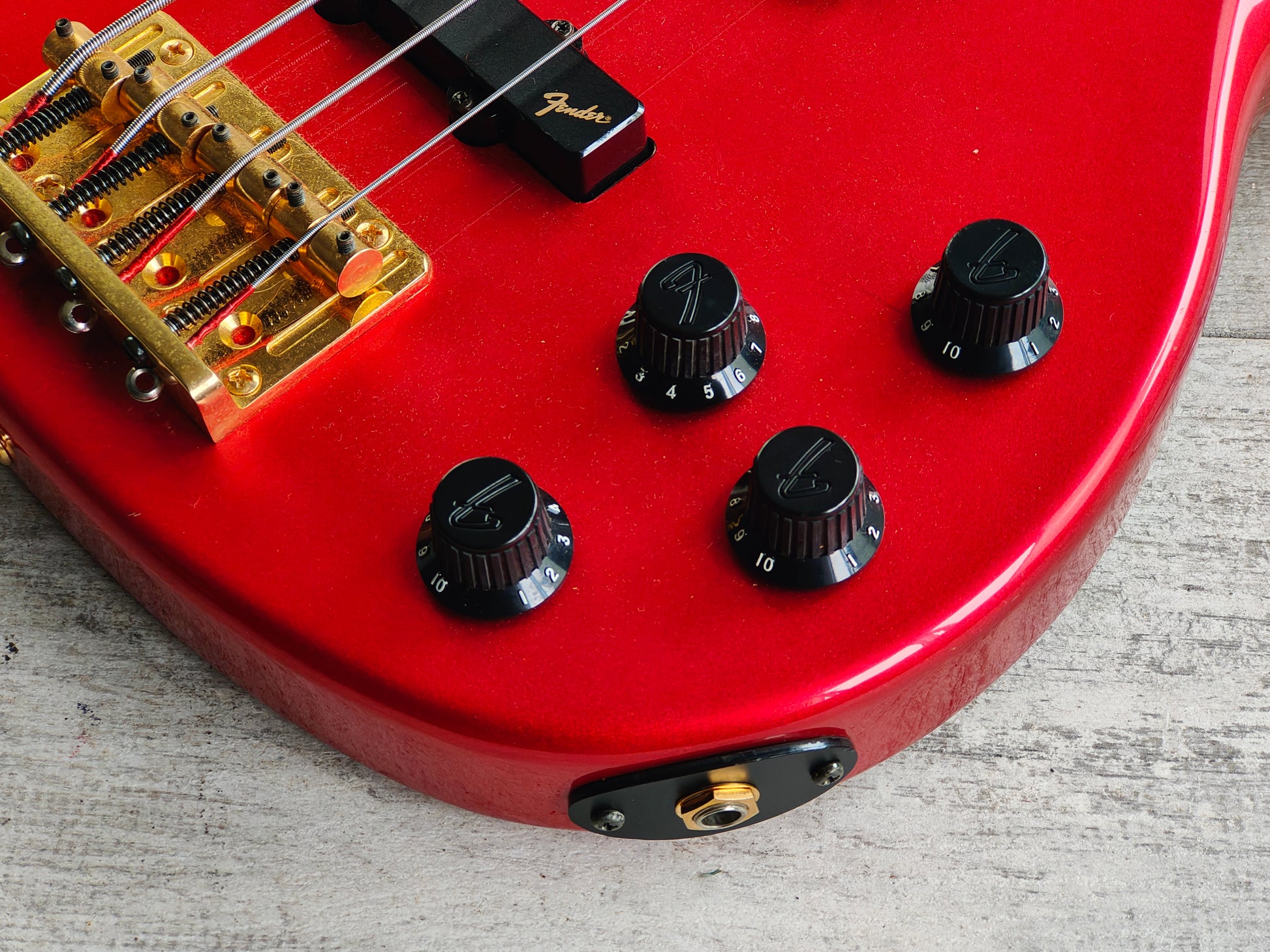 Made in Japan by the Fujigen factory in 1989, the PJR65 is part of the "Contemporary Series" of modern instruments to suit the needs of 80's musicians. This one is finished in a very rare "Chrome Red" finish with a matching headstock that has a real sparkle in the right light. Indonesian Camp body with a maple neck and 22 fret rosewood fingerboard (34" scale length), weighs 3.3kg's. Loaded with Fender Japan PJ pickups (a Dragster and a Hotrod) with a master volume knob, pickup balance selector knob and active treble/bass knobs.